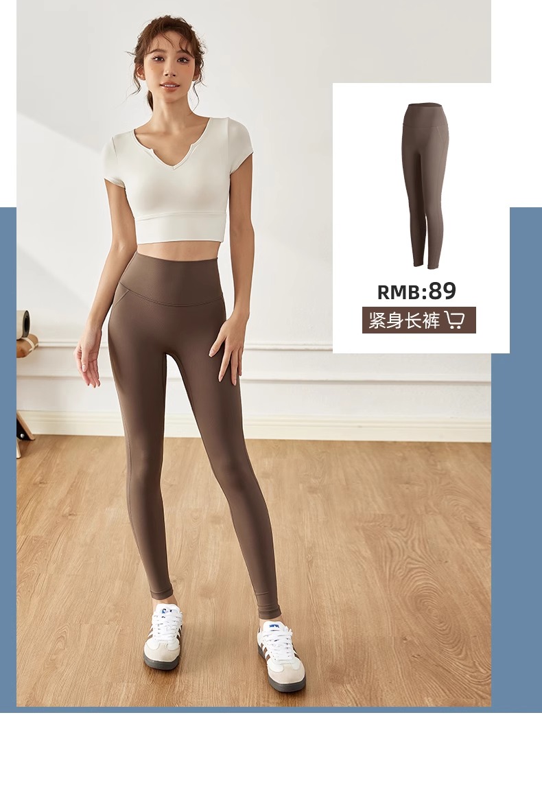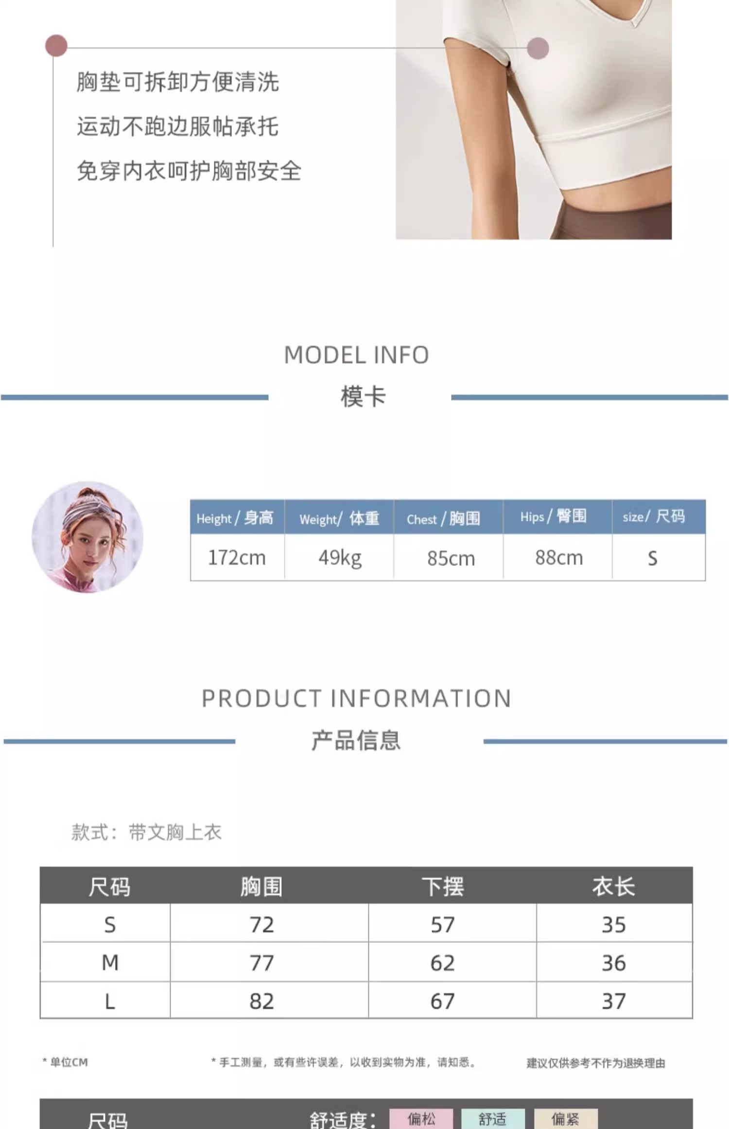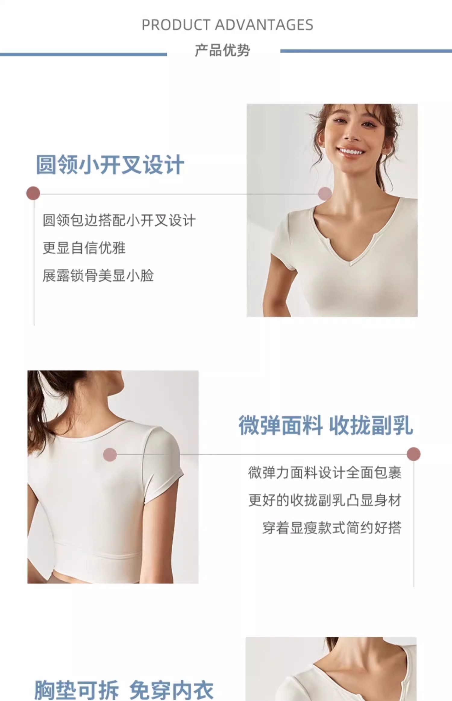 跃牌【轻匀系列】NS裸感瑜伽服短袖带胸垫性感V领健身背心运动T恤女TXB1440