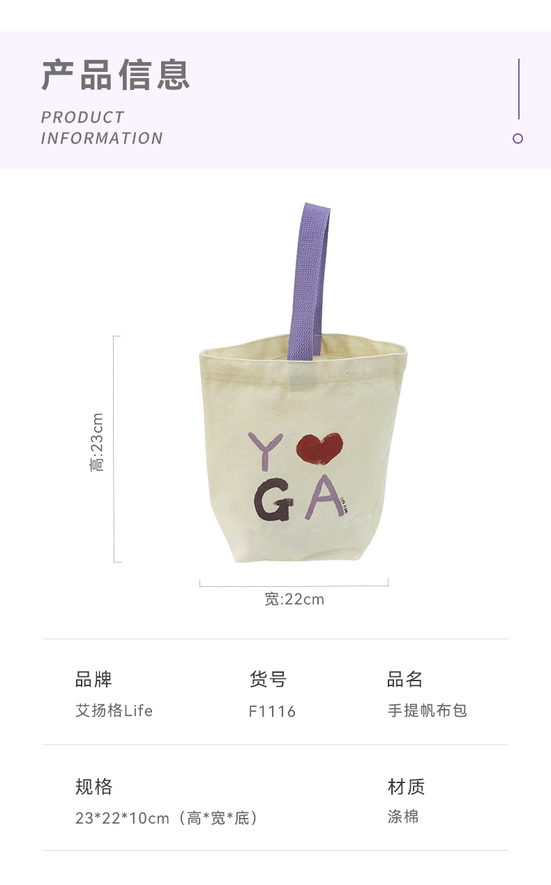 艾扬格 Life F1116 瑜伽手提帆布包 小收纳包 手绘YOGA 实用简约 生活随行
