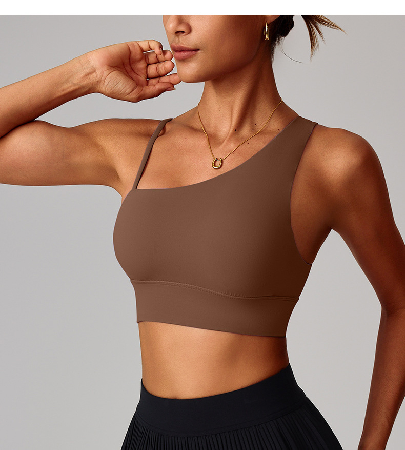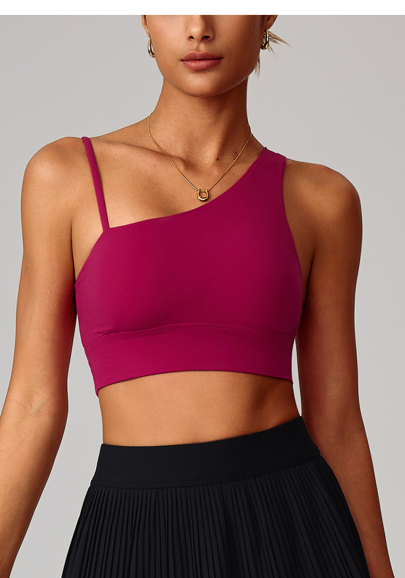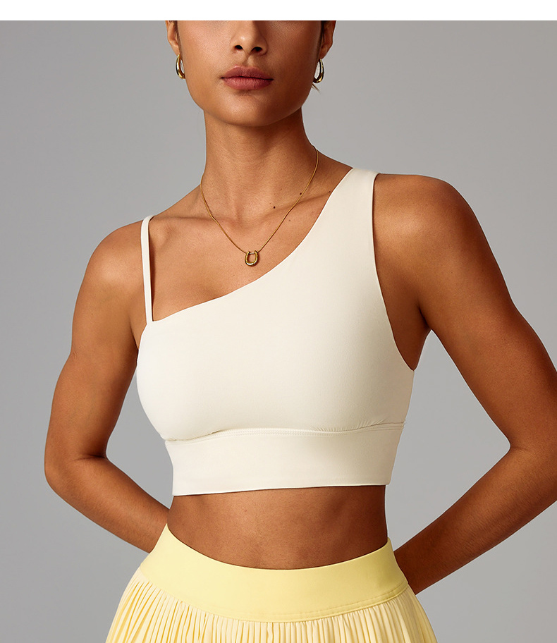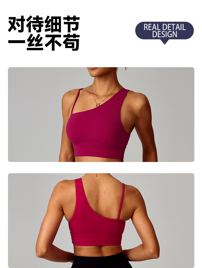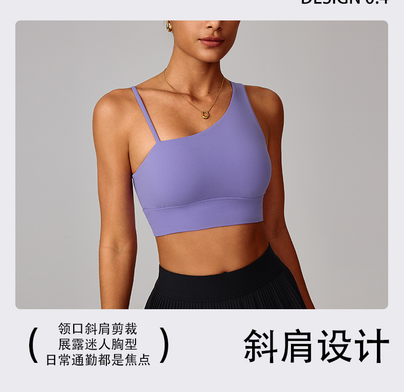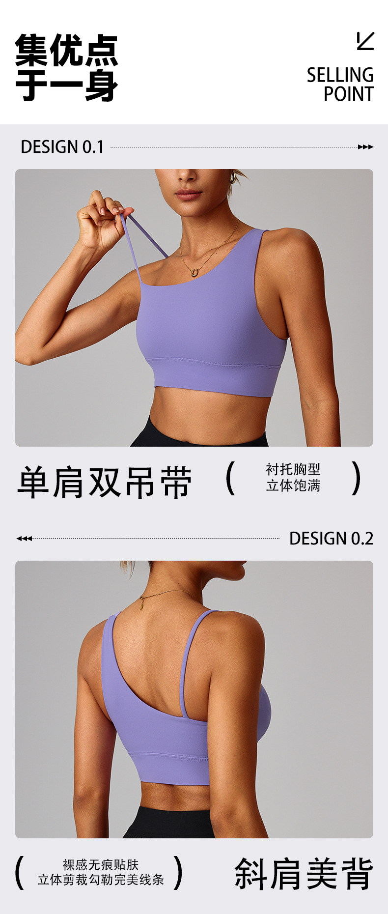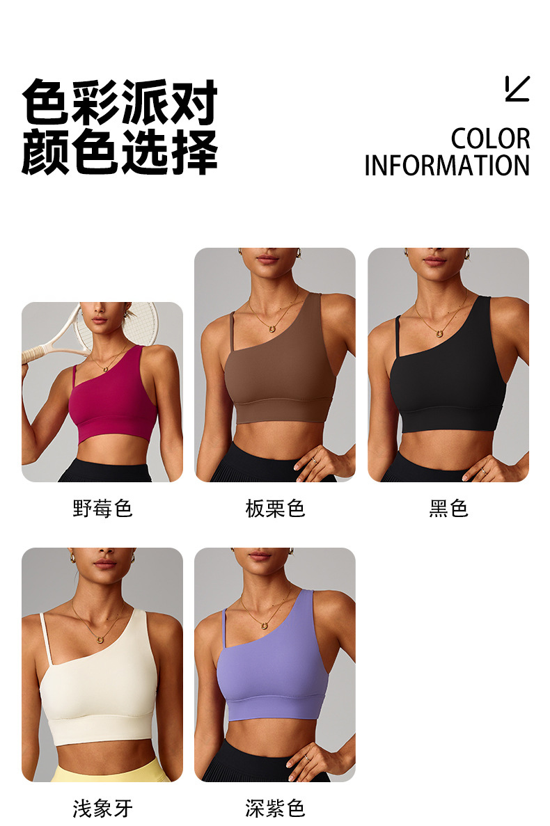 跃牌【轻匀系列】斜单肩不规则美背瑜伽文胸速干运动弹力内衣跑步健身背心WX60321