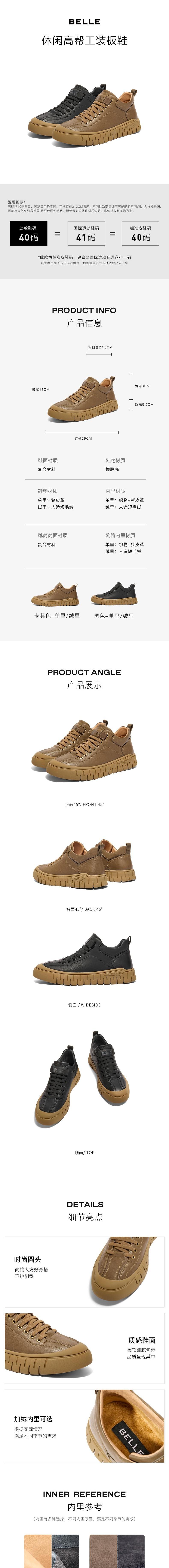Belle百丽 男高帮工装板鞋加绒 8NF01DD4
