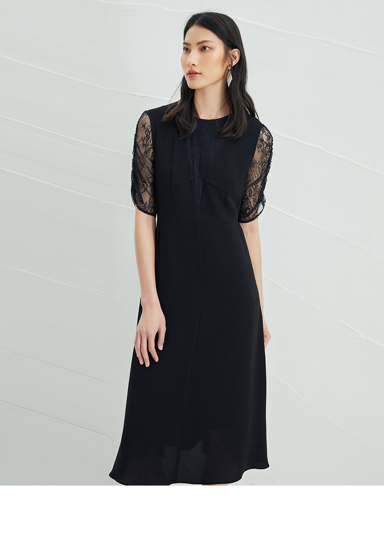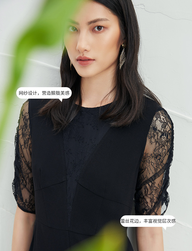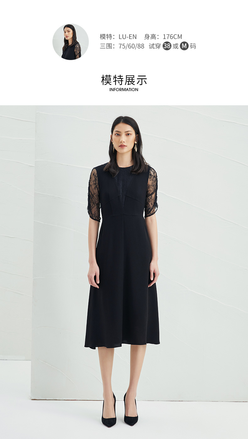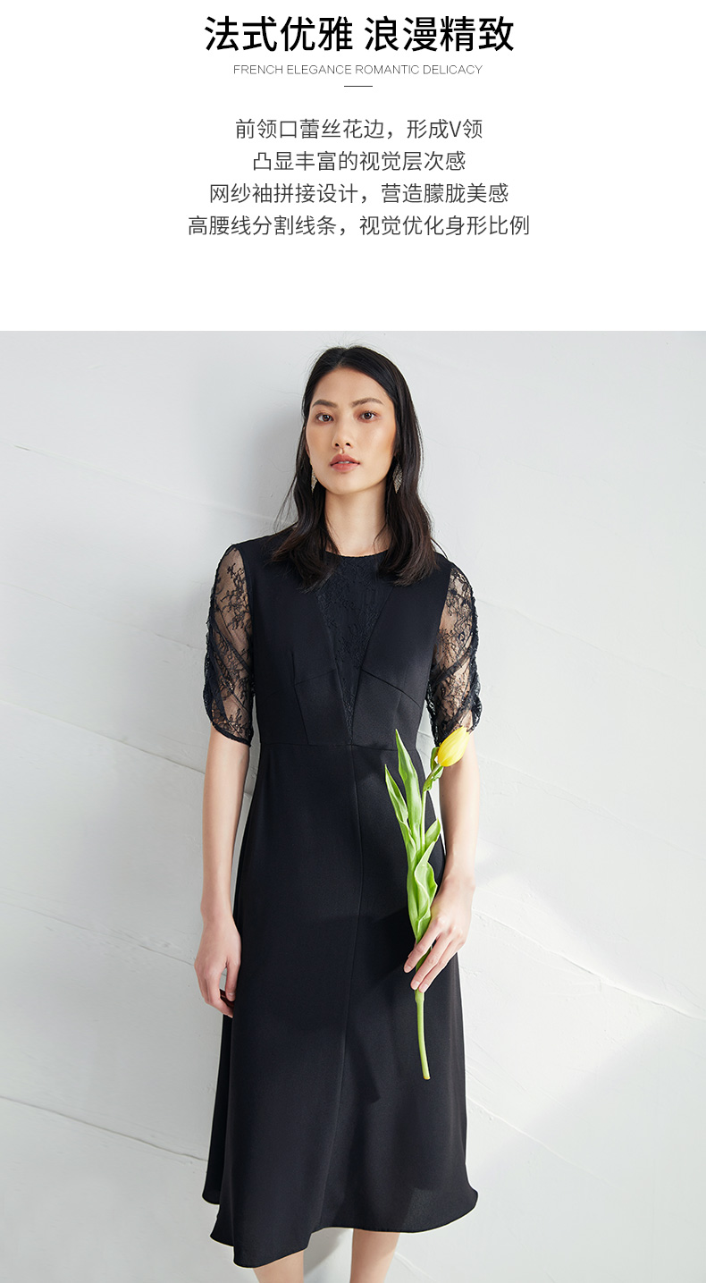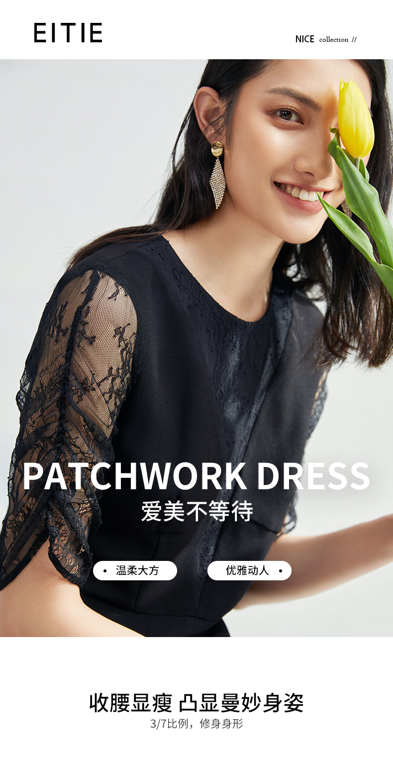 EITIE爱特爱女装夏季新款优雅蕾丝拼接连衣裙女6507240