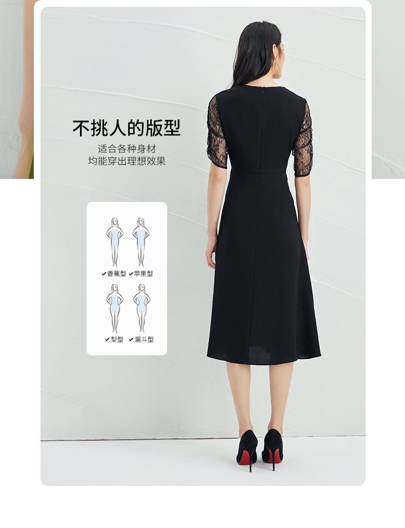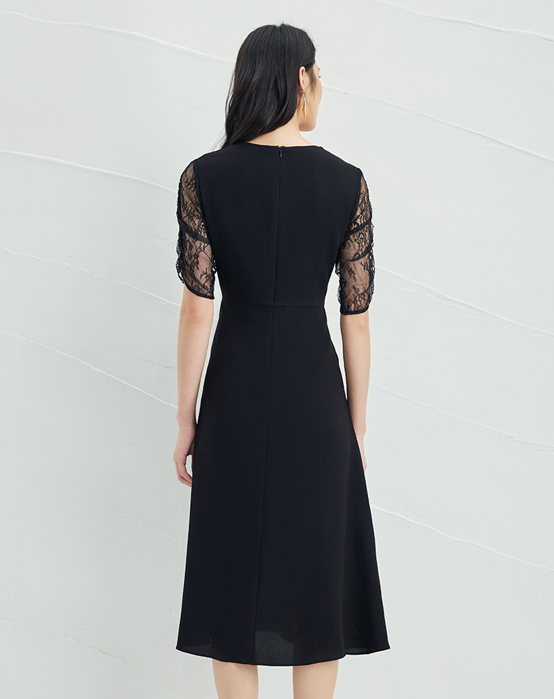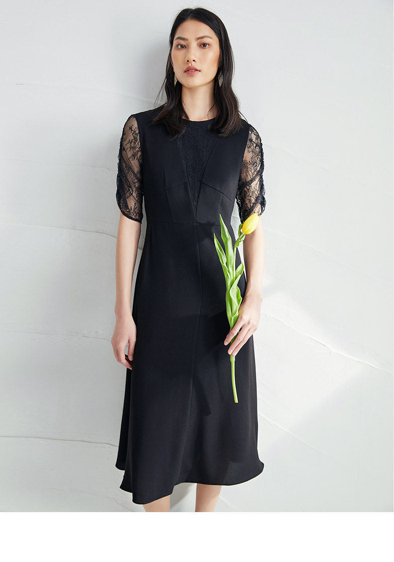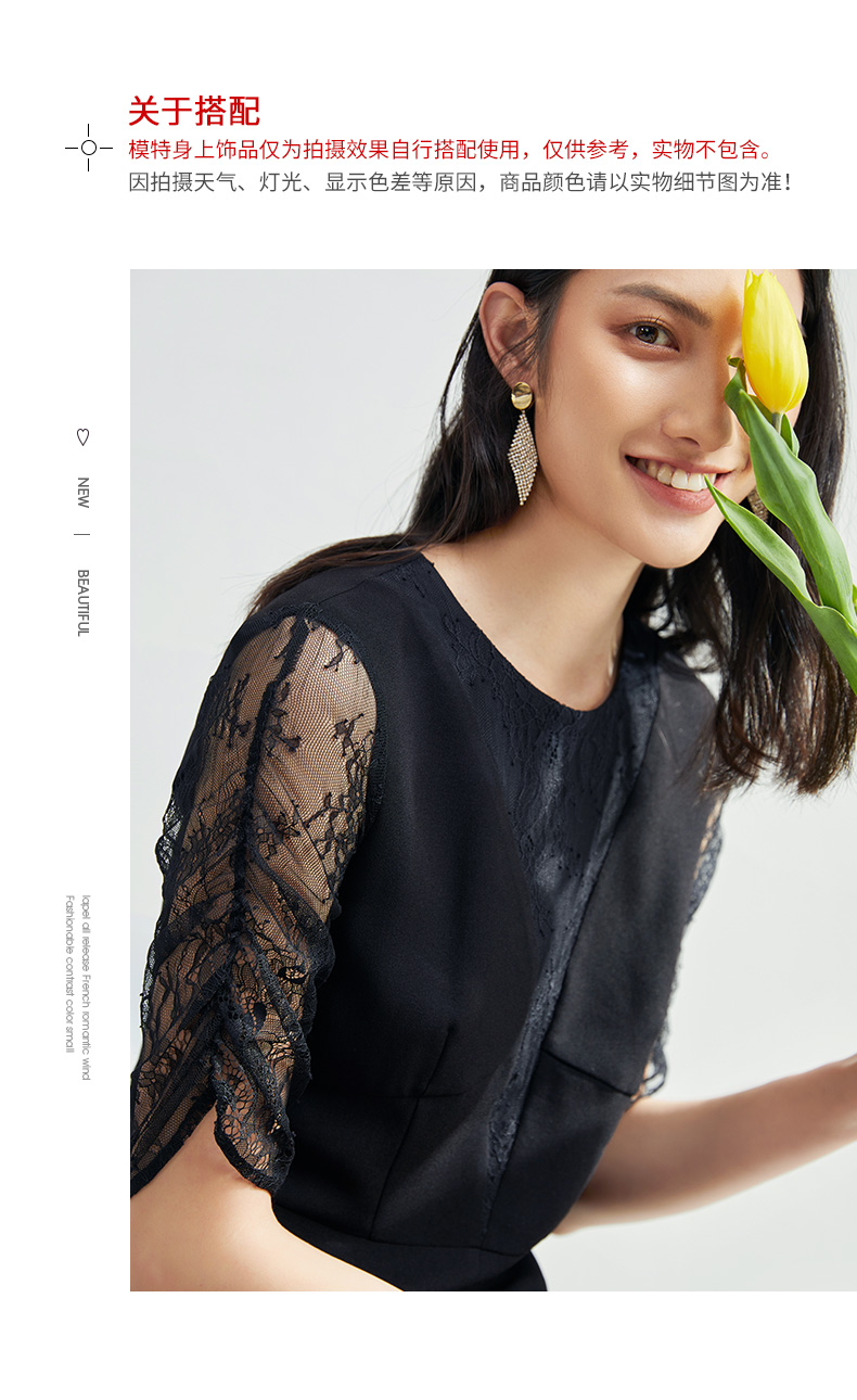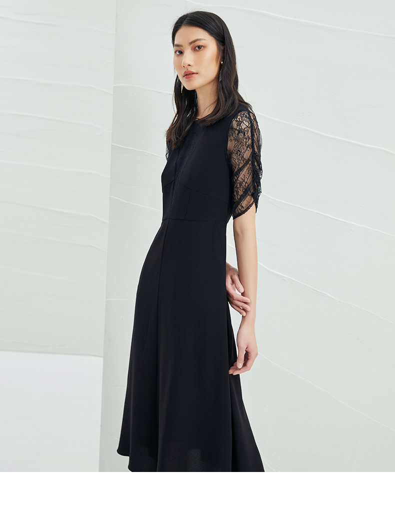 EITIE爱特爱女装夏季新款优雅蕾丝拼接连衣裙女6507240