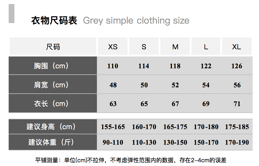 【尺码】XS、S、M、L、XL、XXL(具体详见尺码表)