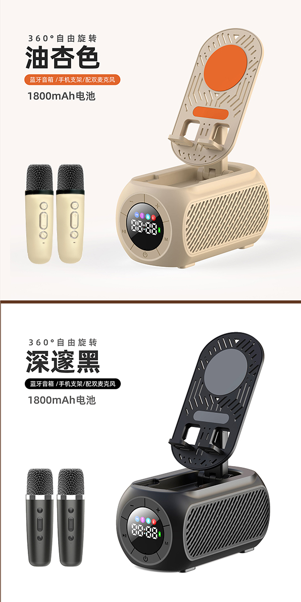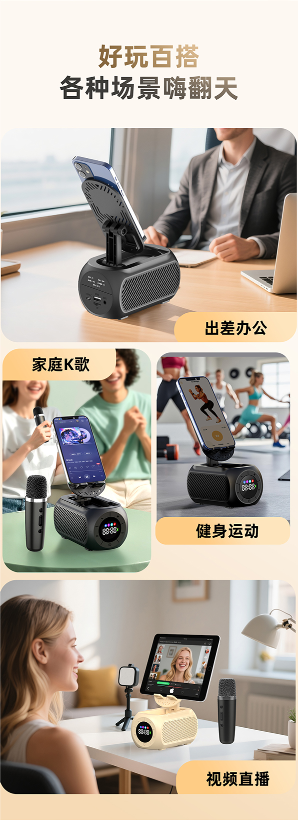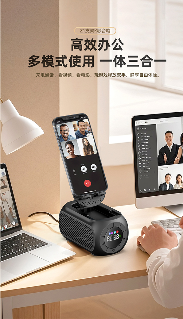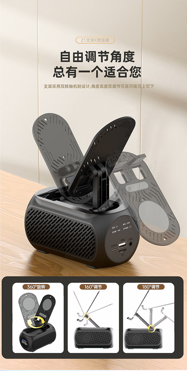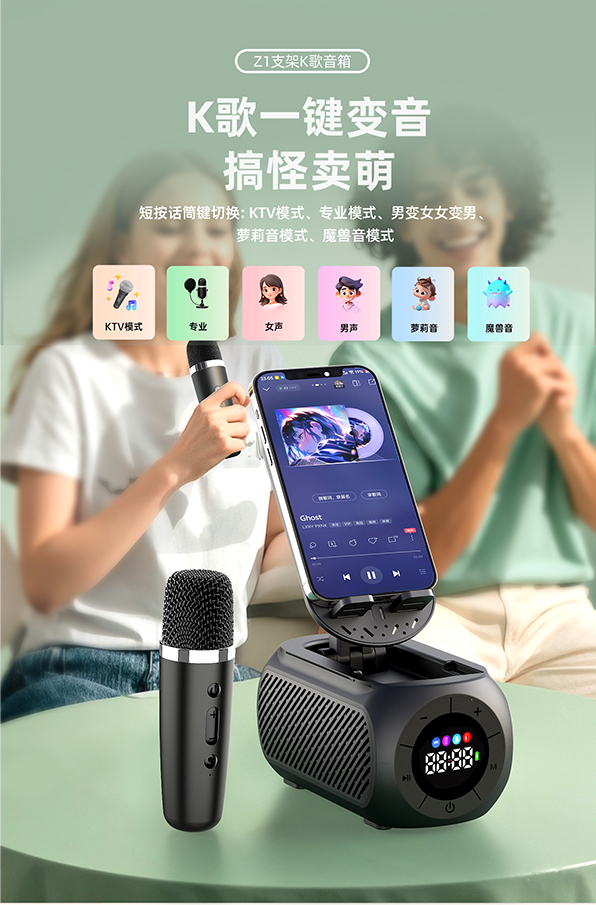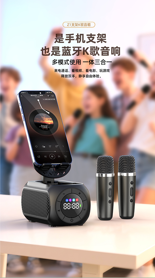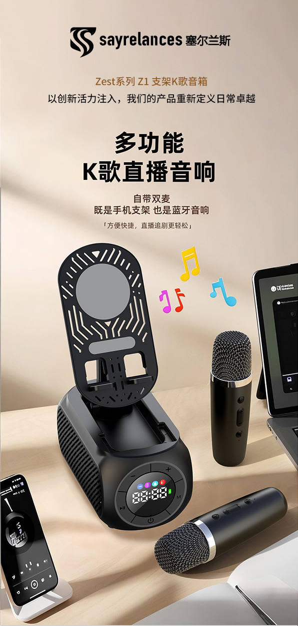 热卖中!!【塞尔兰斯】五合一便携式支架K歌麦克风音箱Z1(手机支架+蓝牙音箱+收音机+K歌套装+应急电源)