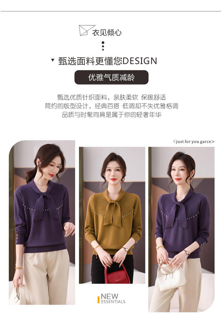 FCY FQ88737圆领蝴蝶结长袖针织衫时尚打底衫 商品图1
