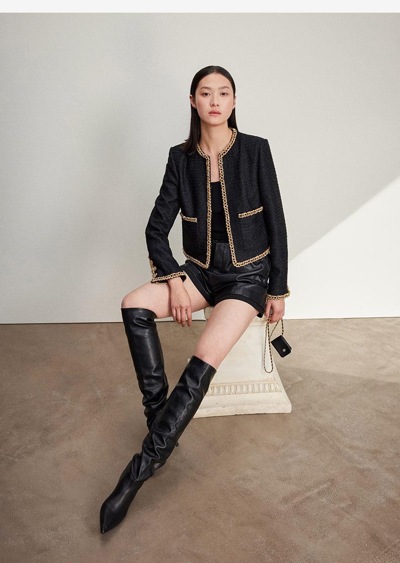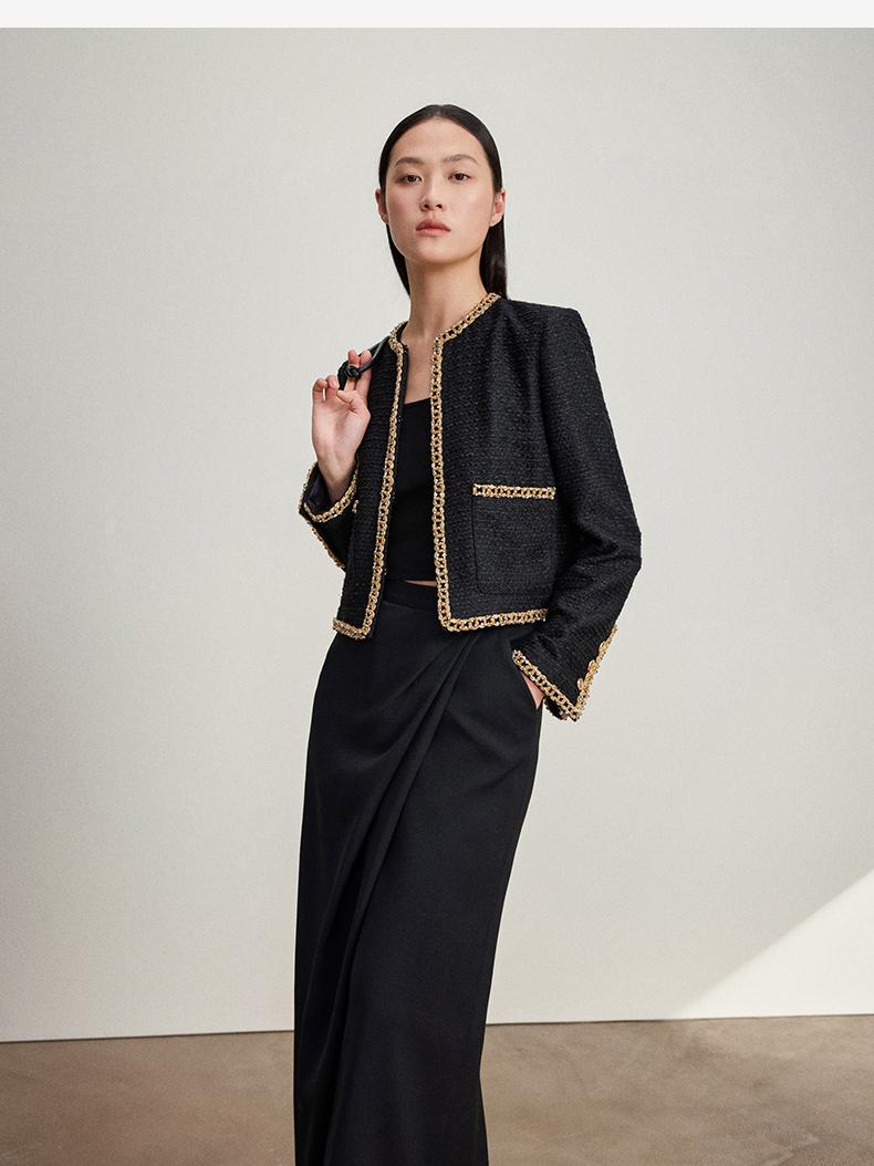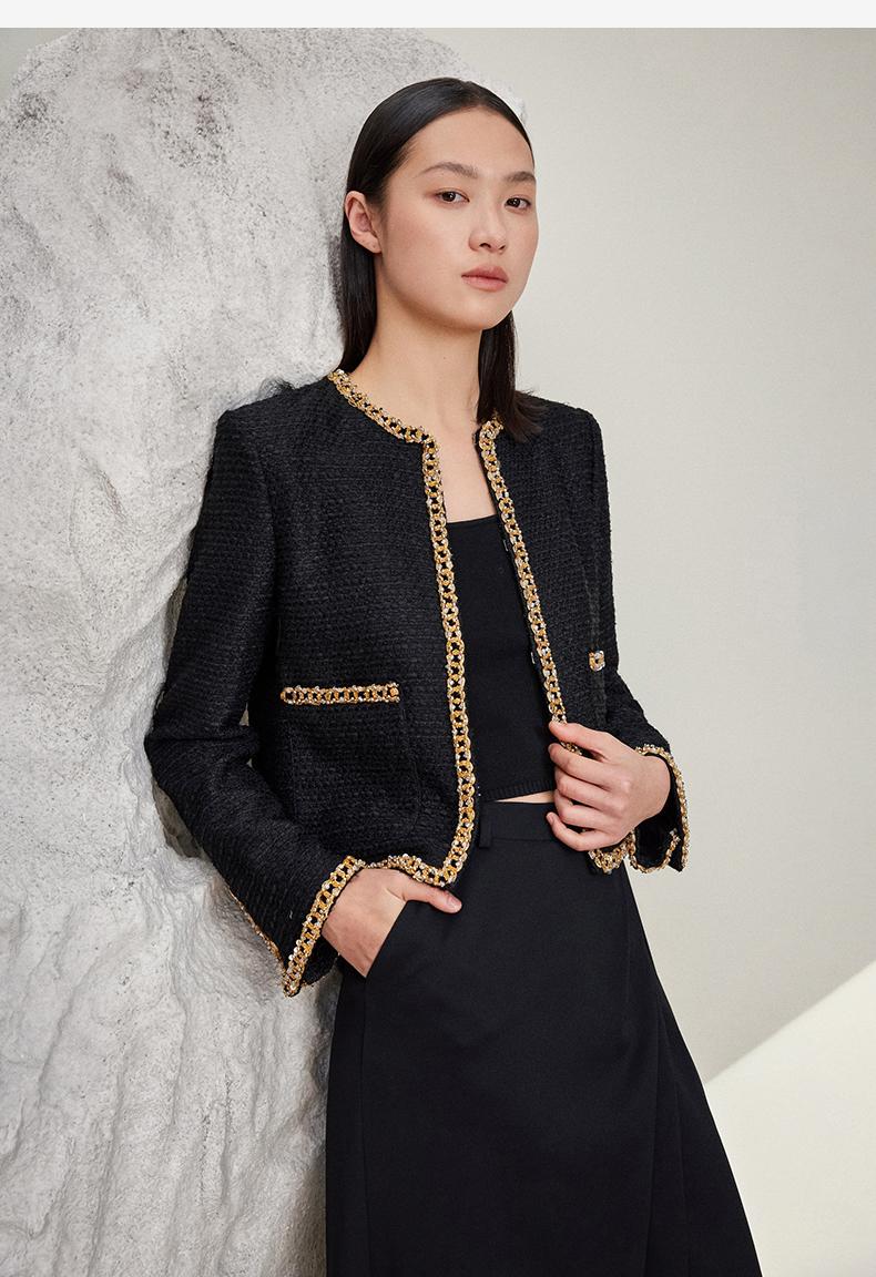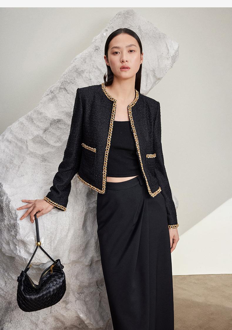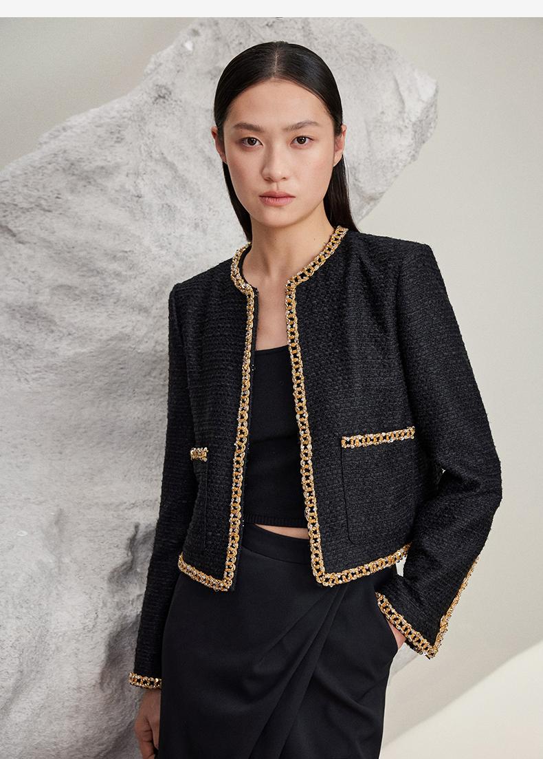 西嘉C+IMPRESS/西嘉千金小香风短外套女气质2024新款高端手工珠钻饰边WT2401059