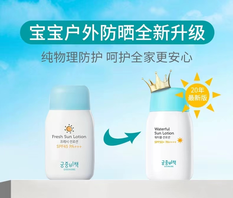 韩国宫中秘策Goongbe儿童防晒霜spf50保湿不油腻防晒乳液宝宝防紫外线乳80ml