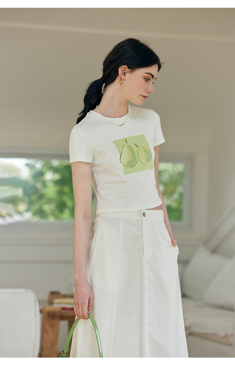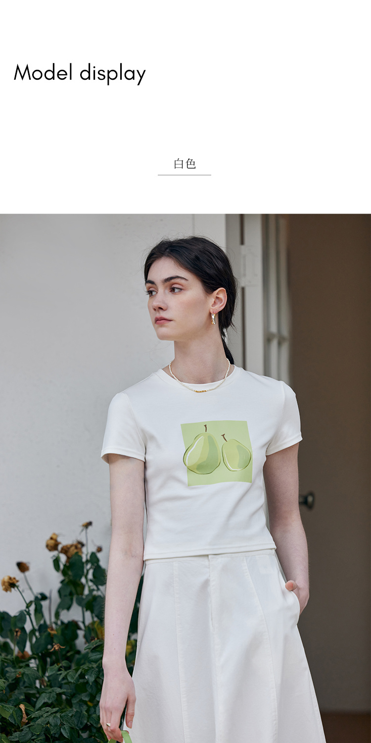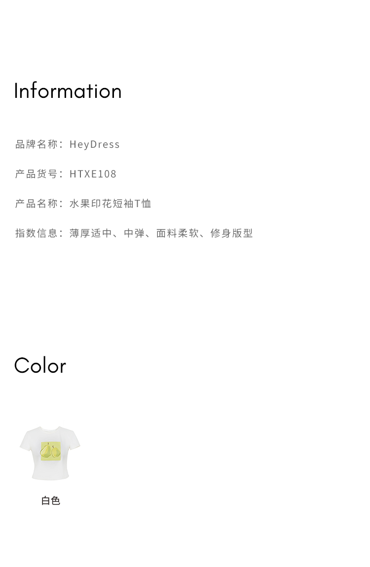【周四精选福利】HeyDress水果印花T恤女夏季复古圆领修身短半袖百搭休闲短袖上衣