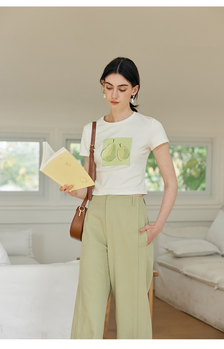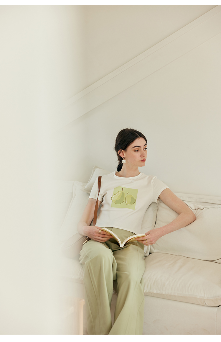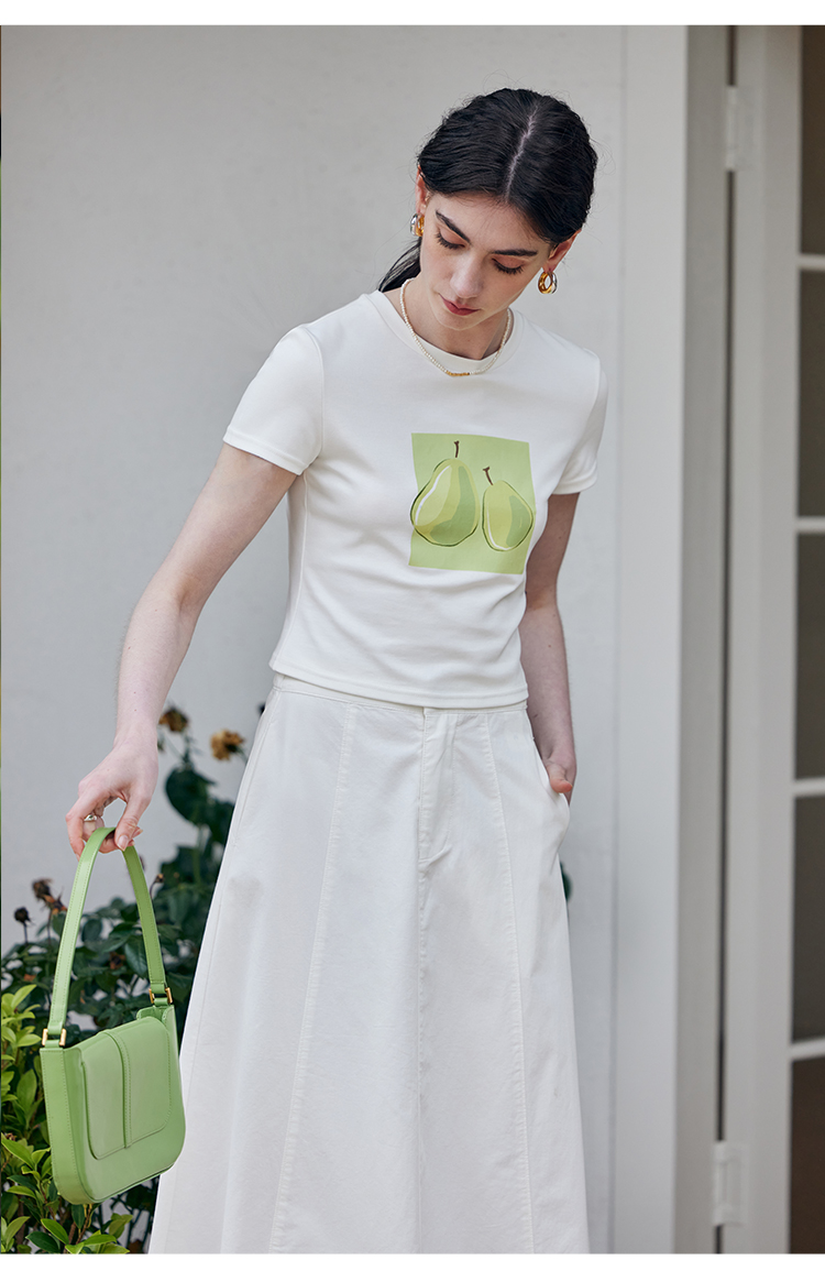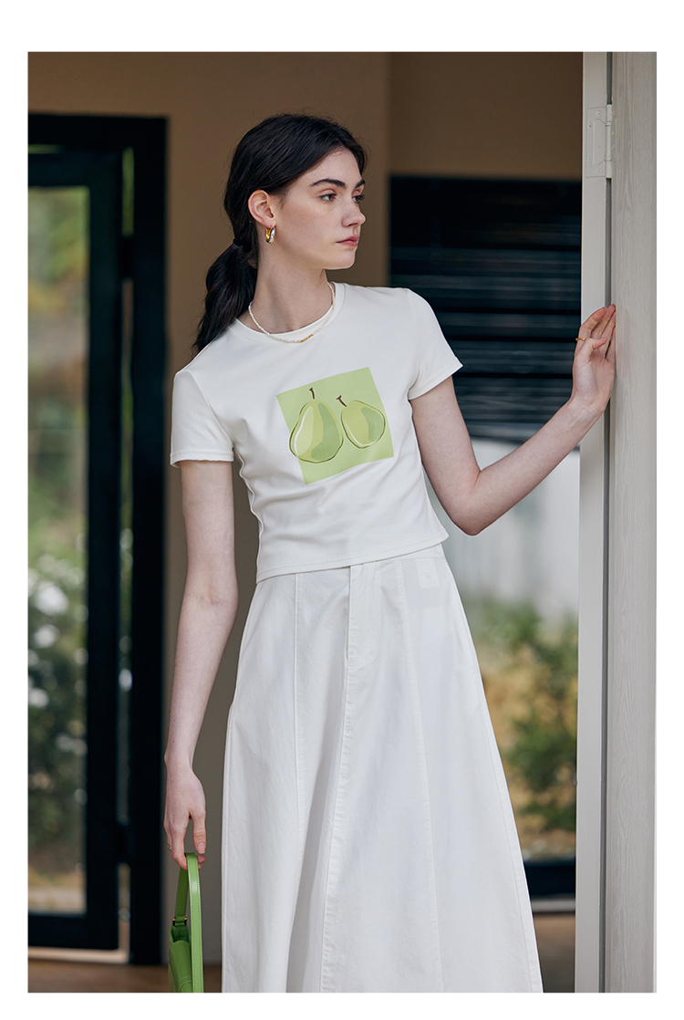 【周四精选福利】HeyDress水果印花T恤女夏季复古圆领修身短半袖百搭休闲短袖上衣