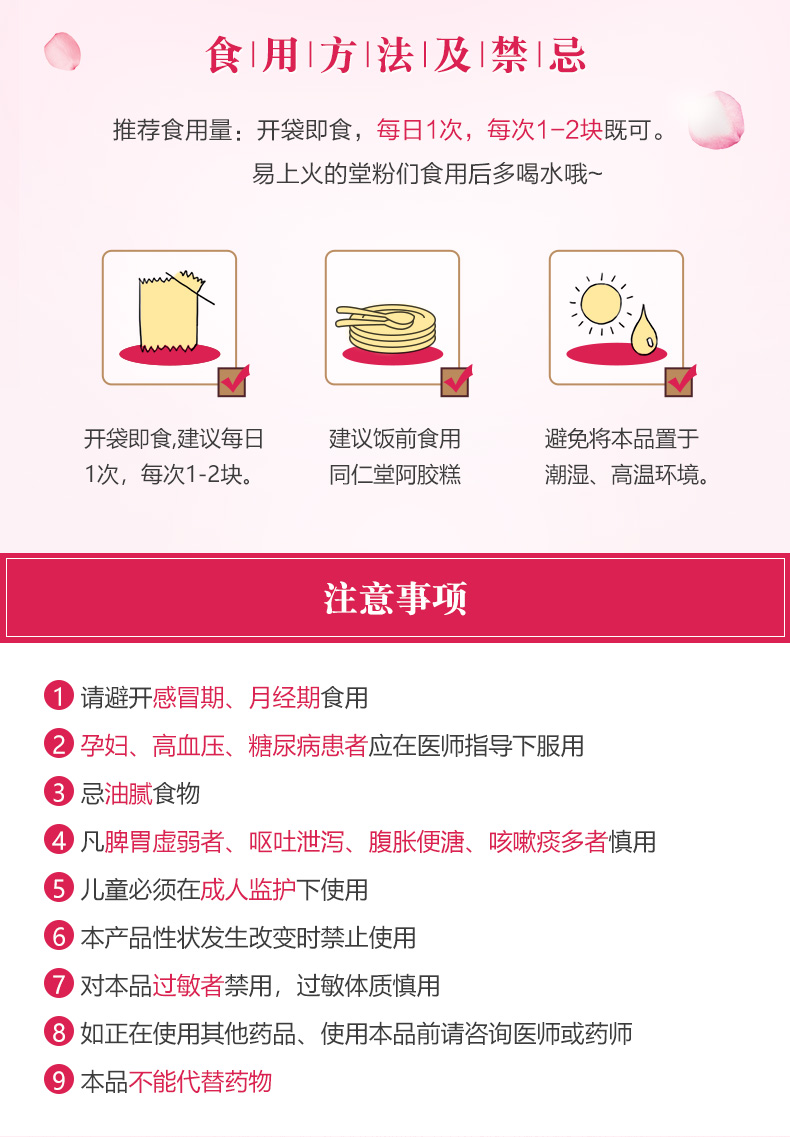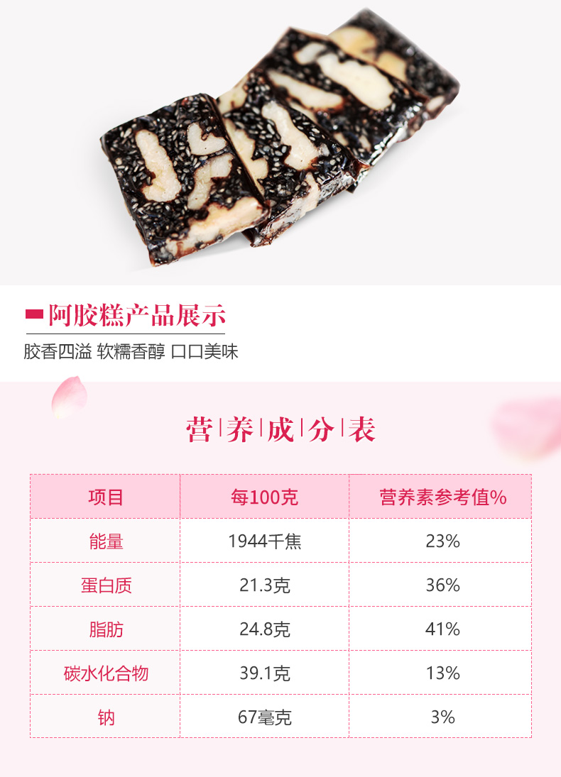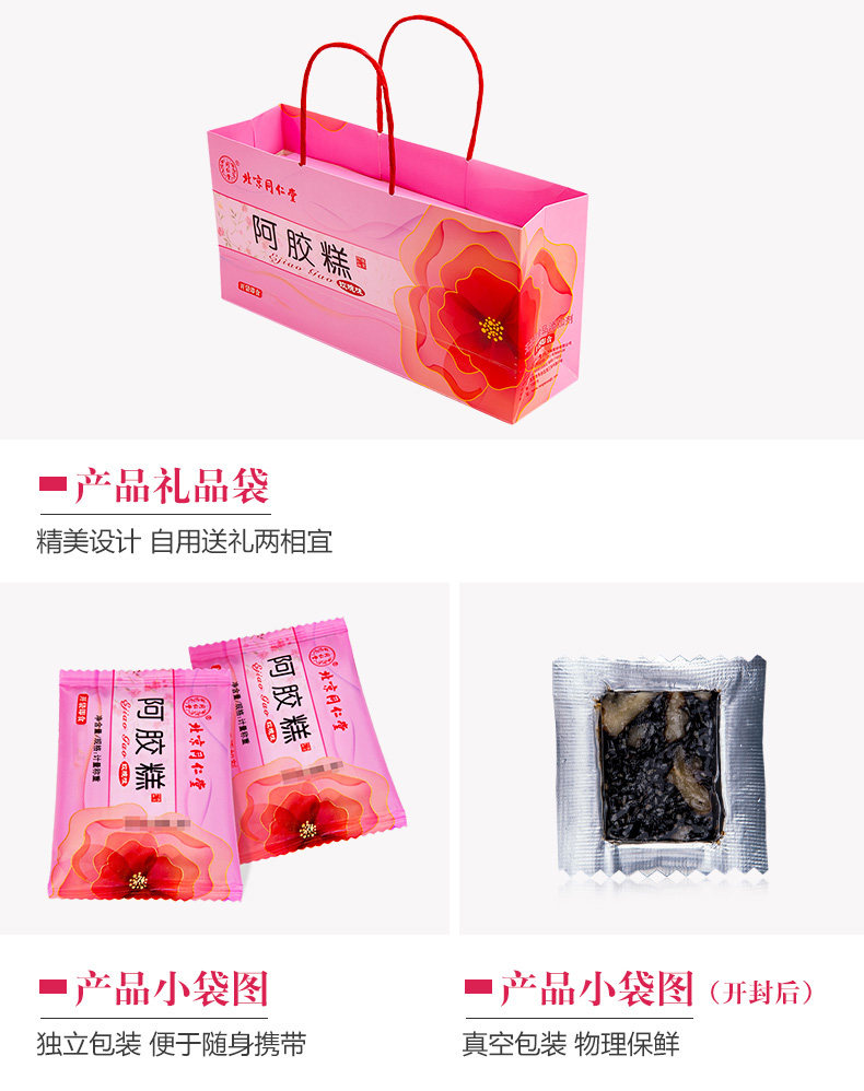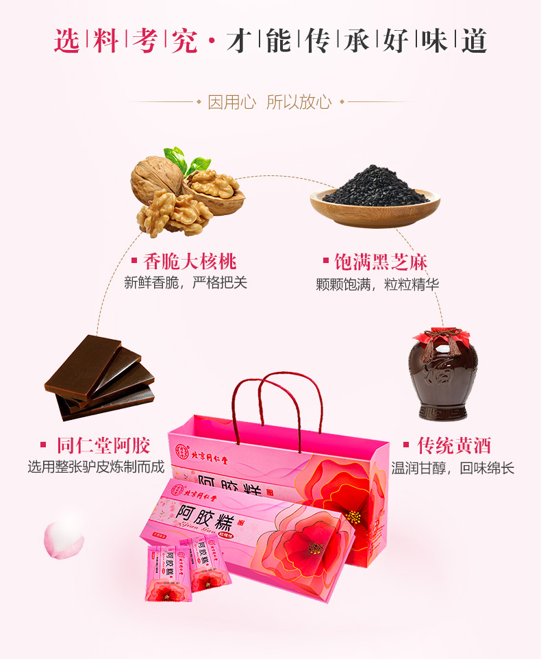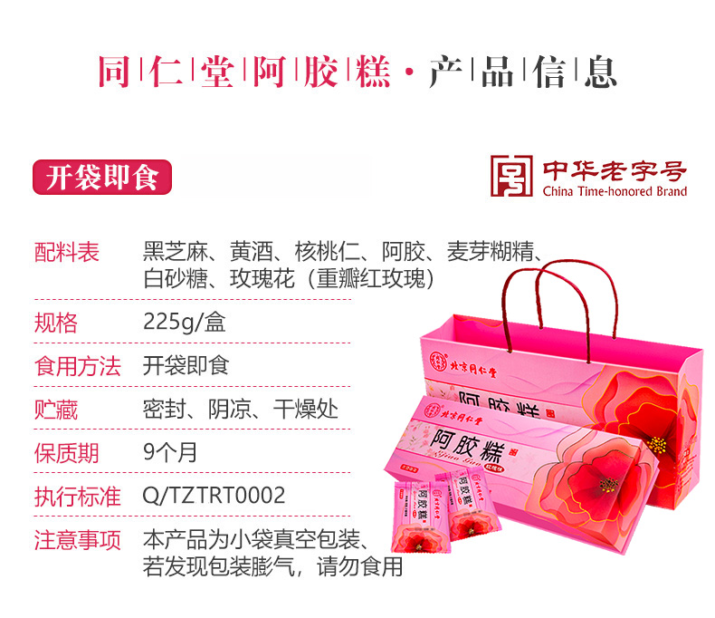 北京同仁堂阿胶糕玫瑰味礼盒 225g 正品驴皮固元膏 开袋即食
