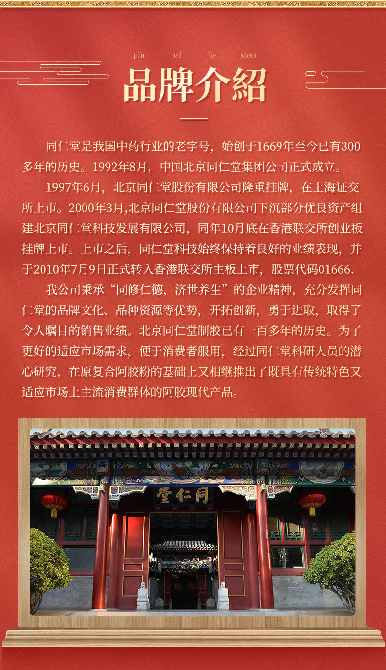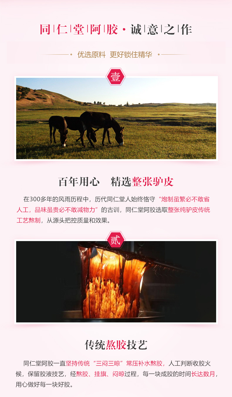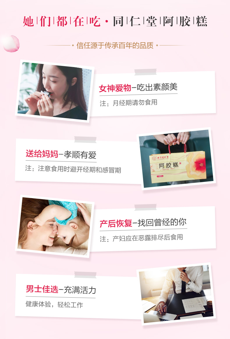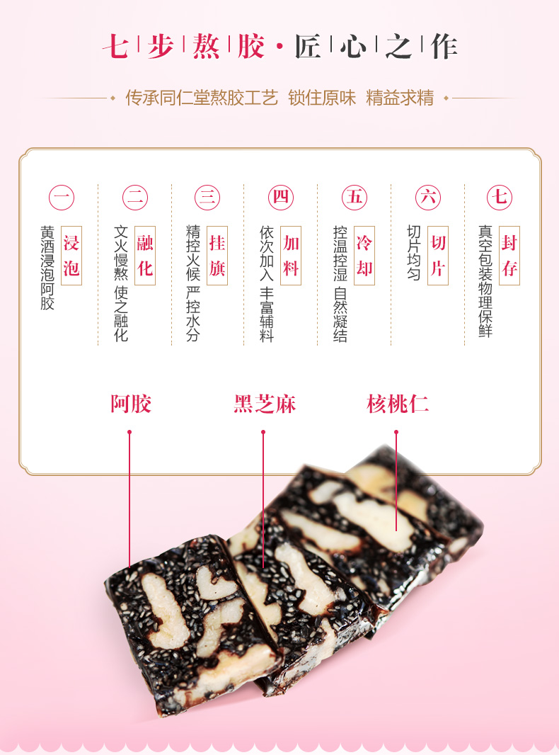 北京同仁堂阿胶糕玫瑰味礼盒 225g 正品驴皮固元膏 开袋即食