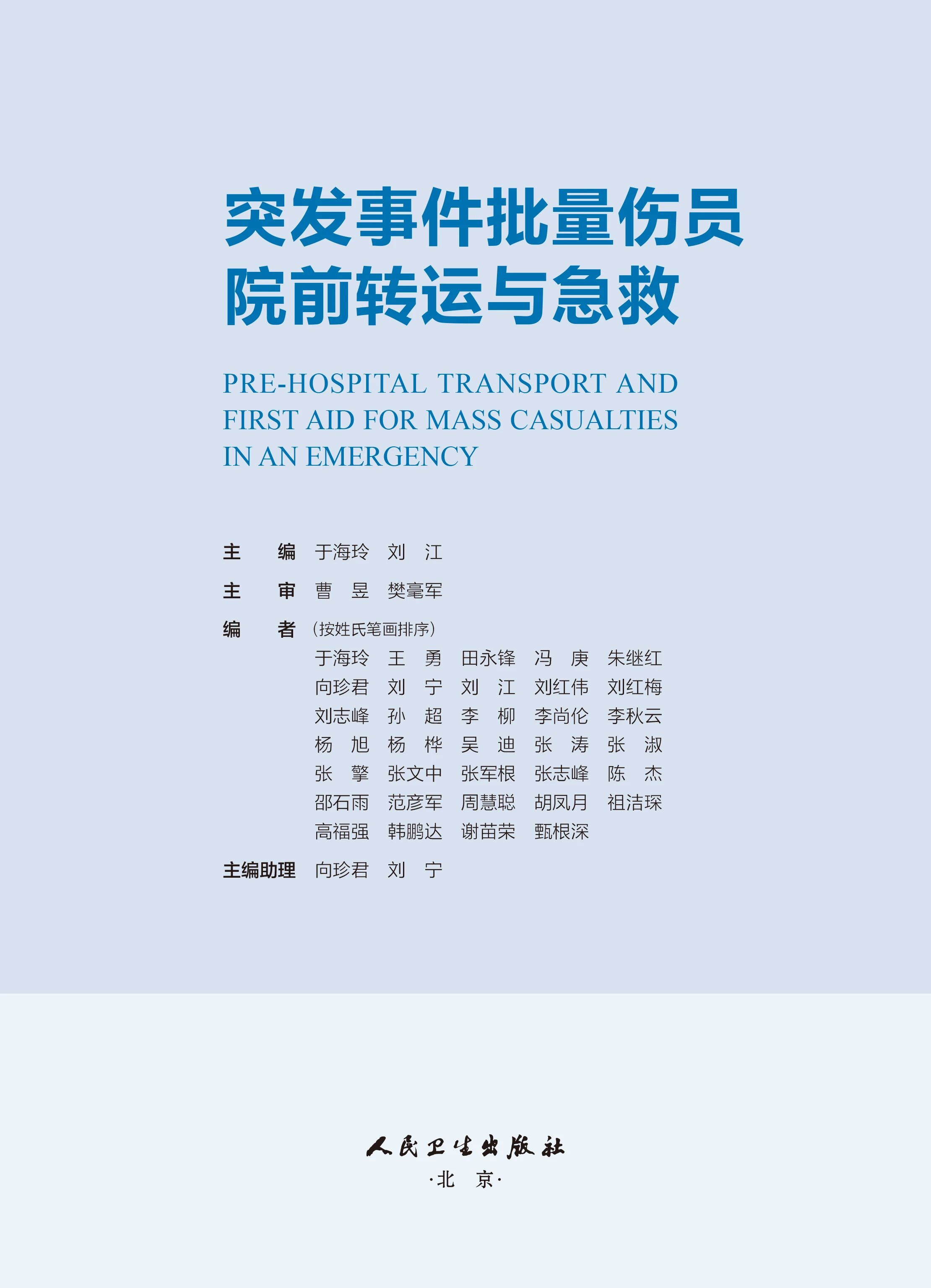 3为急诊急救人员、公共卫生与灾难急救相关人员提供科学指导与实战技巧,是提升突发事件批量伤员院前救治能力的必备宝典。