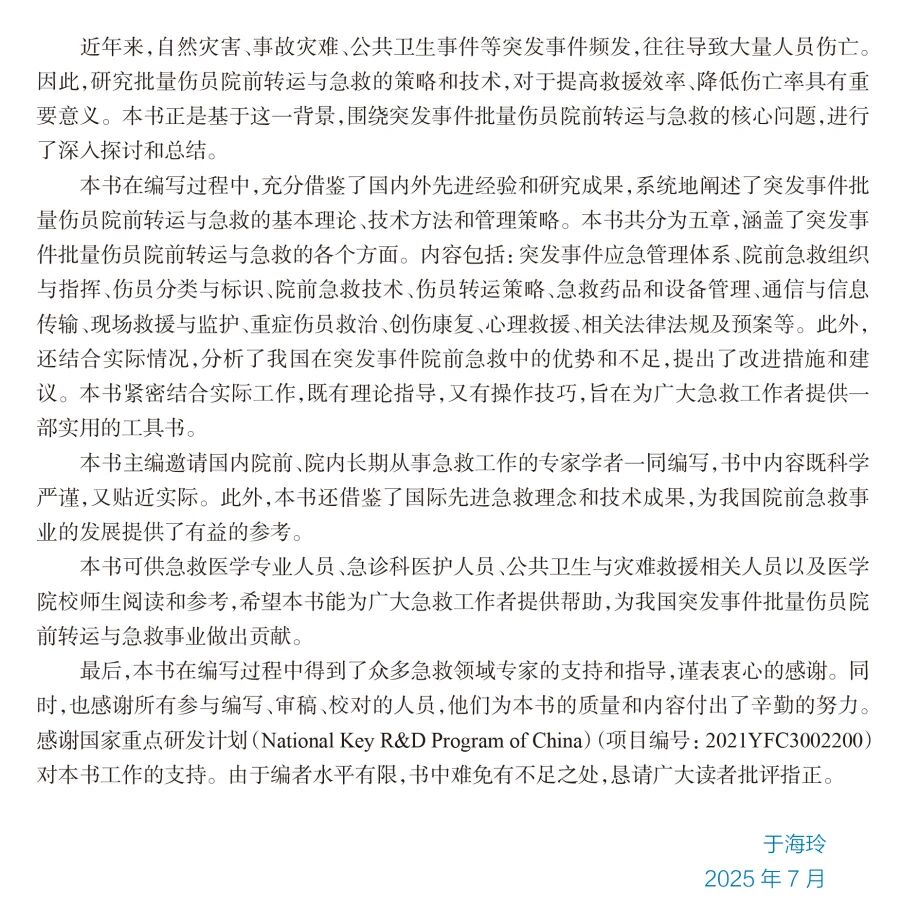 1突发事件批量伤员救治分秒必争且考验专业功底。本书由深耕院前急救与卫生应急管理领域多年的于海玲、刘江两位专家领衔,联合国内长期从事急救工作的专家学者共同打造,内容兼具权威性与实用性。