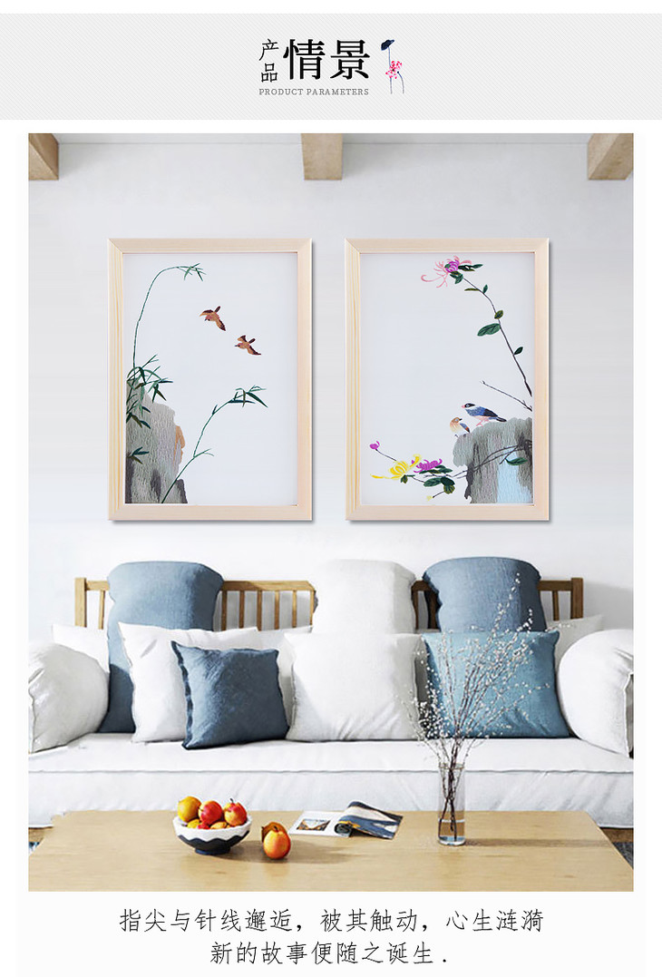 【东方美绣】创意方形刺绣框画(材料包+画框+底座)