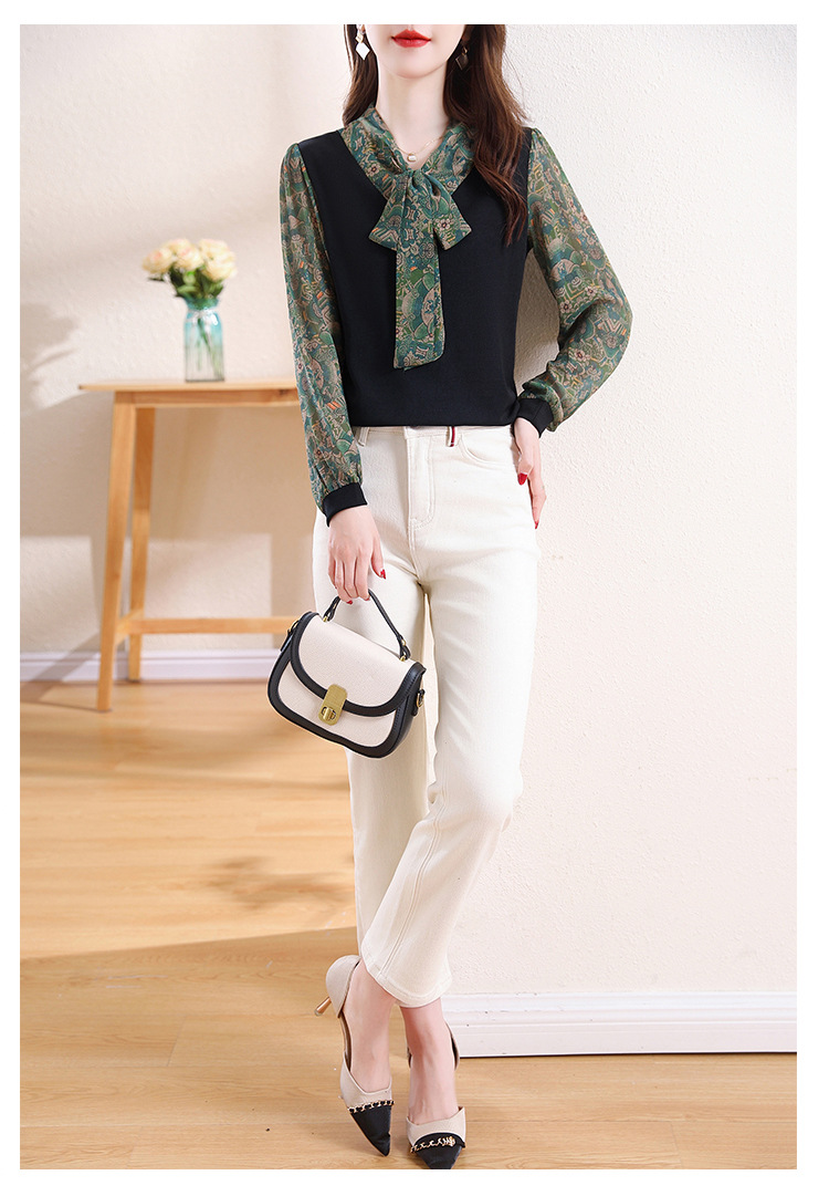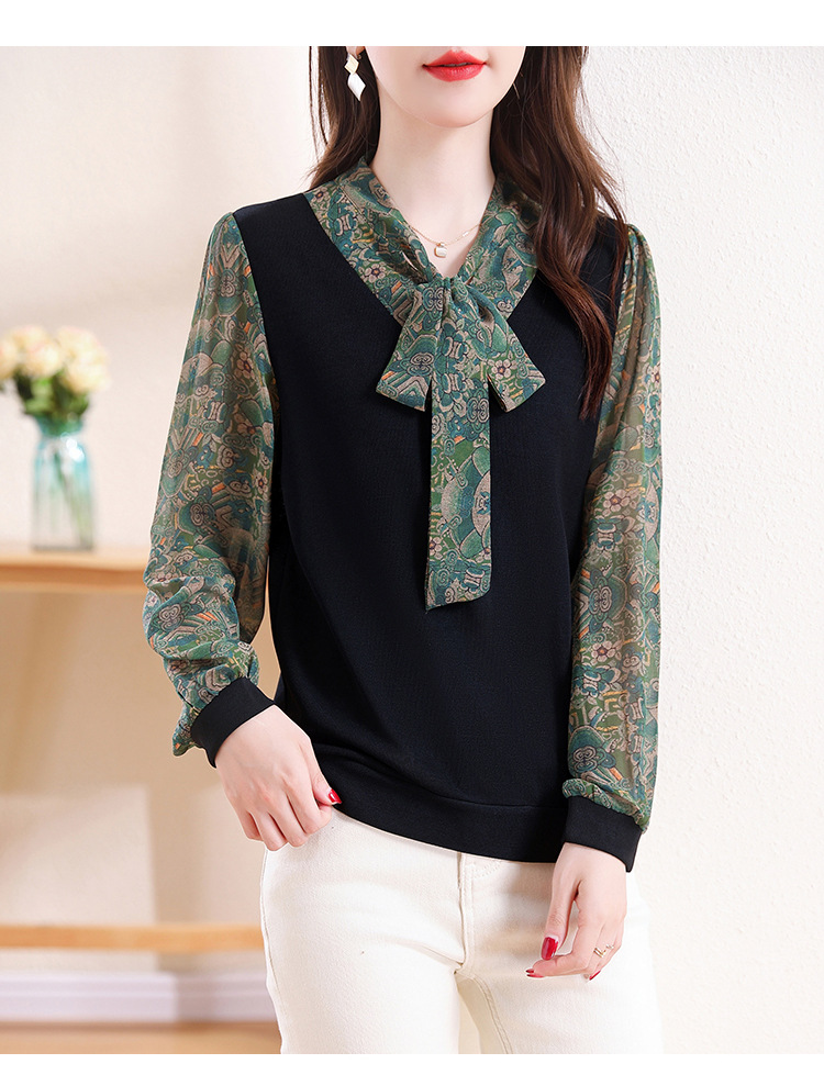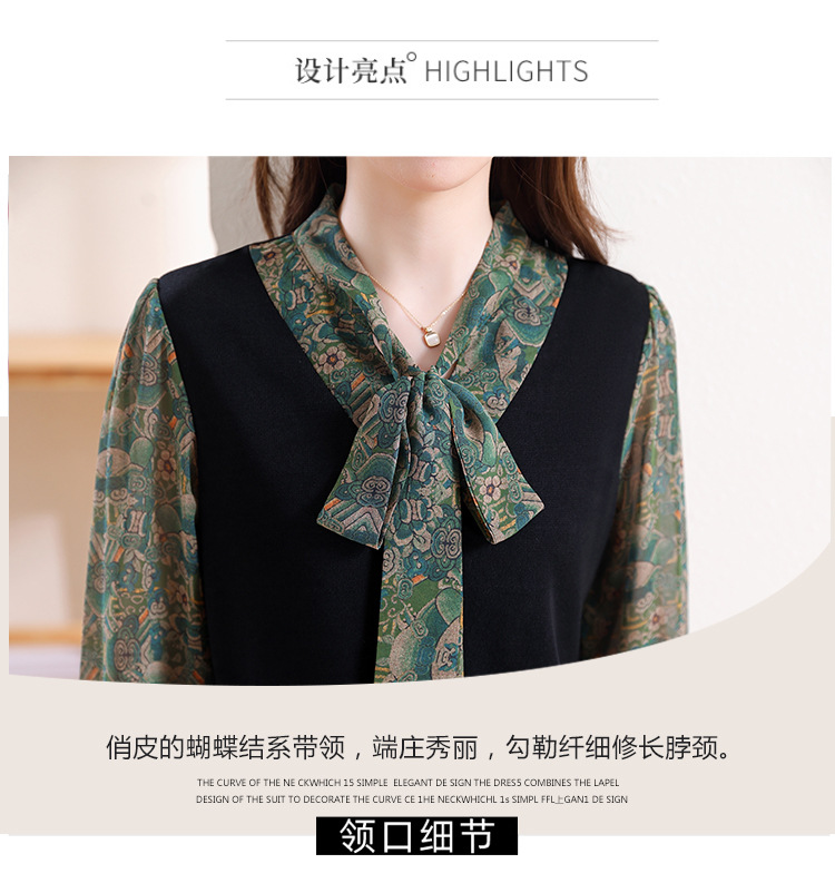 KQL蝴蝶结衬衫女2025春季新款长袖假两件时尚高级感减龄显瘦上衣