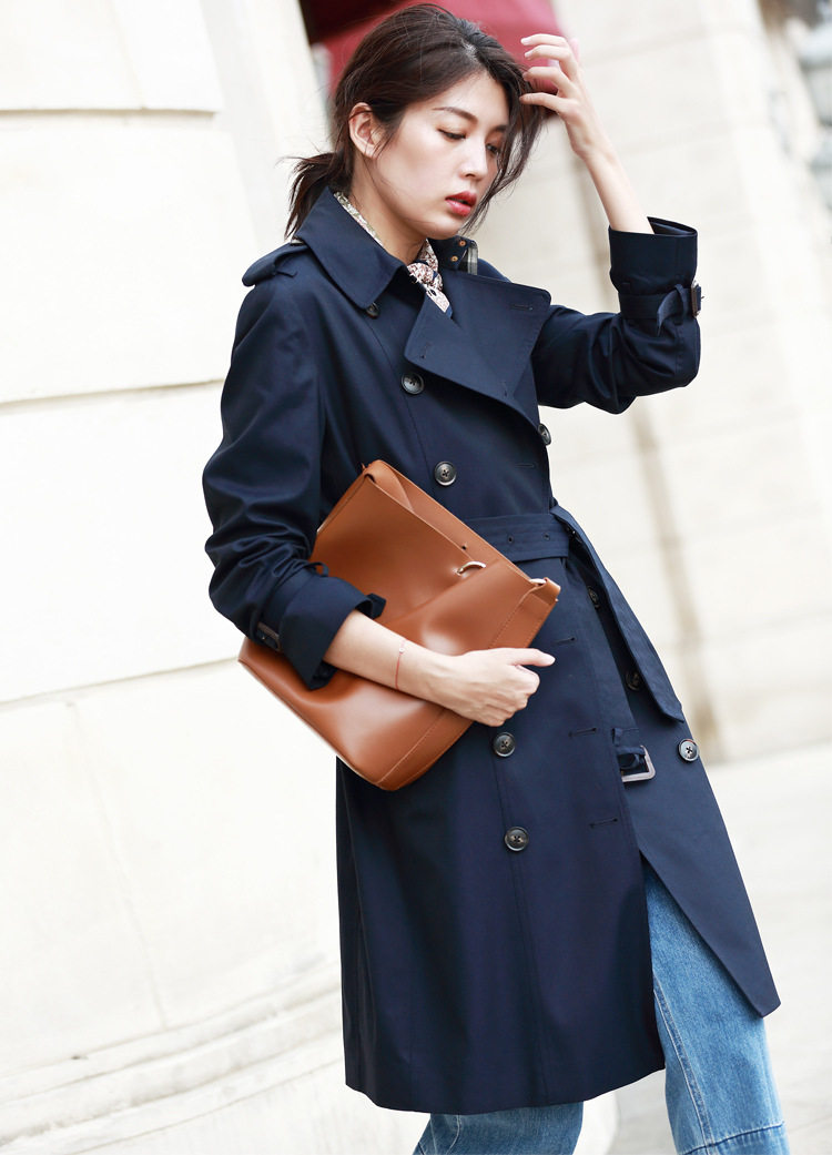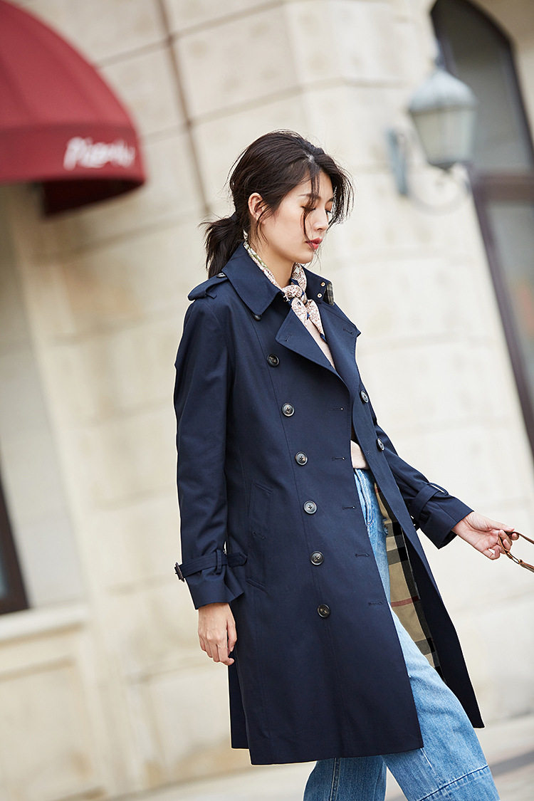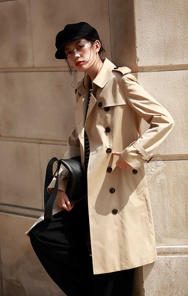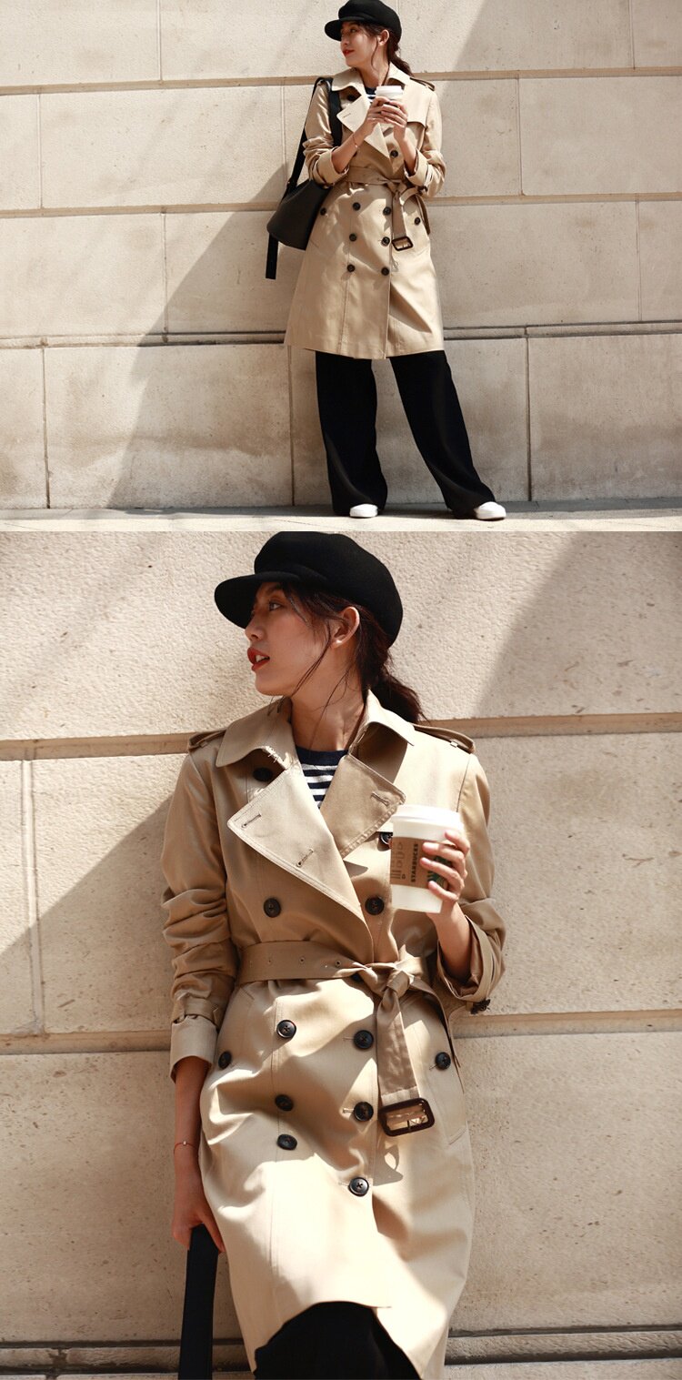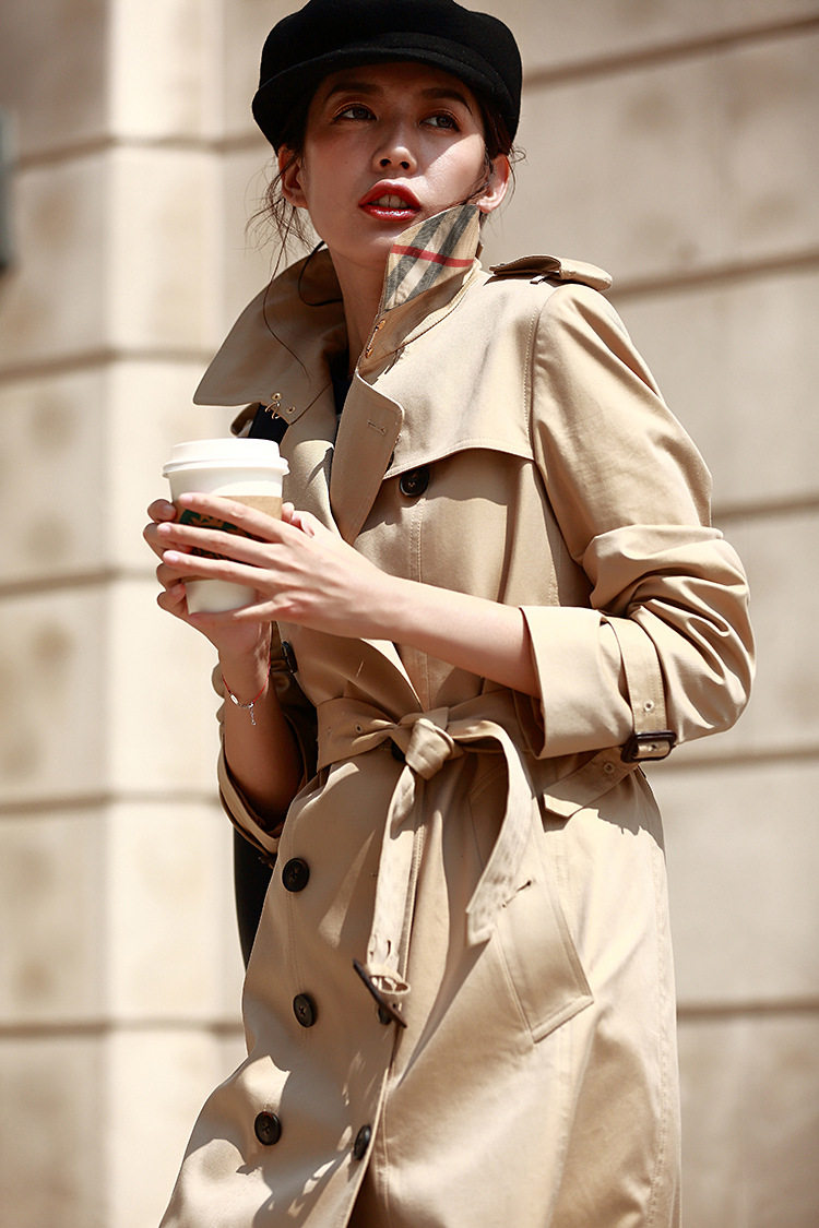 「高货sh」全新升级【铂金会员441/天猫599/差价158】(22441)洛诗琳气质翻领风衣外套2026春季新款格纹拼接英伦风中长款休闲外套