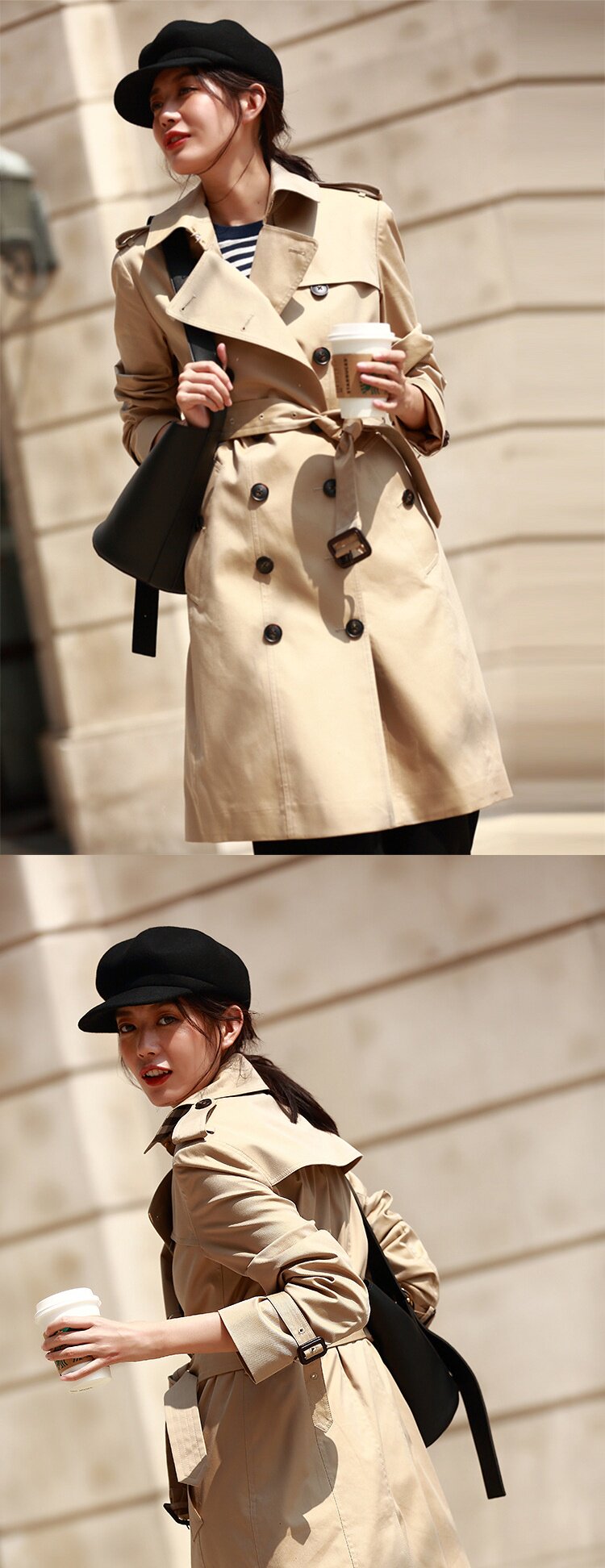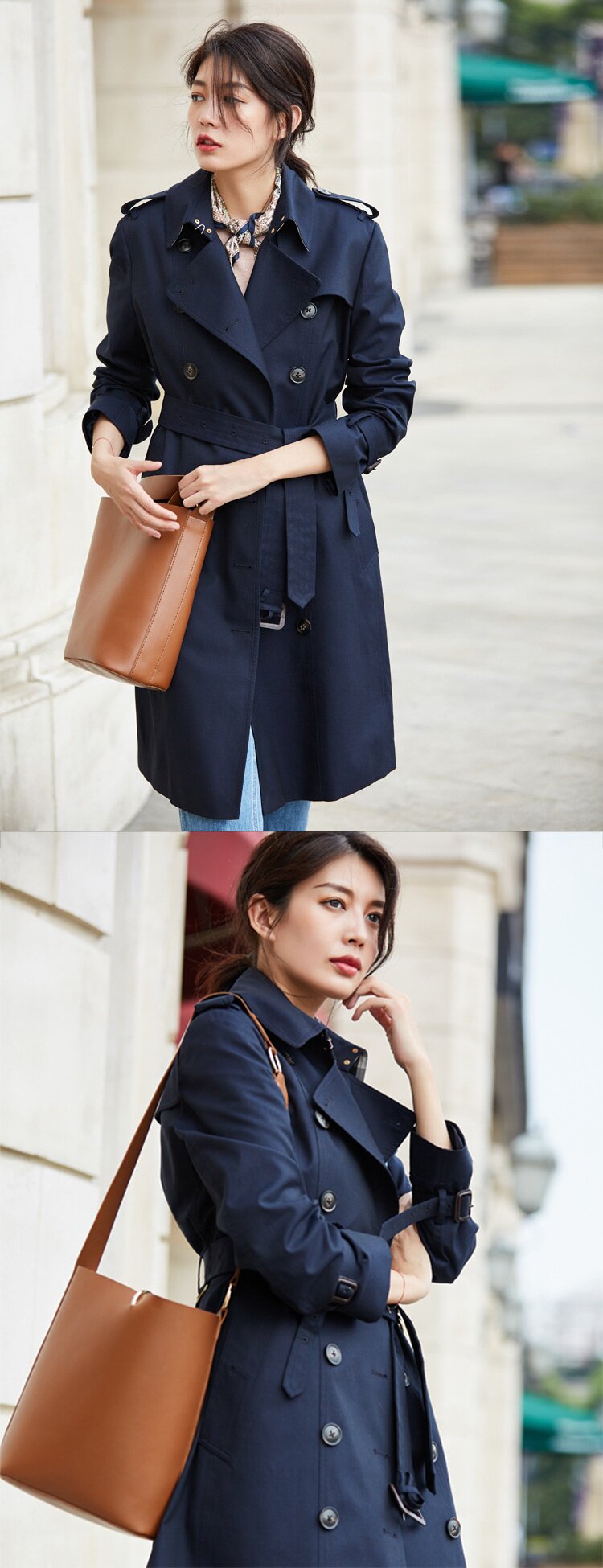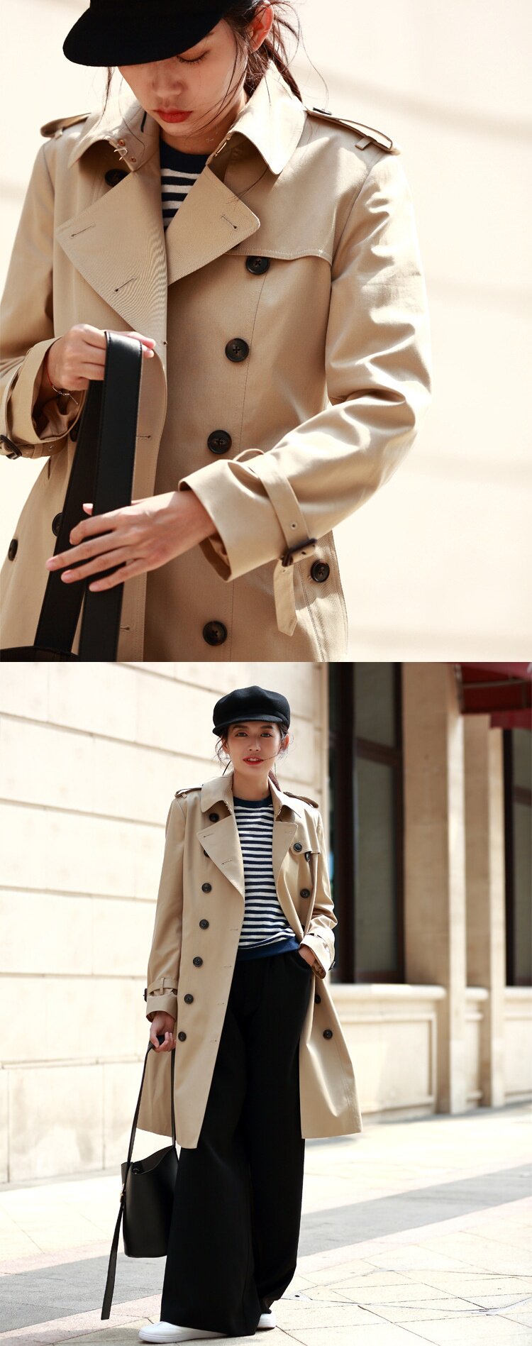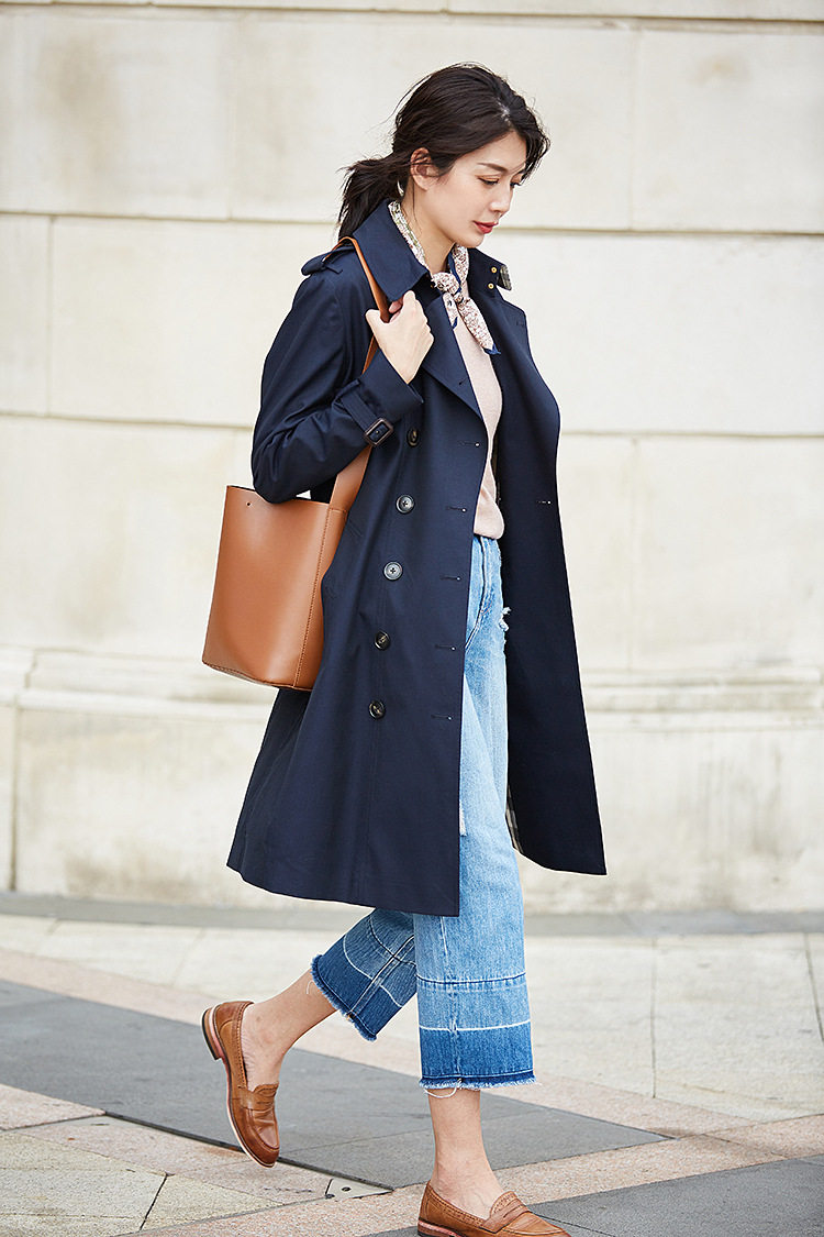 「高货sh」全新升级【铂金会员441/天猫599/差价158】(22441)洛诗琳气质翻领风衣外套2026春季新款格纹拼接英伦风中长款休闲外套