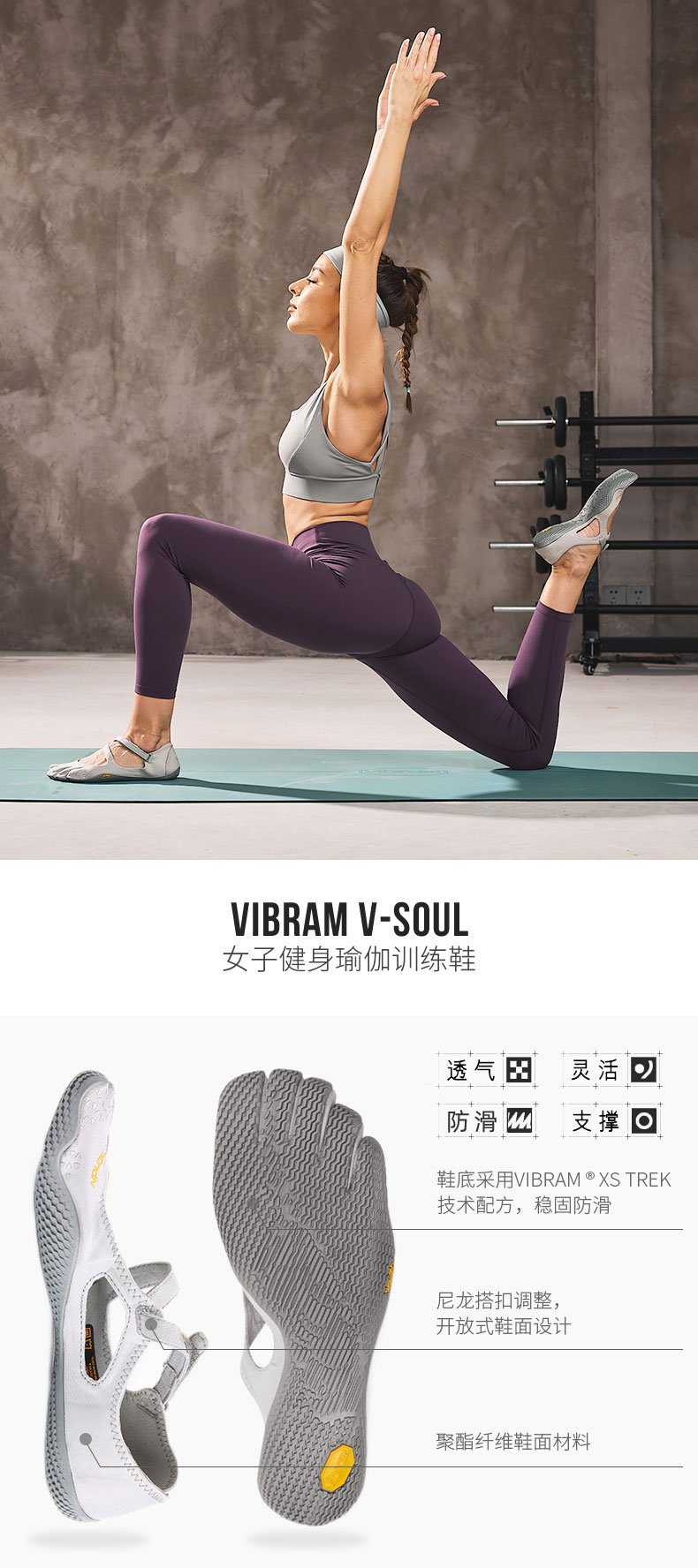 vibram女士室内健身五指鞋便携赤足透气网面舞蹈训练休闲鞋VSOUL