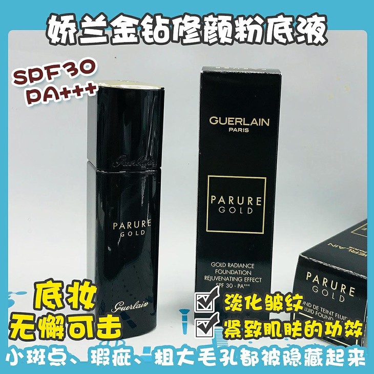 娇兰金钻修颜粉底液#00 30ML👍贵妇娇兰延续了一贯奢(tu)侈(hao)做派🤩,把金箔焕采精粹和金钻焕采复活科技加入到粉底液中😱,还具有SPF30 PA+++的防晒系数☀。不仅是让脸庞无懈可击的底妆💃,还兼具了精华☑淡化皱纹、☑紧致肌肤的功效。涂抹在脸上后呈现的是柔和效果☁,小斑点、瑕疵、粗大毛孔都被隐藏起来😊,精雕细琢的妆容只要一瓶粉底液机也能打造。保湿滋润💦效果非凡,持妆效果也非凡,让肌肤定格在美丽的年轻状态👏#00瓷白色,令肌肤展现自然光泽✨,适合皮肤本身偏白或者追求白白白的小仙女哦