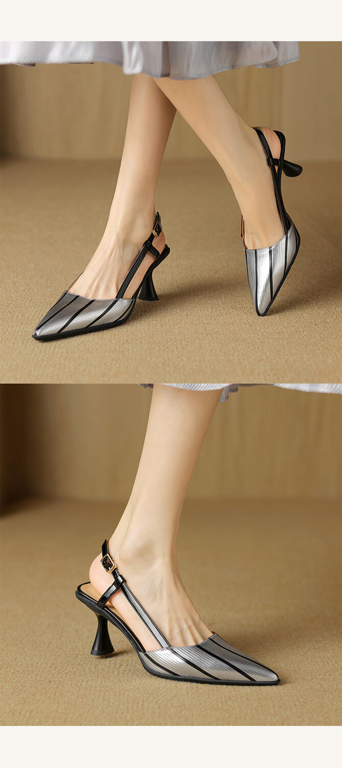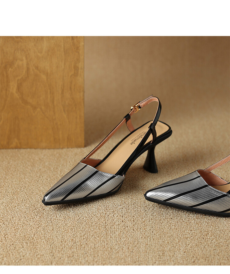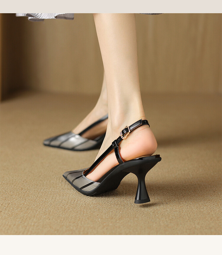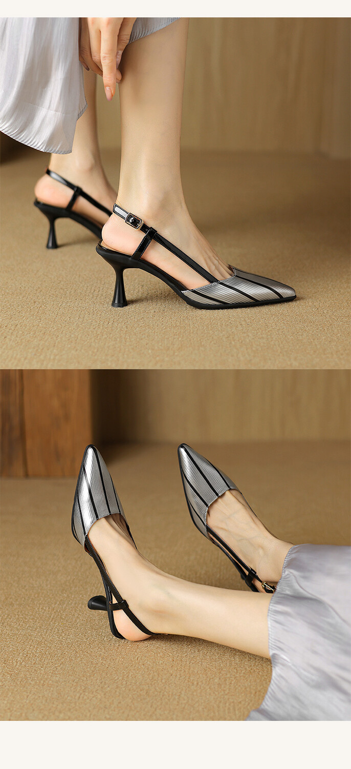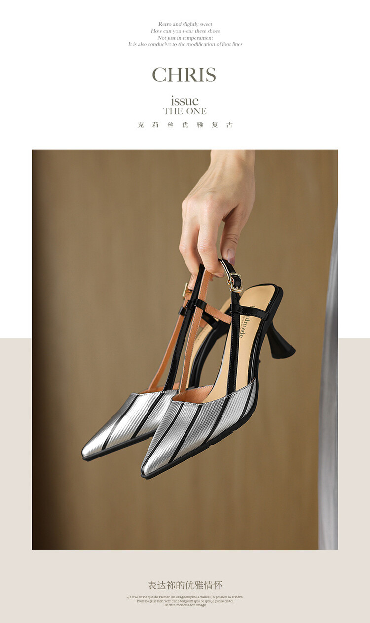 【预售5天】包头凉鞋2024年新款女夏季一字带高跟鞋细跟牛皮小清新时装女鞋子LD&6776