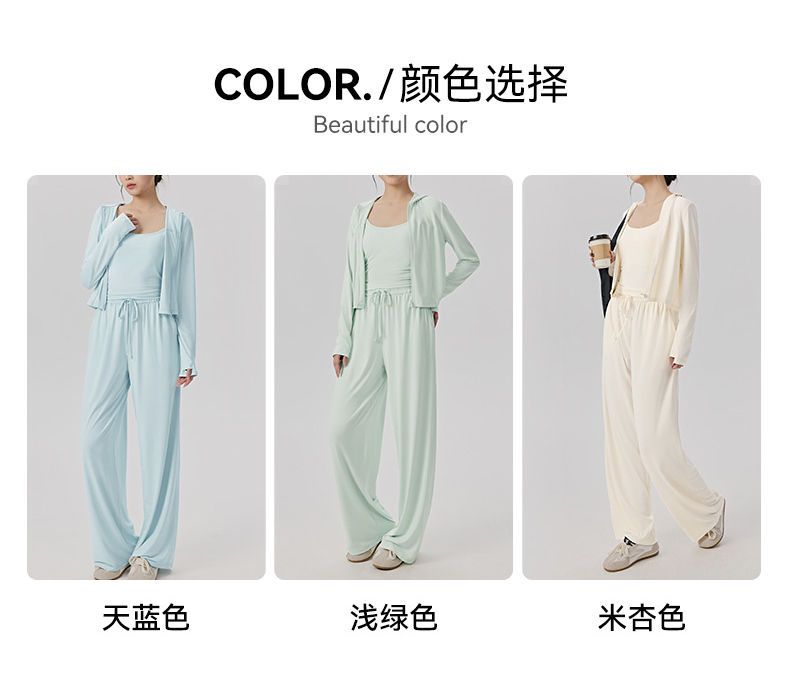 【限时秒】YOGACODE【火树银花系列】冰感防晒套装女轻薄透气健身防晒衣宽松休闲运动套装DWM116023+104+105