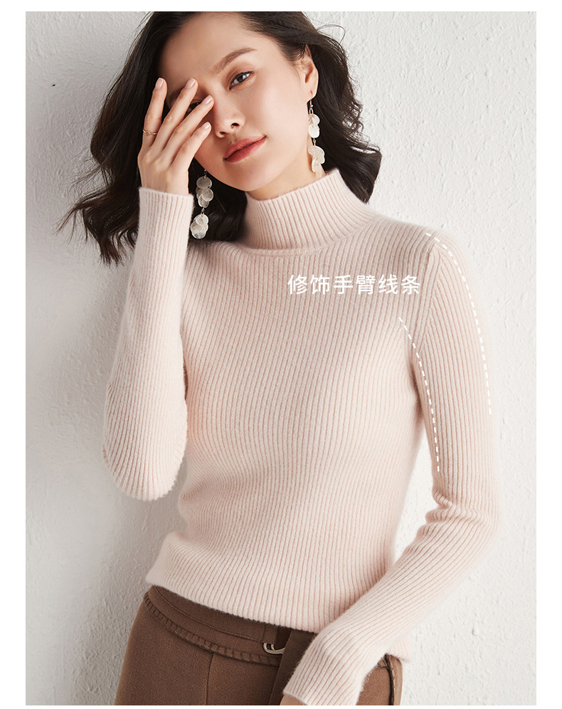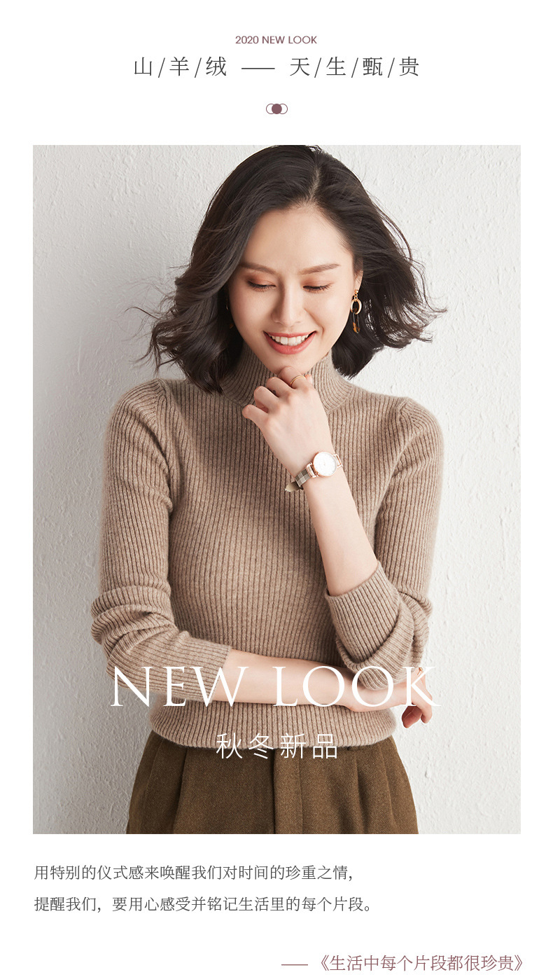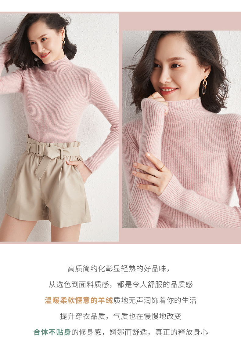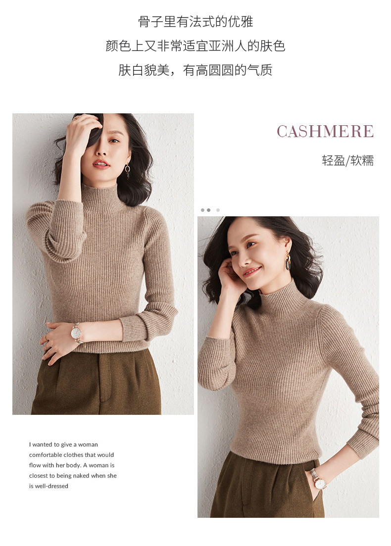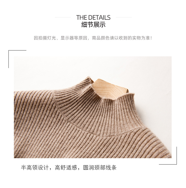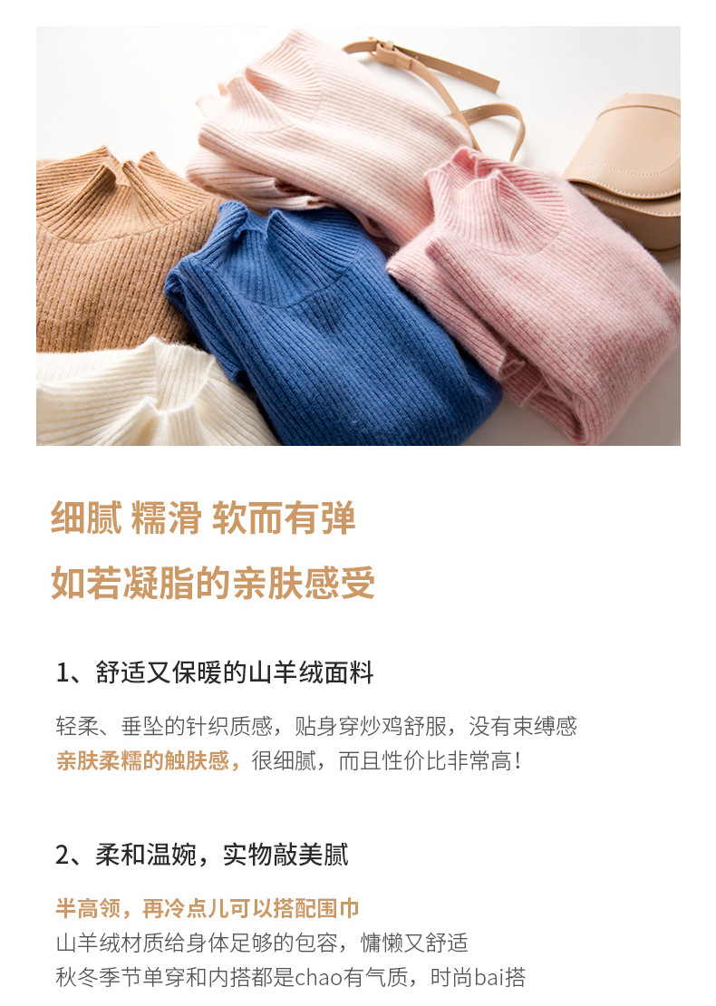 CXY-半高领山羊绒衫女抽条2020秋冬新款套头针织打底衫修身毛衣