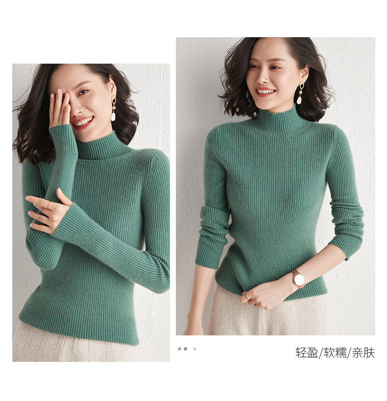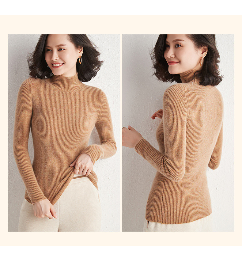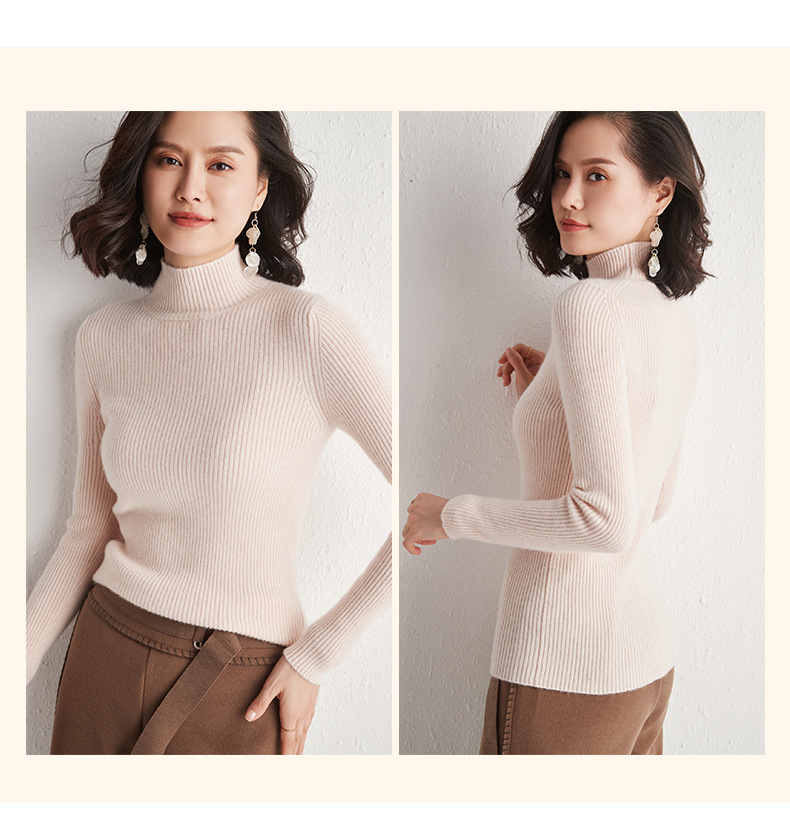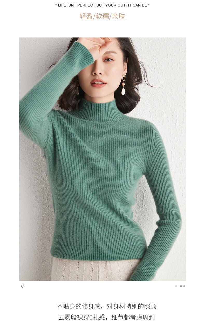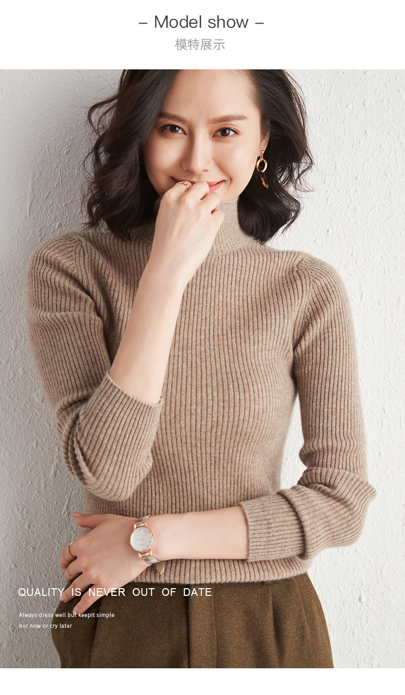 CXY-半高领山羊绒衫女抽条2020秋冬新款套头针织打底衫修身毛衣