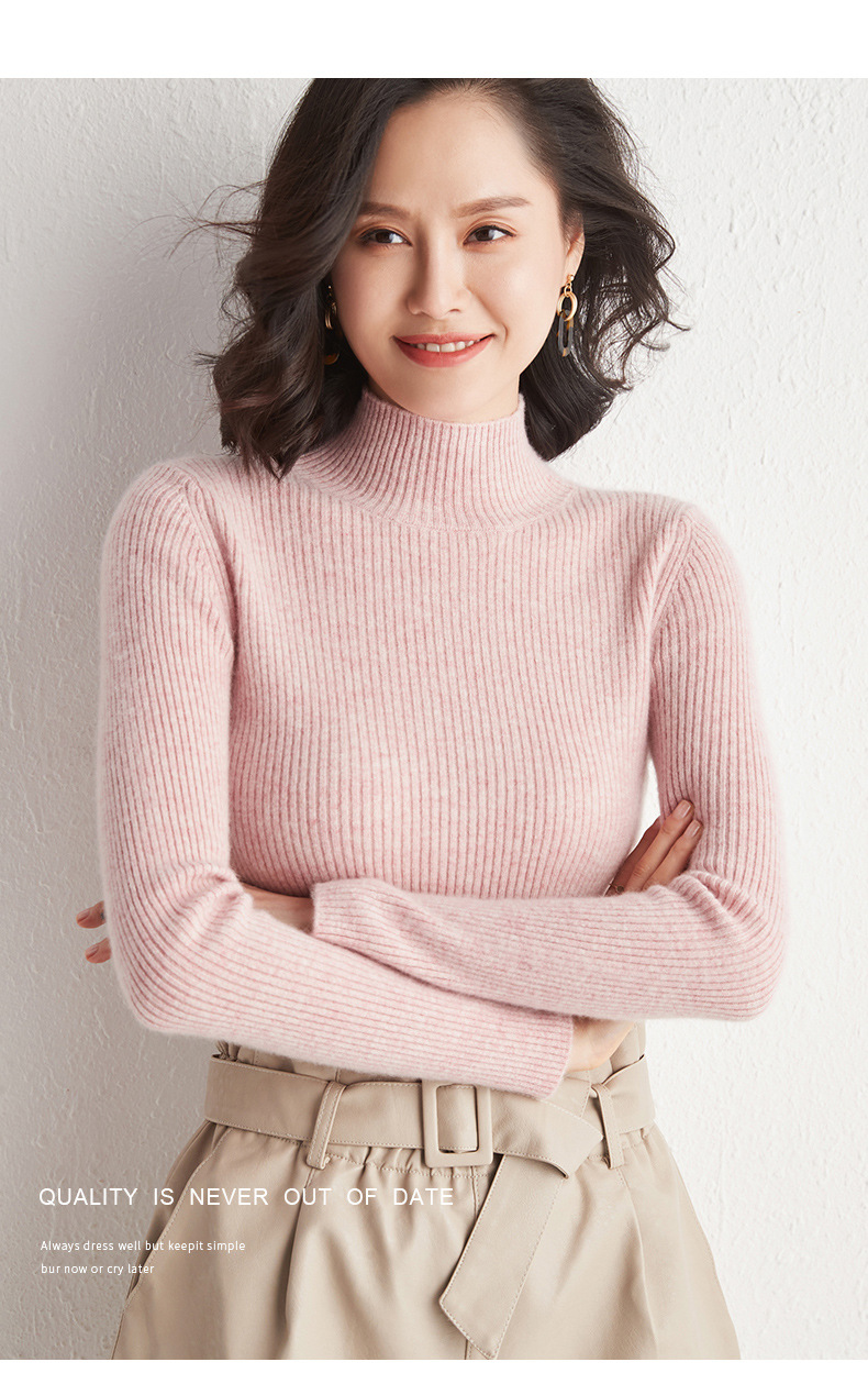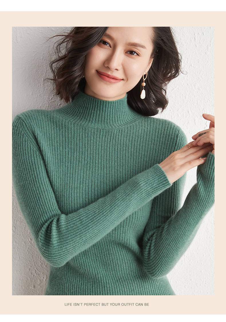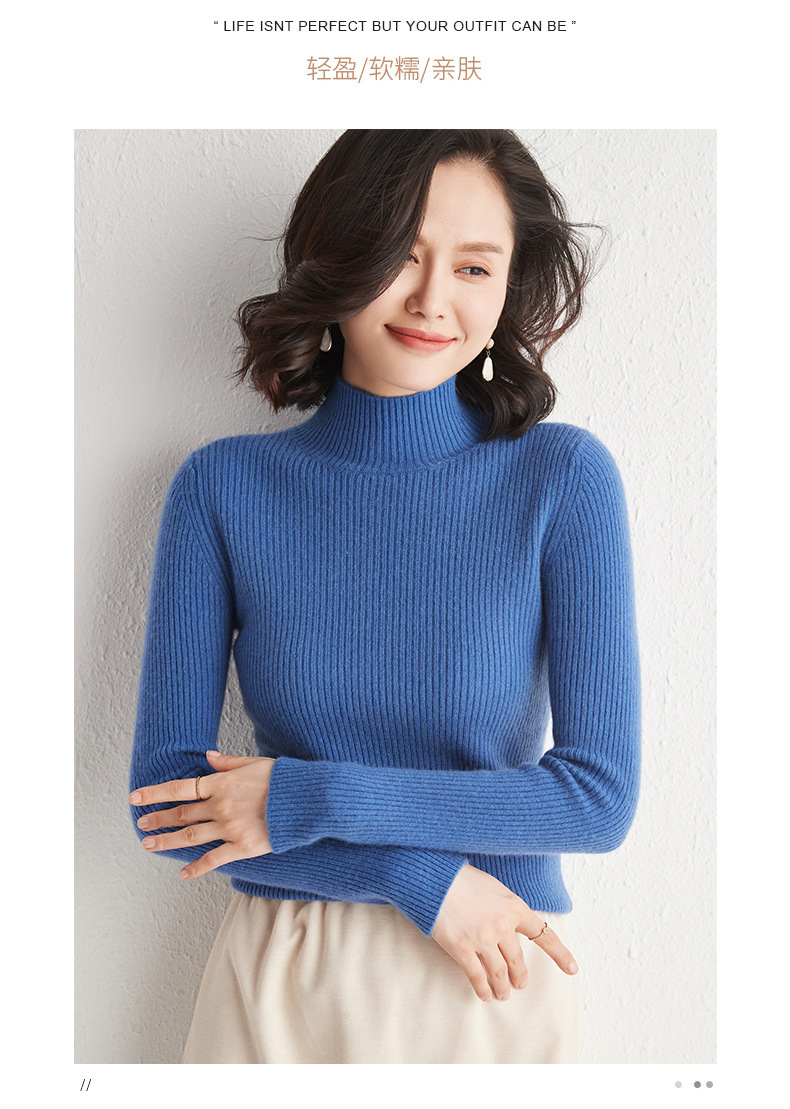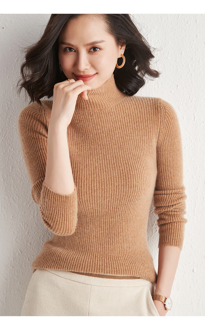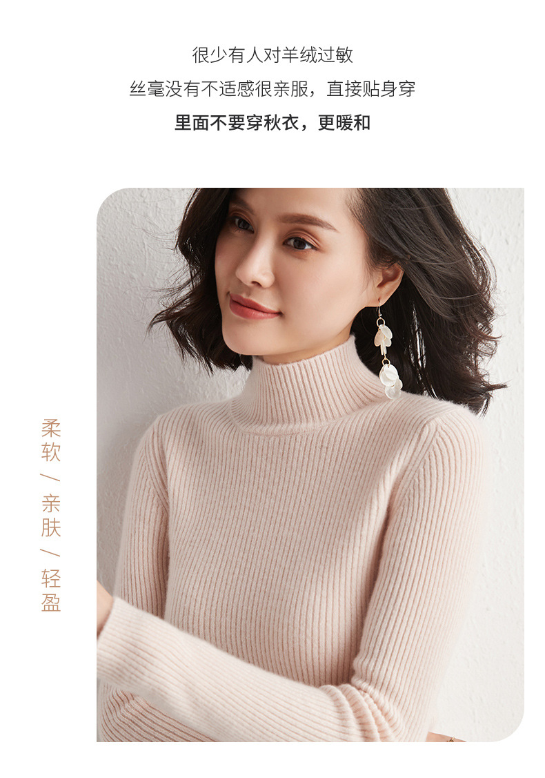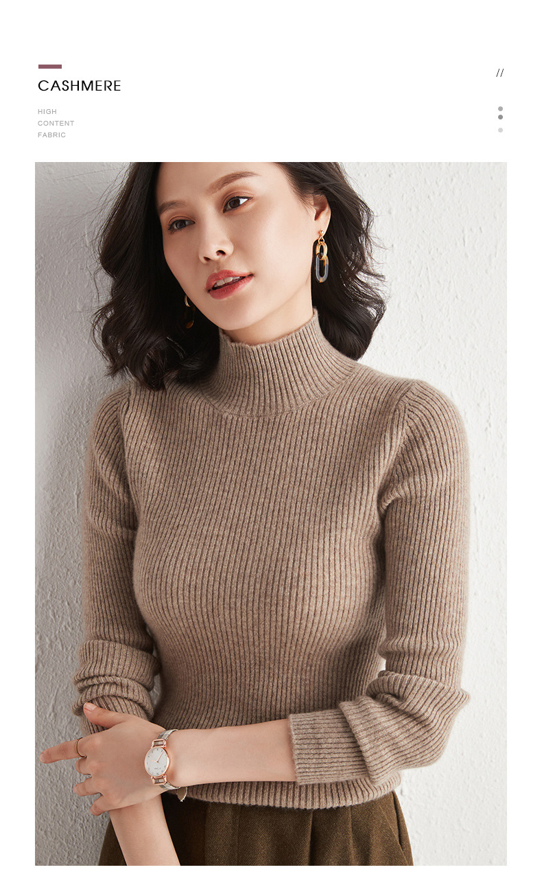 CXY-半高领山羊绒衫女抽条2020秋冬新款套头针织打底衫修身毛衣