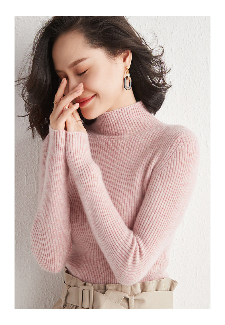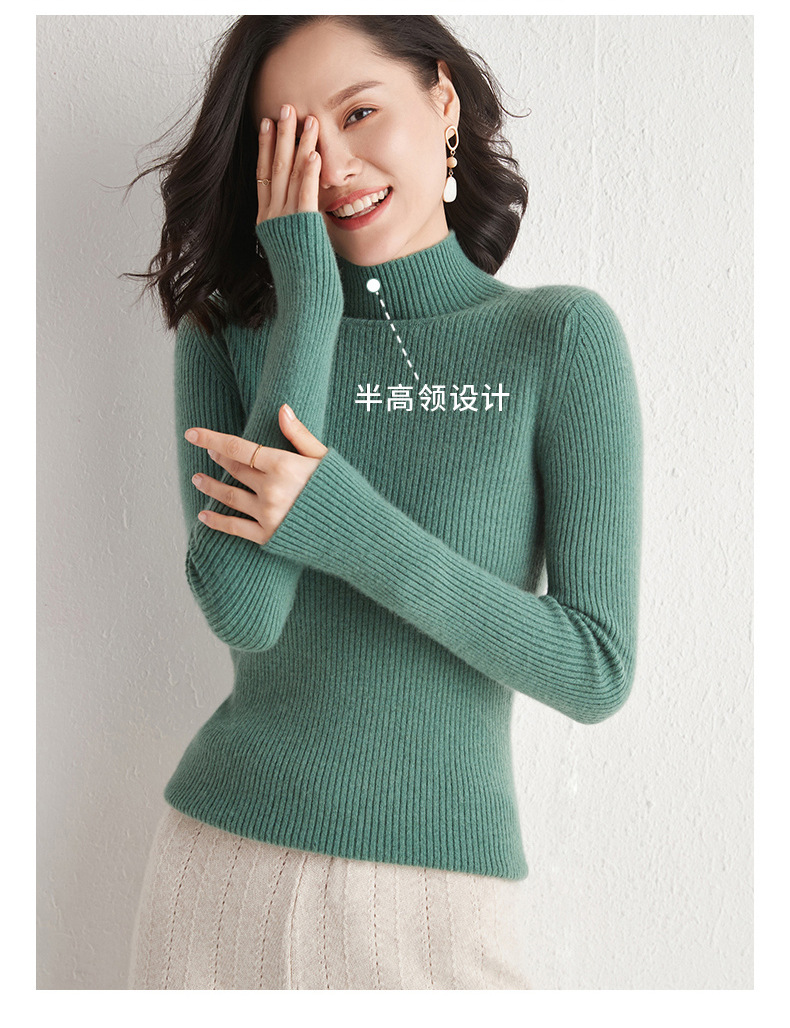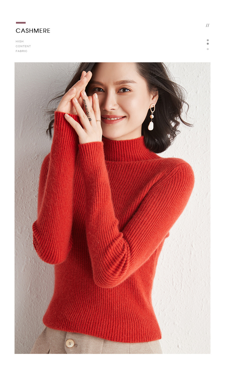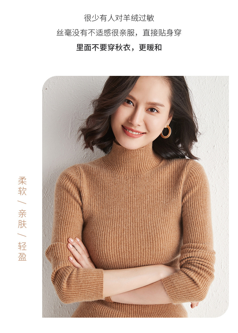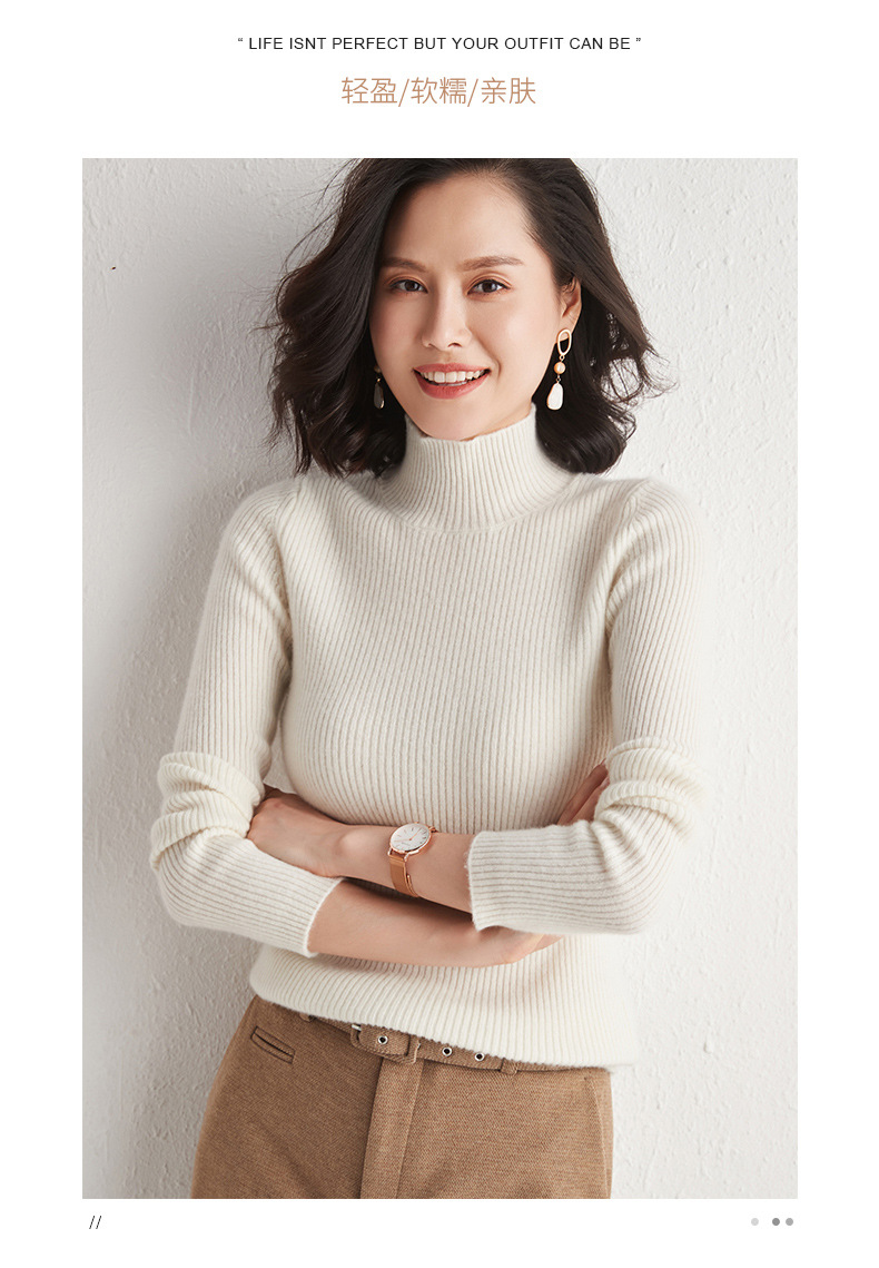 CXY-半高领山羊绒衫女抽条2020秋冬新款套头针织打底衫修身毛衣