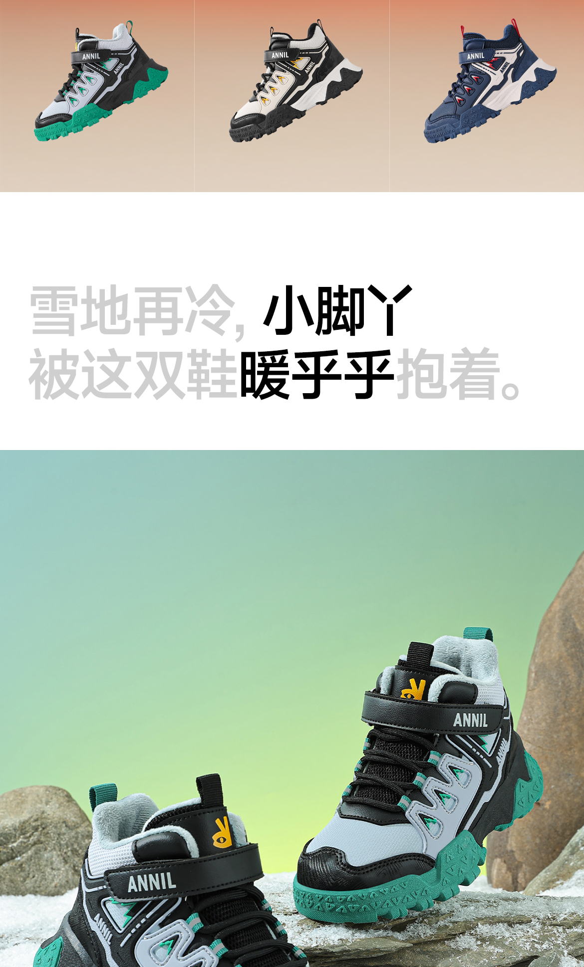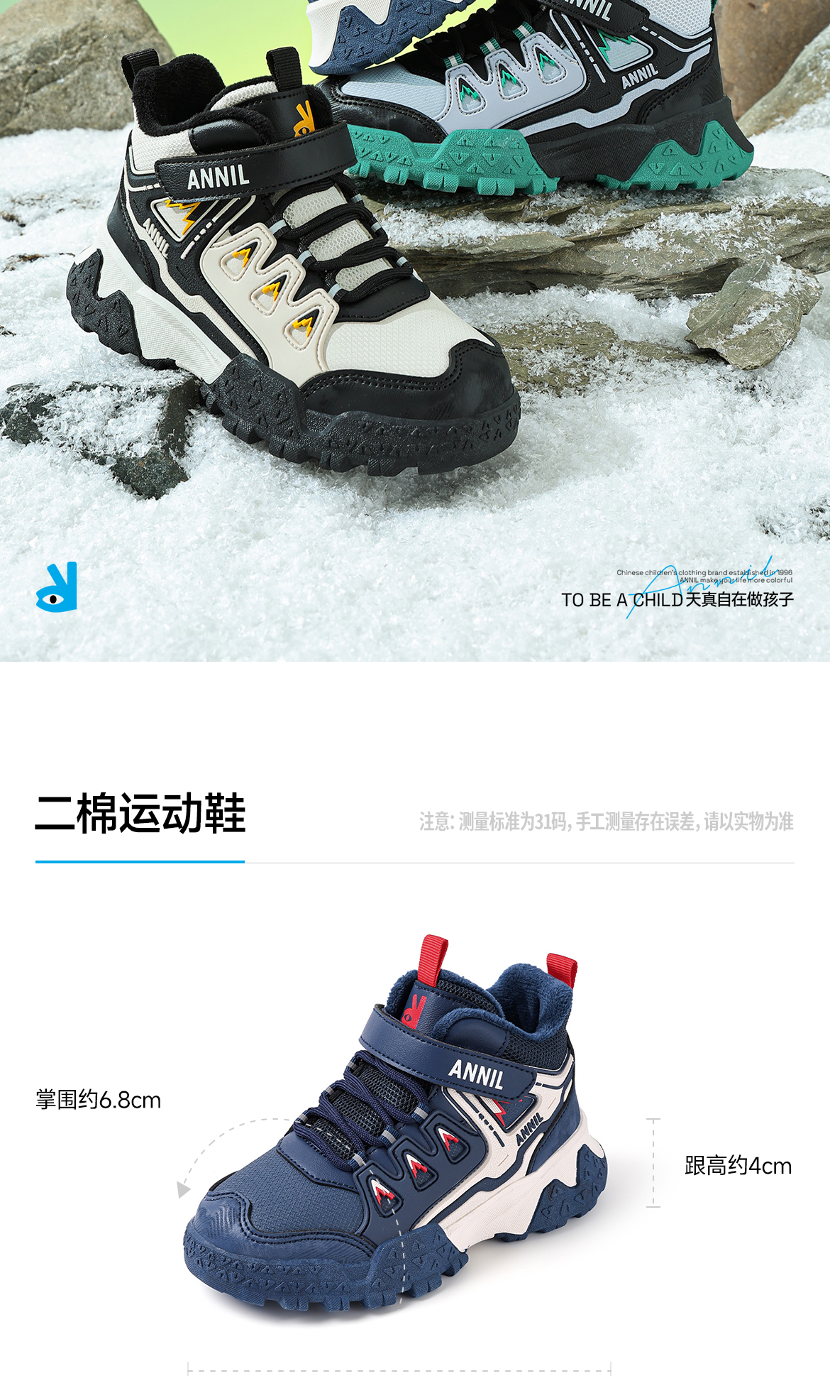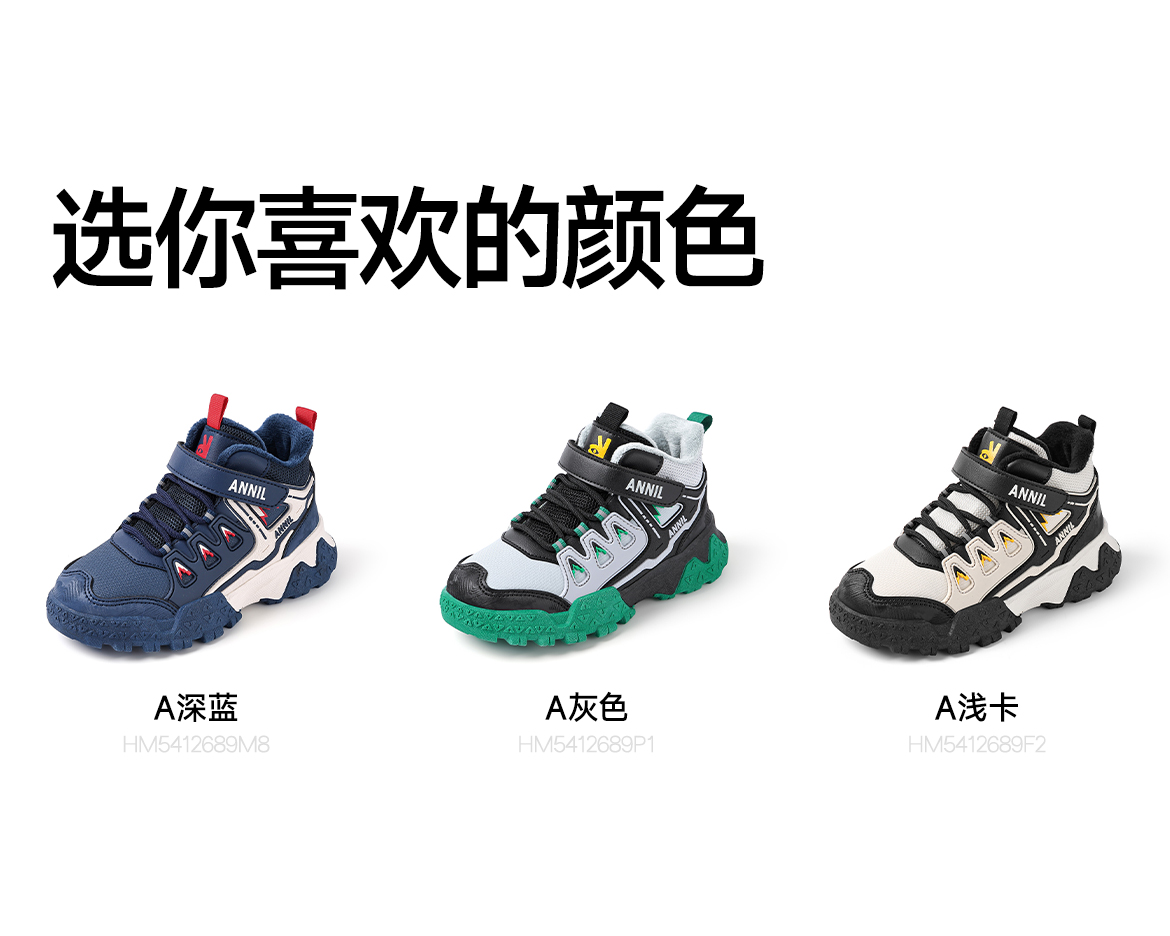 ANNIL/安奈儿童鞋男女童冬季平跟魔术贴棉鞋加绒冬鞋鞋子宝宝HM5412689