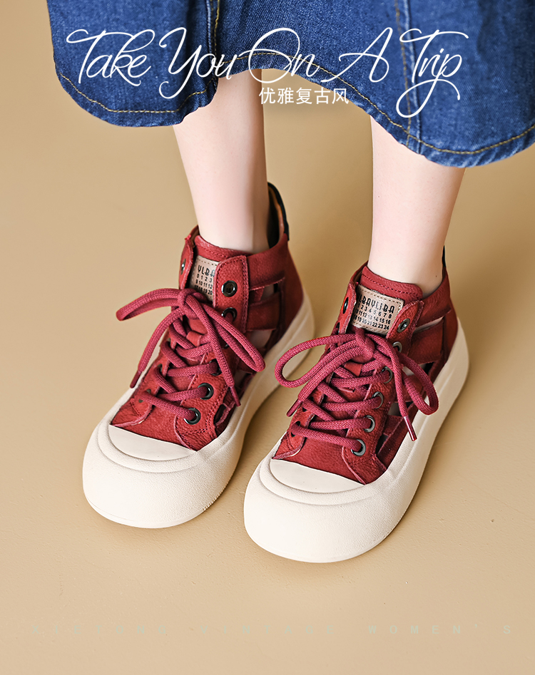 头层牛皮厚底高帮,镂空系带凉鞋KFY-32120