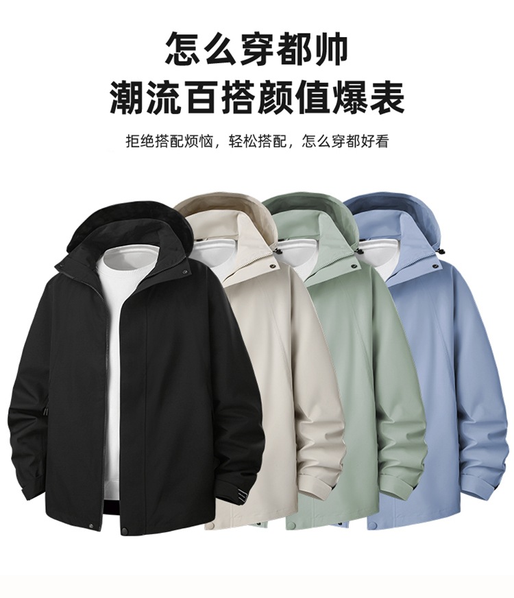 【DK】大依优型大码男装休闲夹克可脱卸帽秋季连帽外套潮流时尚休闲立领长袖外套加肥加大码