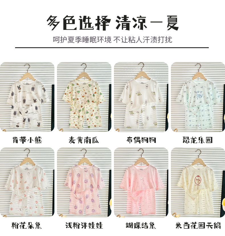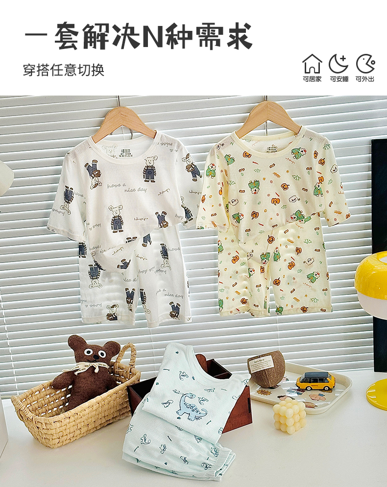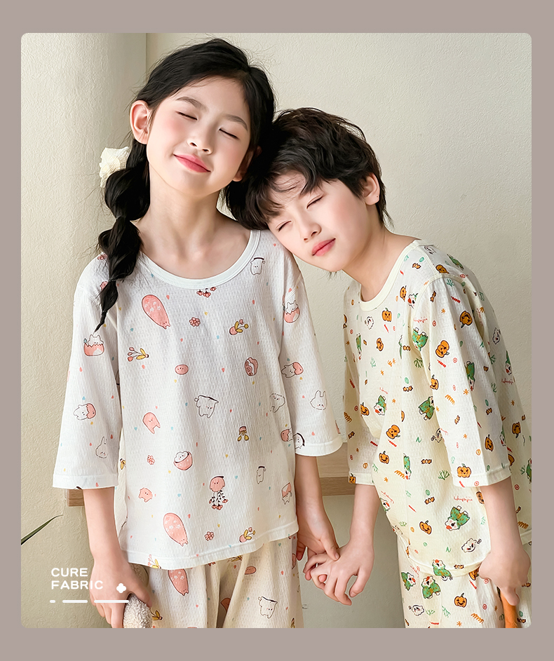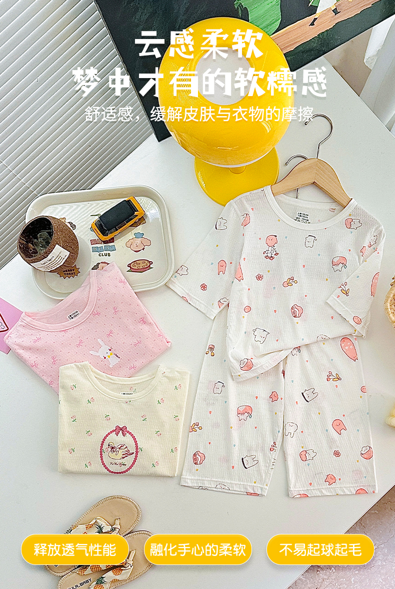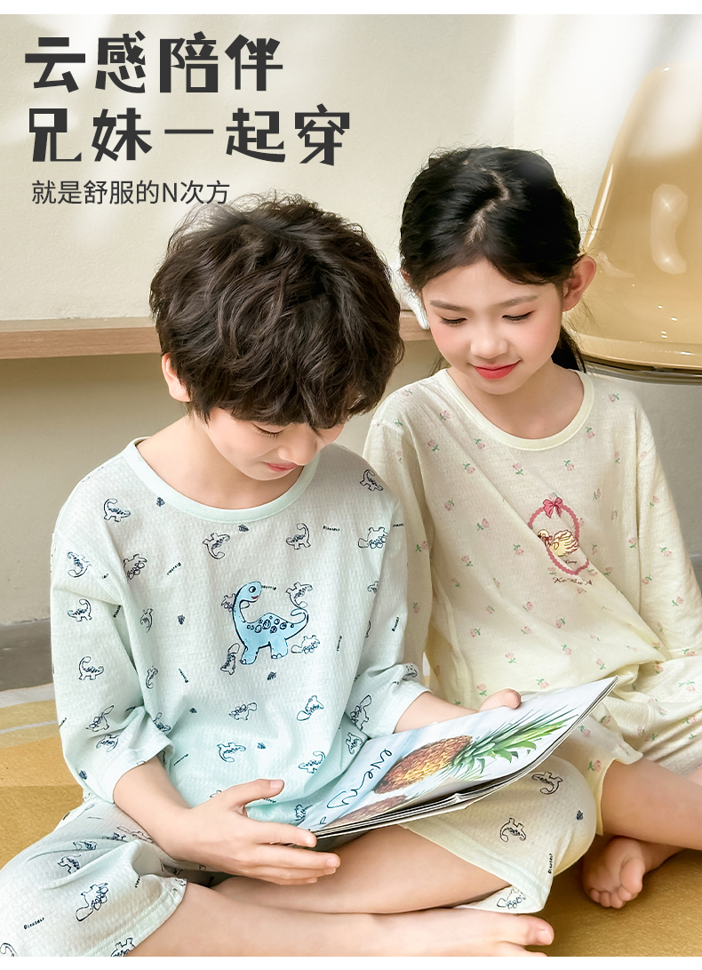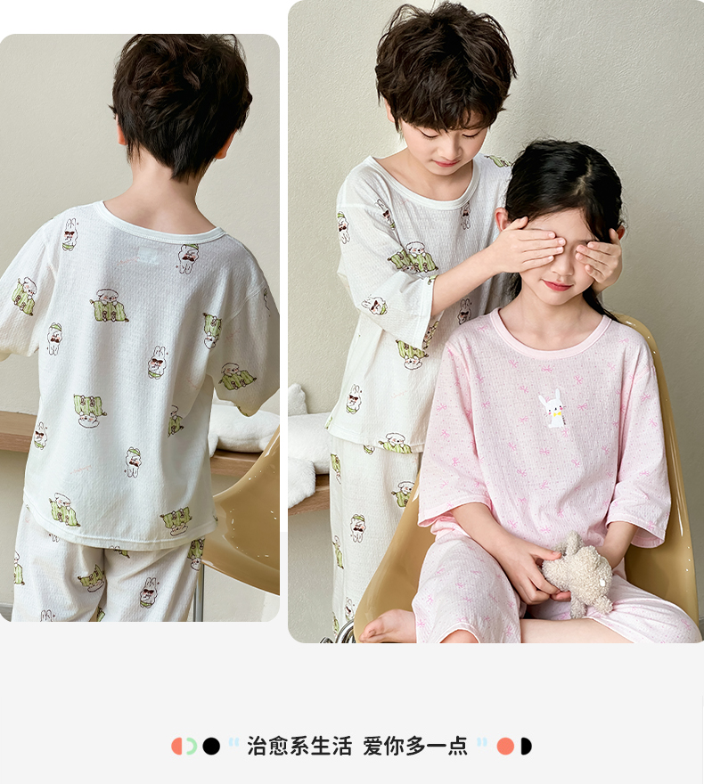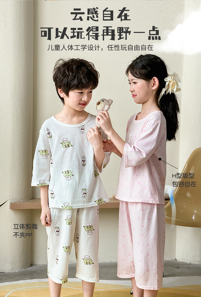 【A类品质,买一送一】夏季新款儿童提花纯棉七分网眼家居服透气舒爽中大童家居服100%