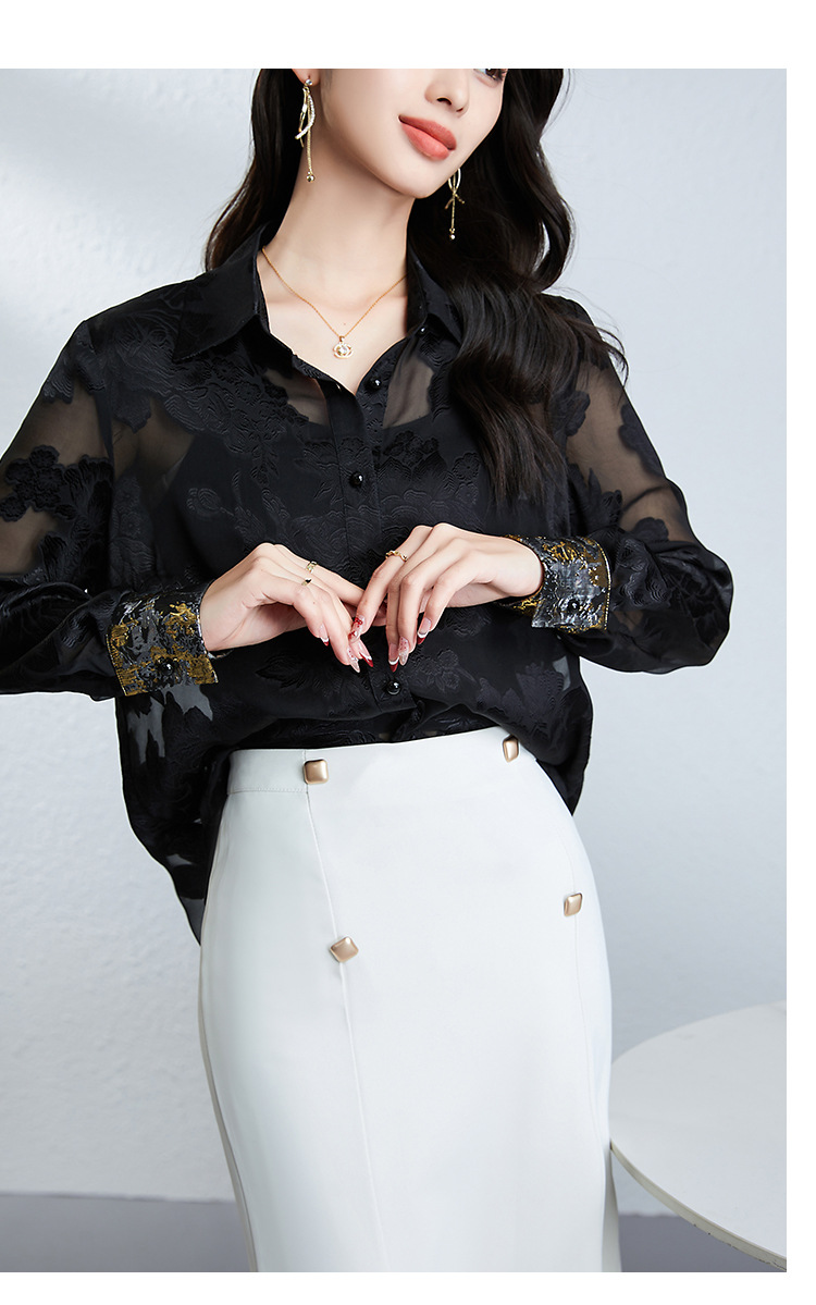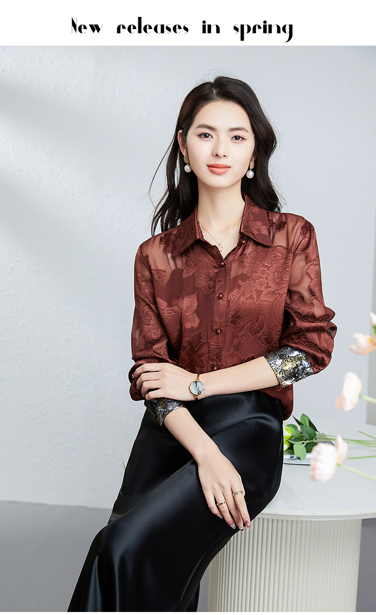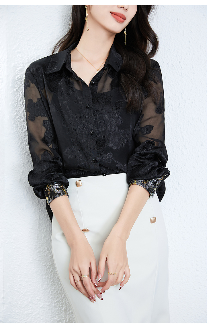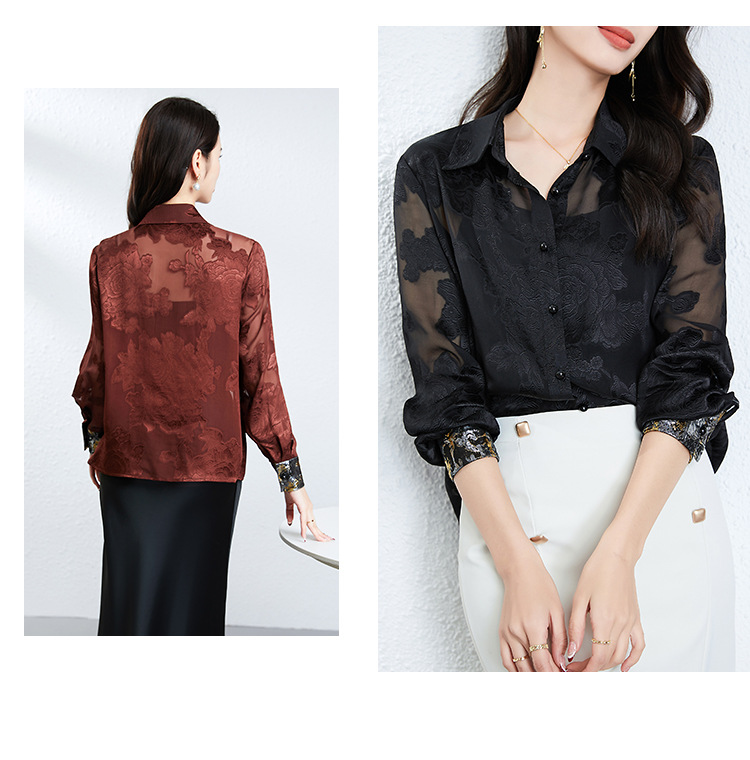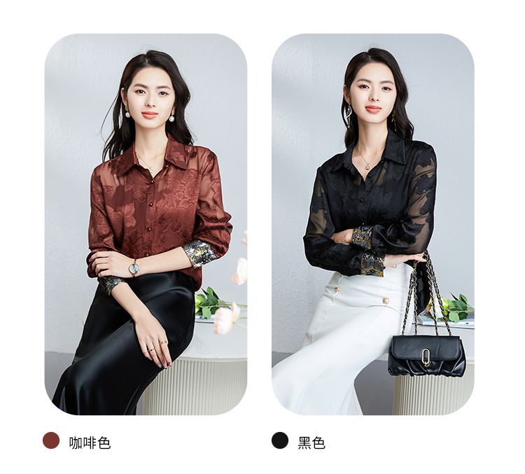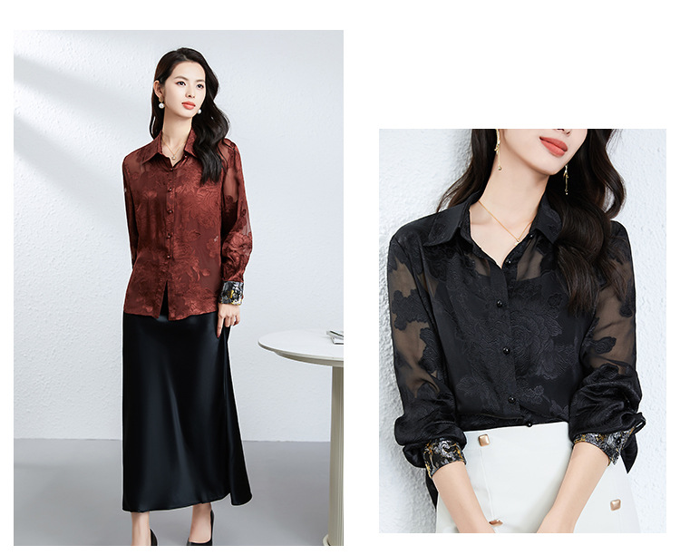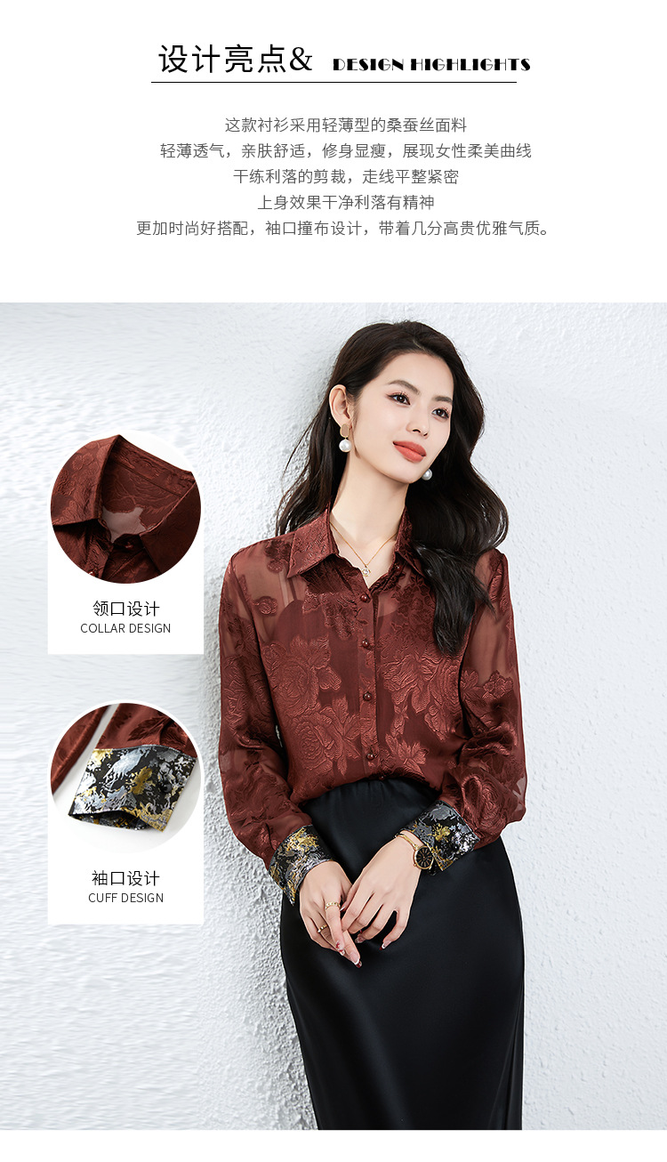 丁摩 衬衫女夏桑蚕丝女装高级感气质通勤透视洋气真丝女士衬衣5ZF-3175