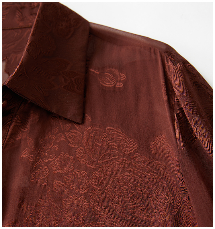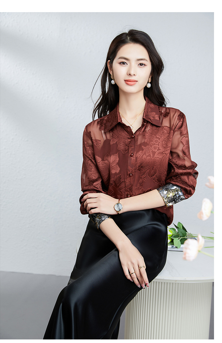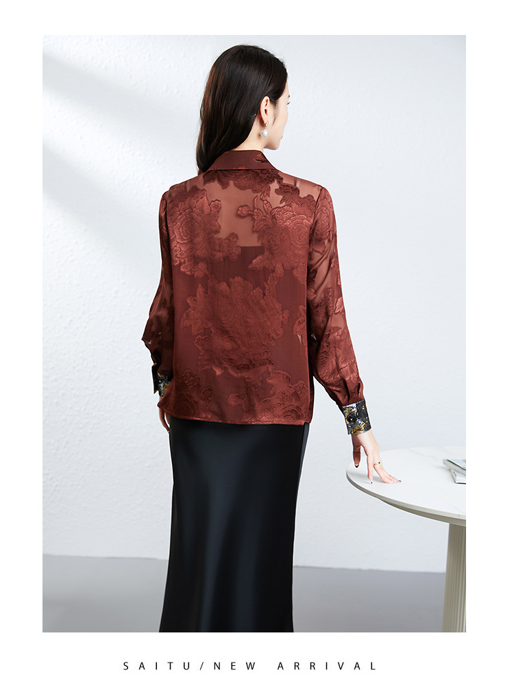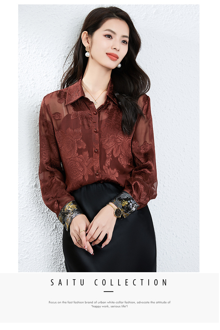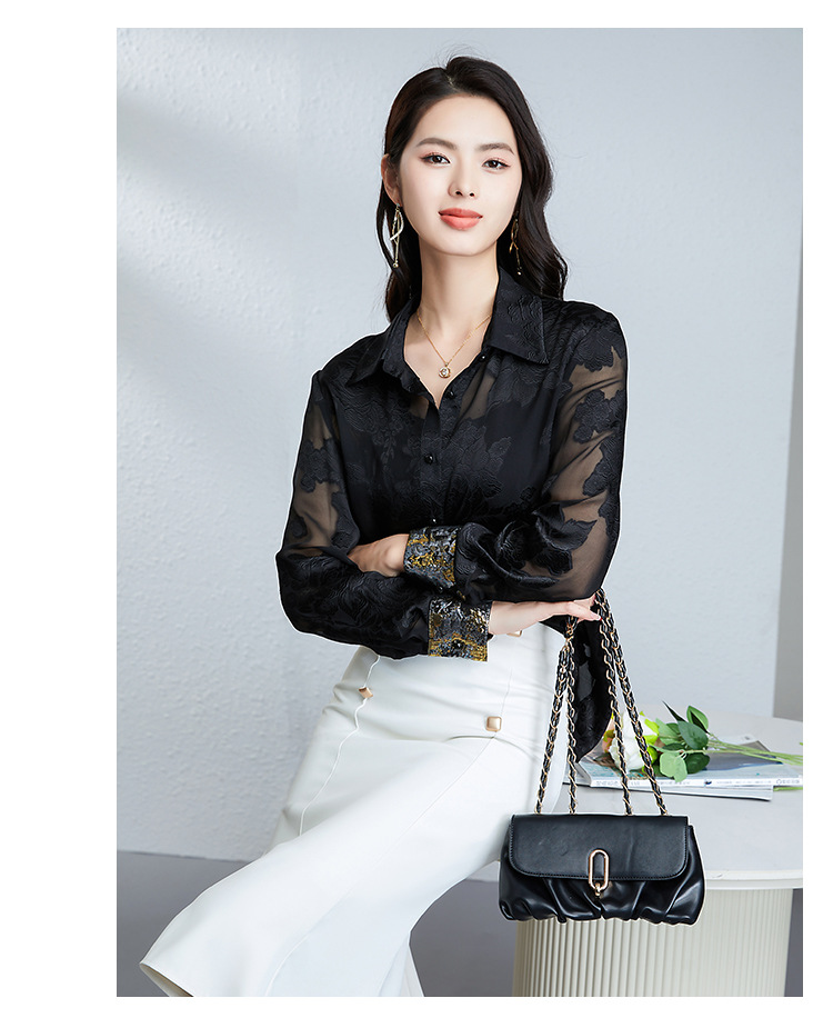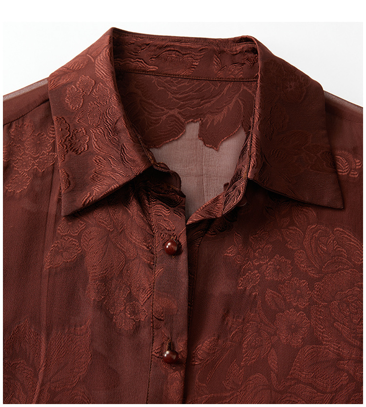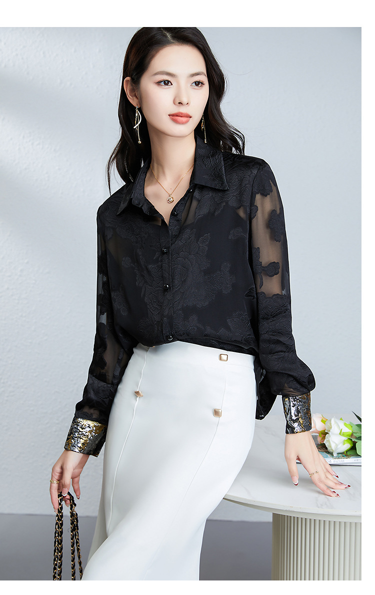 丁摩 衬衫女夏桑蚕丝女装高级感气质通勤透视洋气真丝女士衬衣5ZF-3175