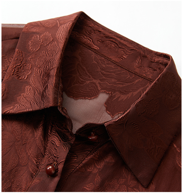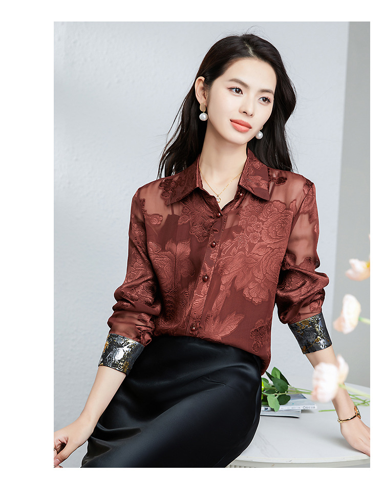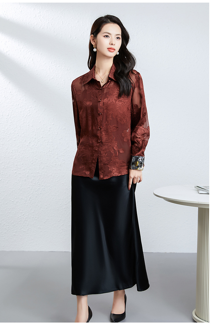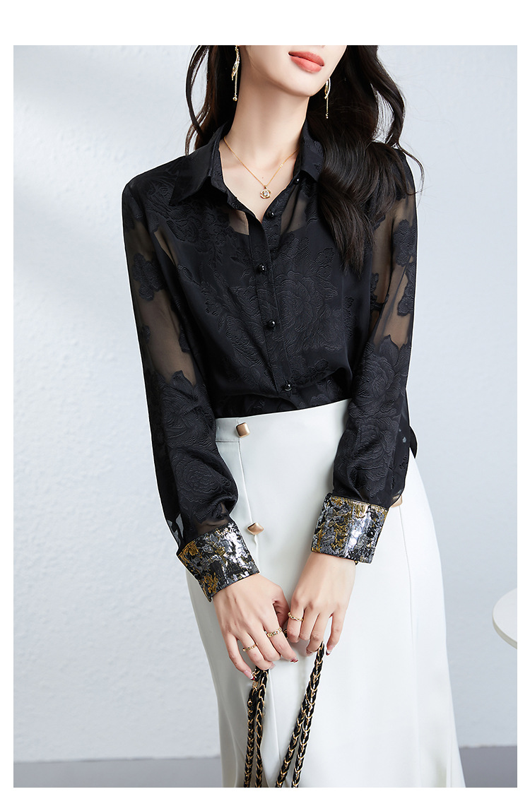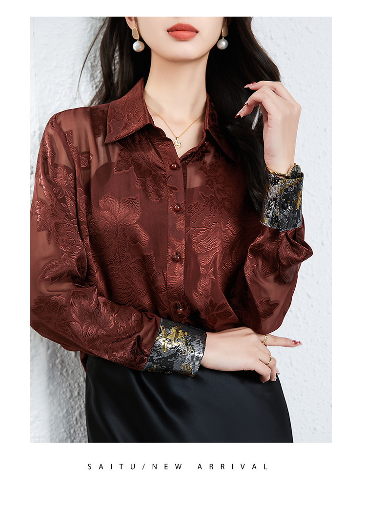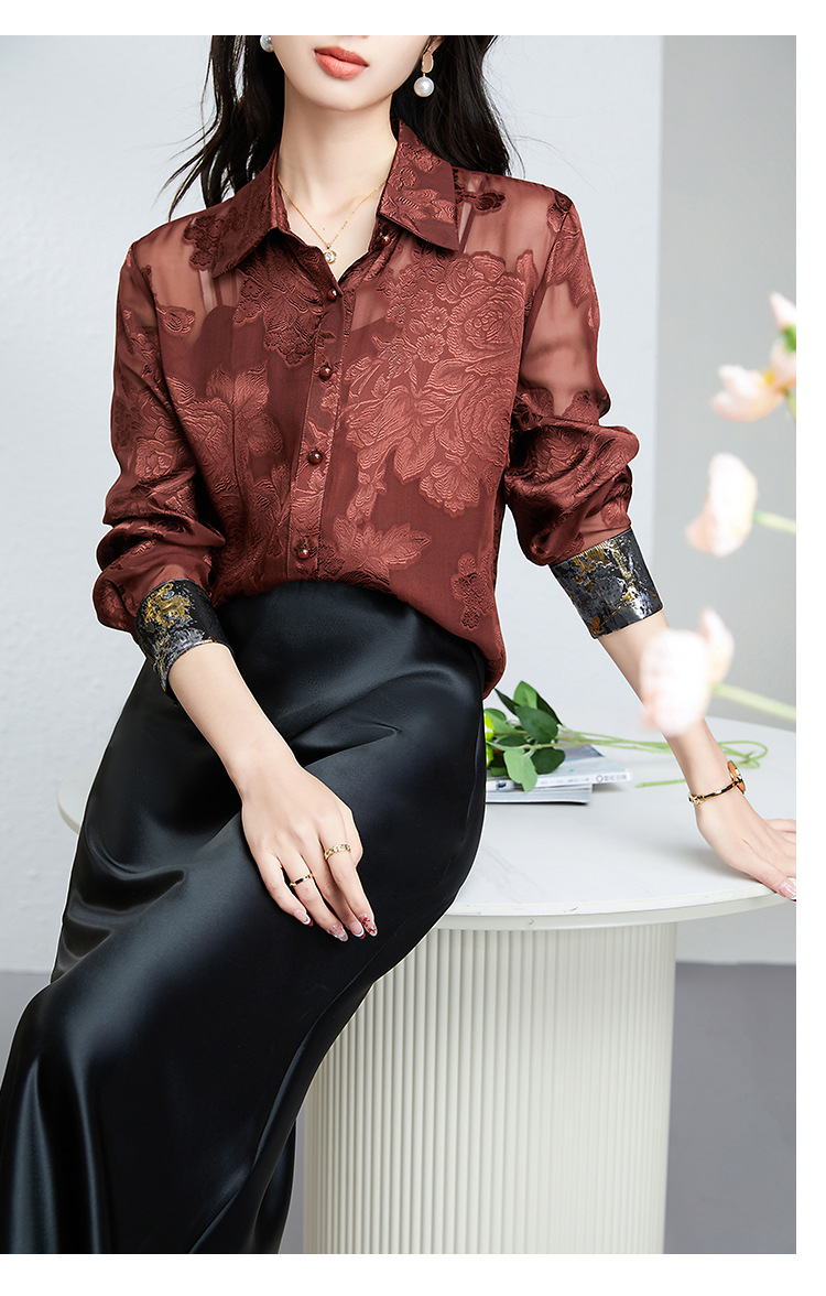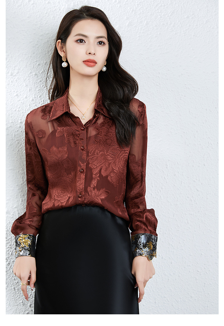 丁摩 衬衫女夏桑蚕丝女装高级感气质通勤透视洋气真丝女士衬衣5ZF-3175