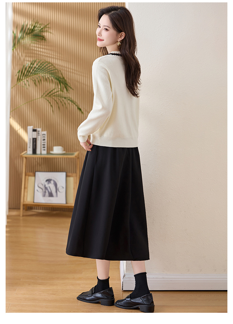 假两件上衣女士春秋常规款针织衫秋装2023新款宽松洋气衬衫领毛衣DD