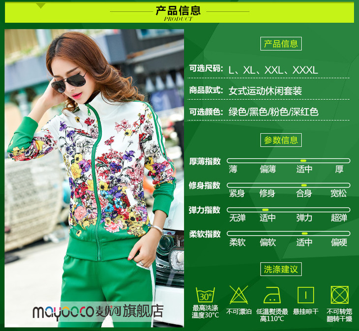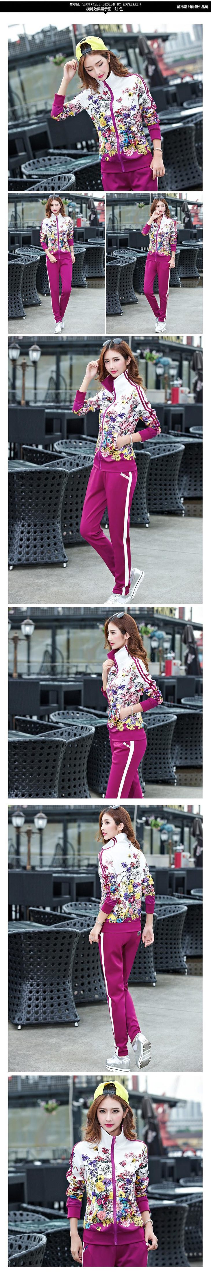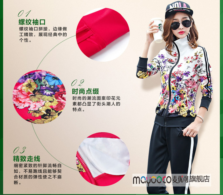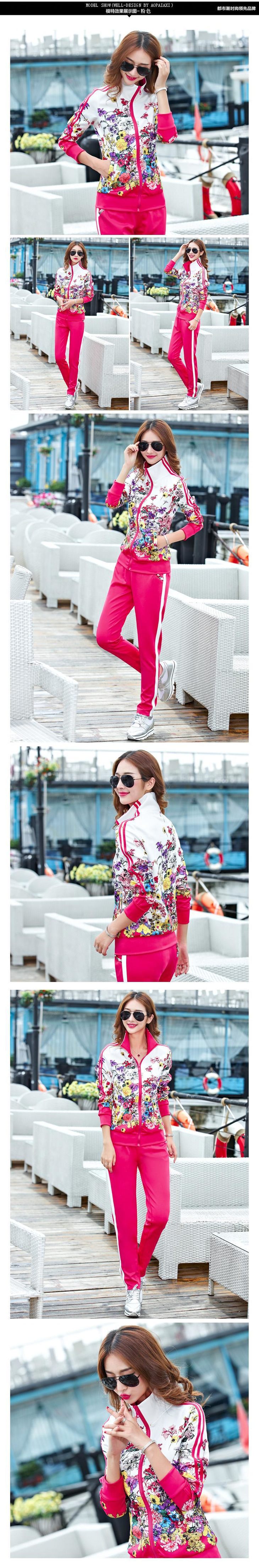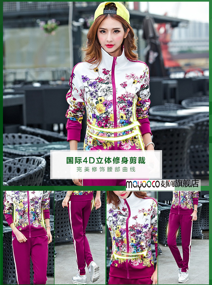 SP-10189SADW春款新款大码立领印花运动服两件套