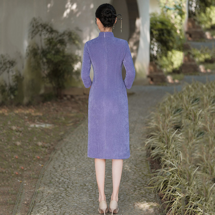 刺绣紫色妈妈装加绒加厚冬装改良旗袍	 SC18043 商品图3