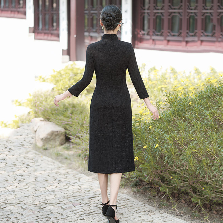 刺绣紫色妈妈装加绒加厚冬装改良旗袍	 SC18043 商品图4