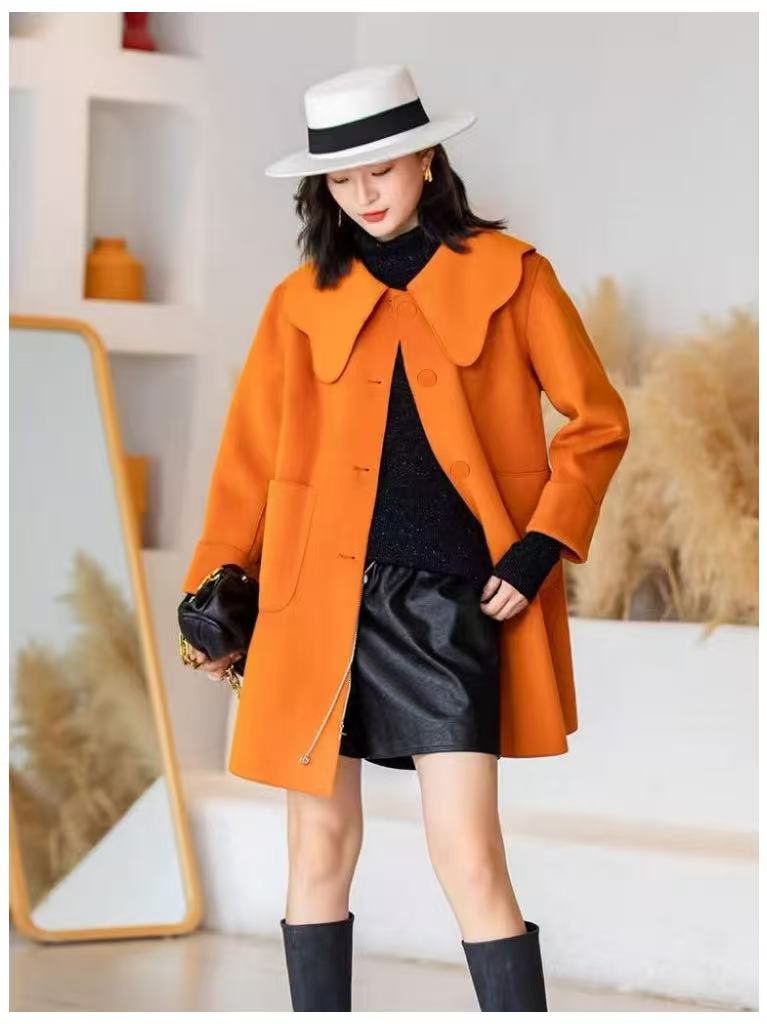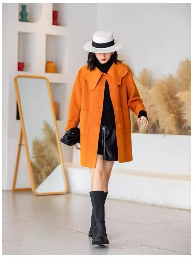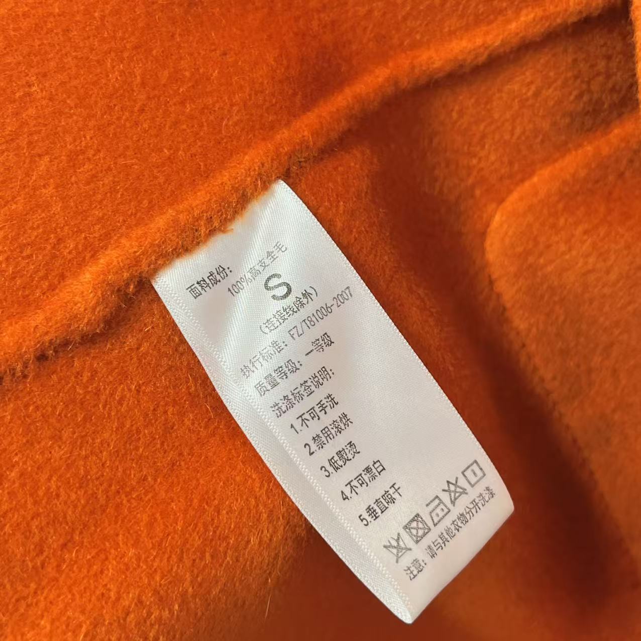 12.12错过没有!清货不退【高端系列】手工定制7730款100%高支全毛桔色花边翻领羊毛双面尼大衣-喜出