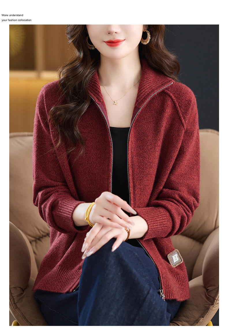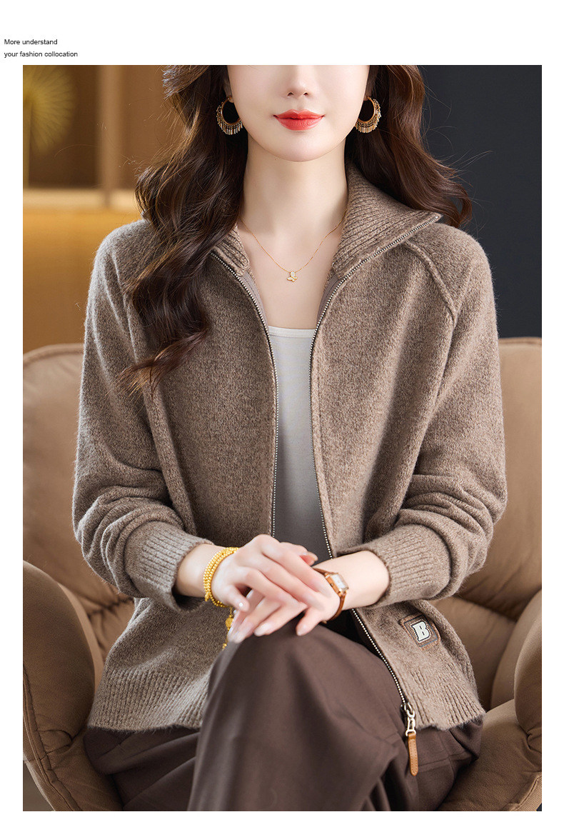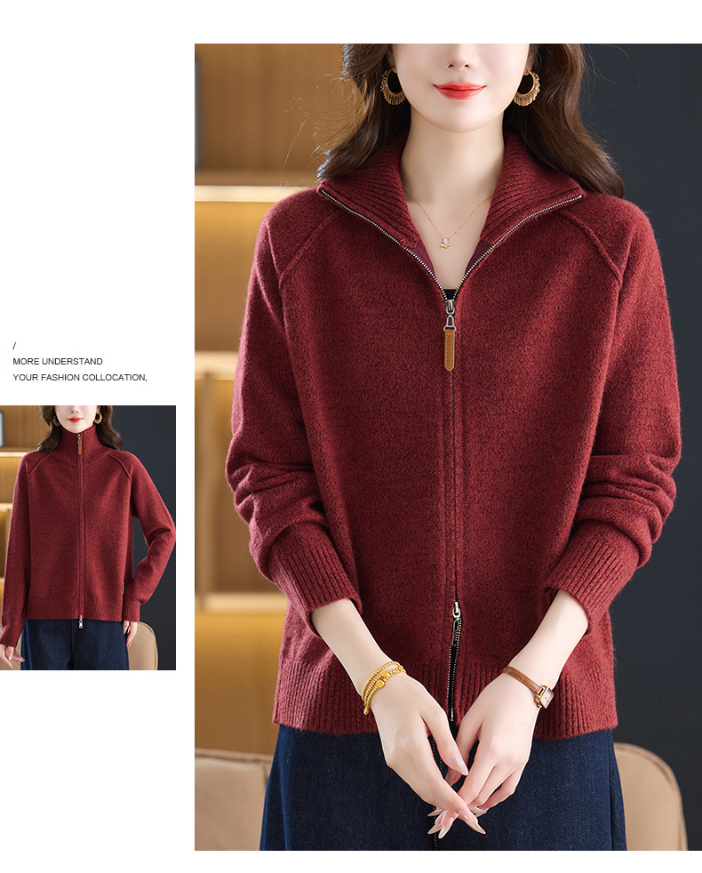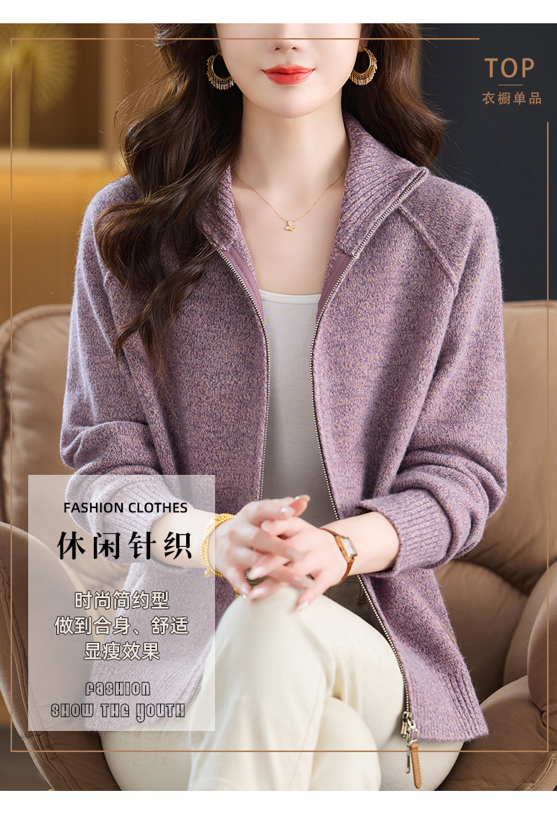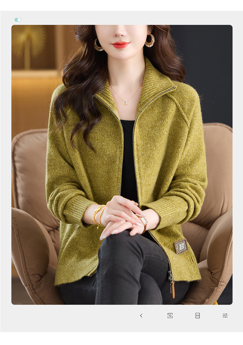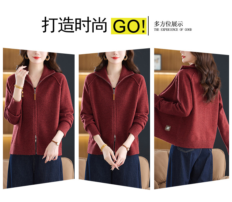 半高领拉链打底衫,漂亮减龄洋气提花保暖针织衫上衣CC-101-35539