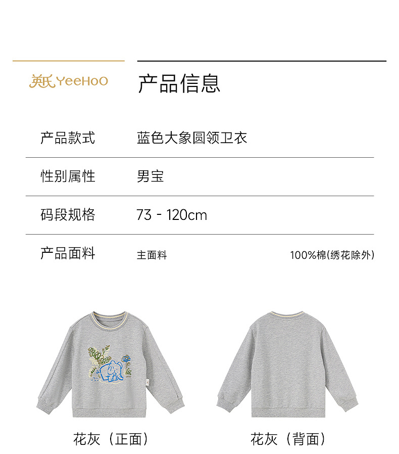 【商场同款】英氏儿童卫衣男宝宝圆领卫衣春夏新款休闲百搭上衣