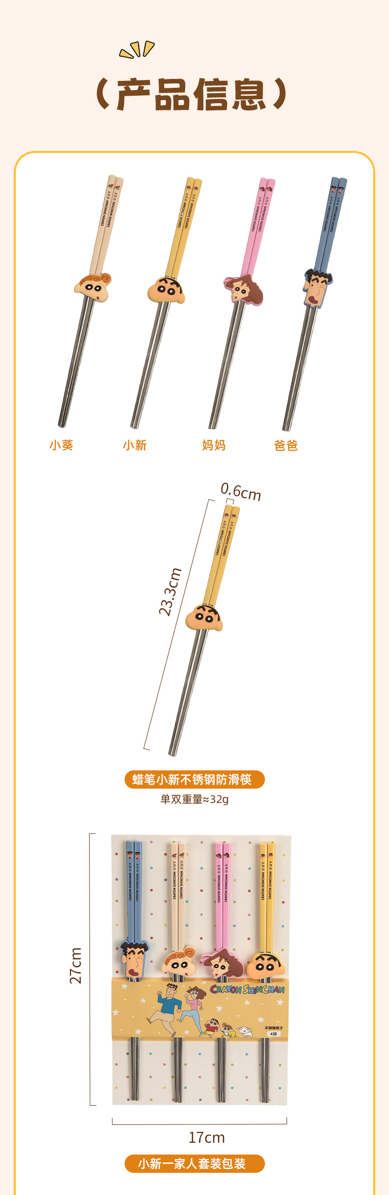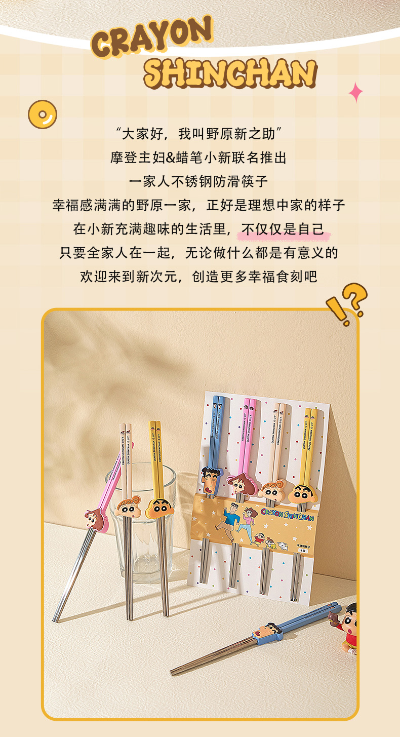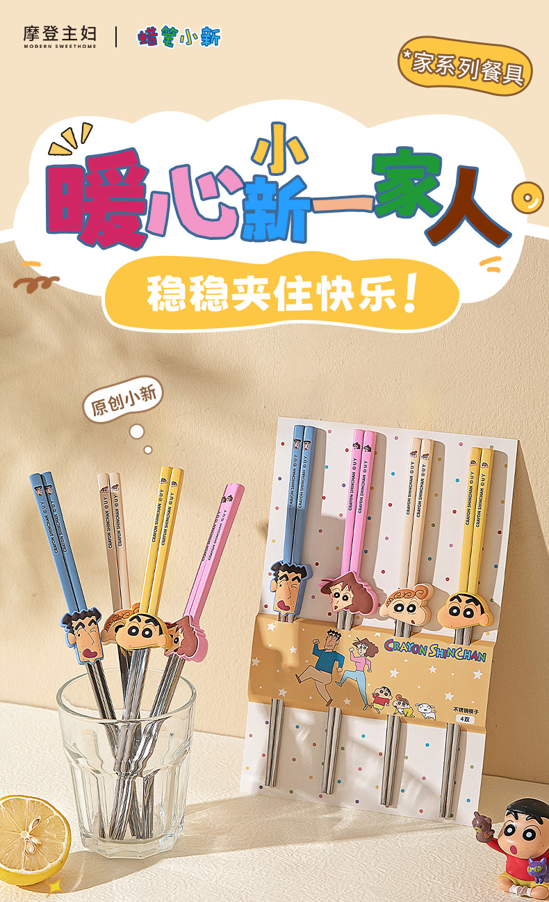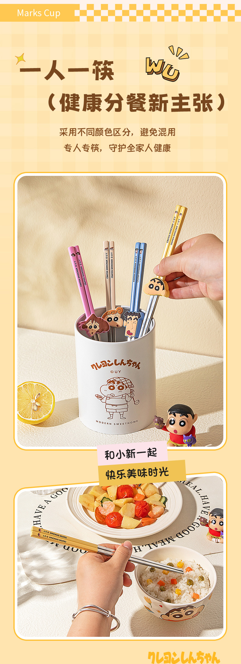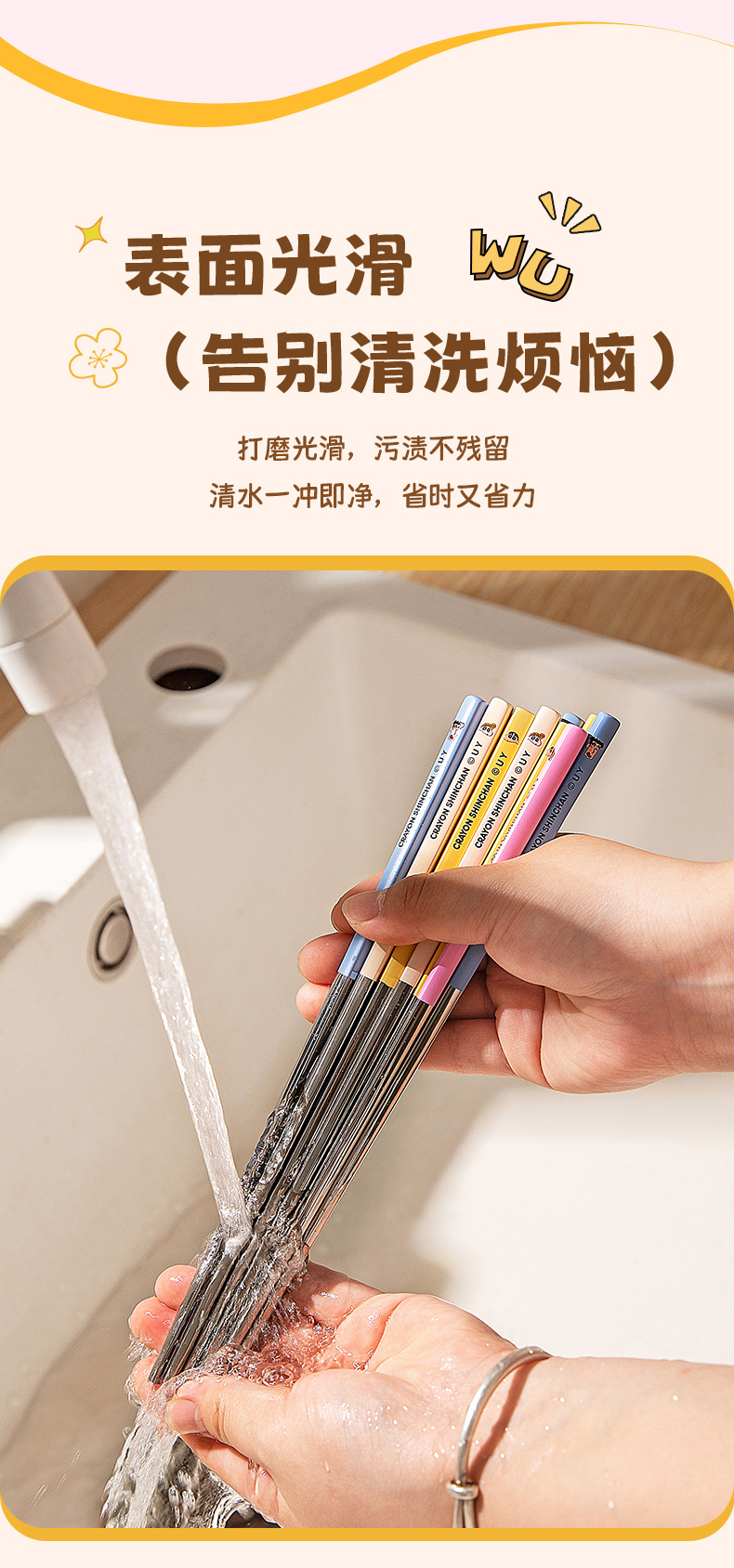 摩登主妇&蜡笔小新 不锈钢筷子家用高档抗菌防霉儿童分人筷子