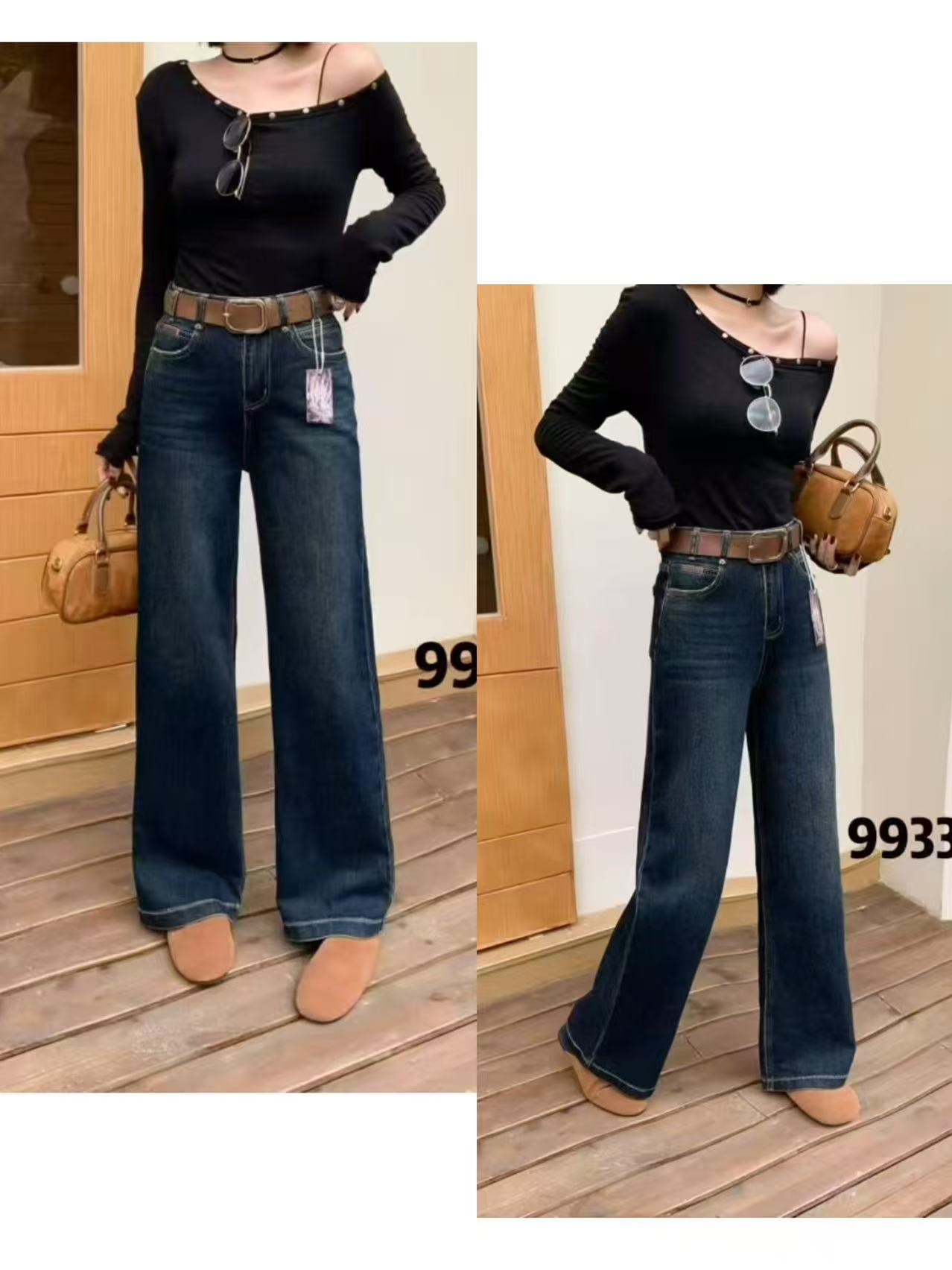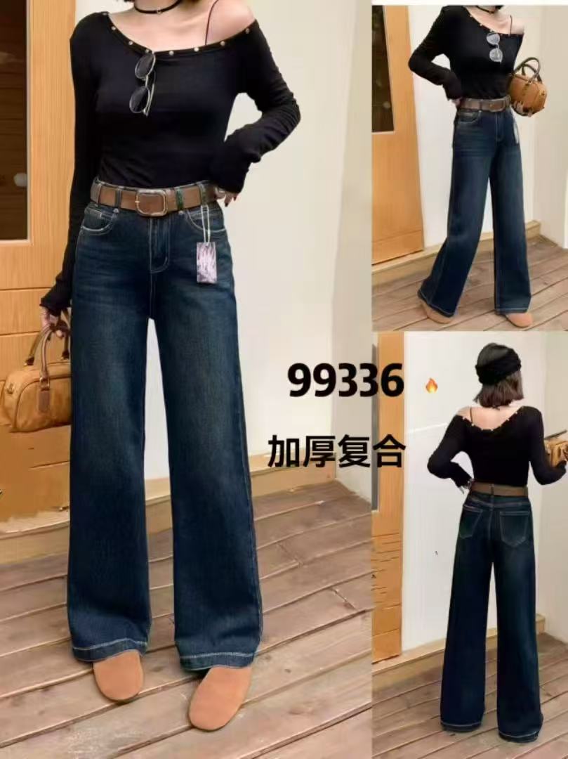 🔥实物比模特图好看【休闲裤】99336密密绒秋冬厚款牛仔裤-喜出
