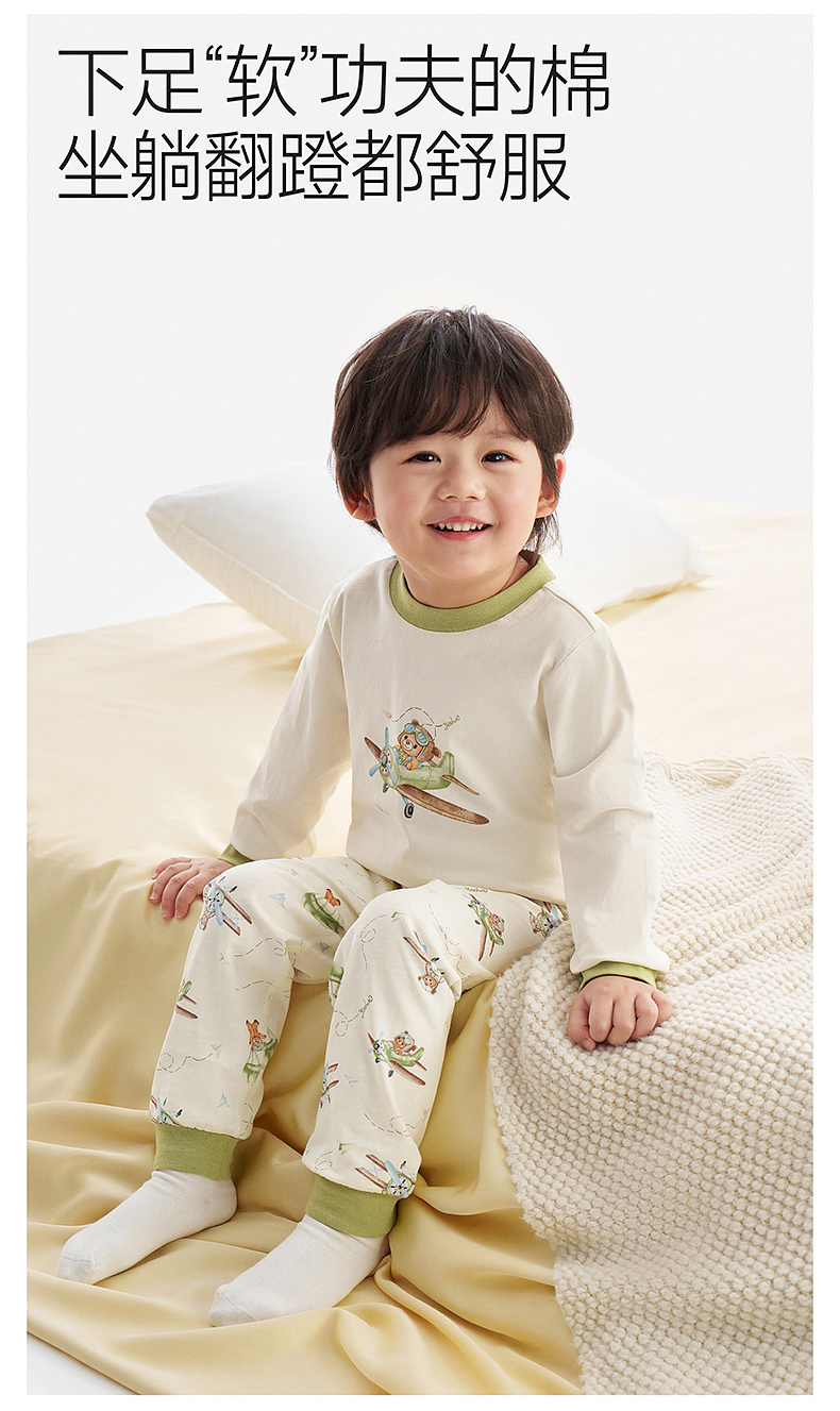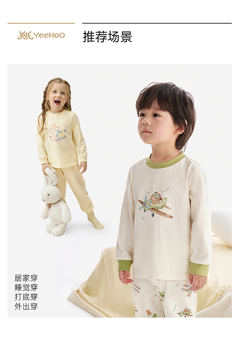 【26年升级版抚触棉】英氏儿童内衣套装男童长袖长裤套装女童四季款秋衣秋裤套装可爱