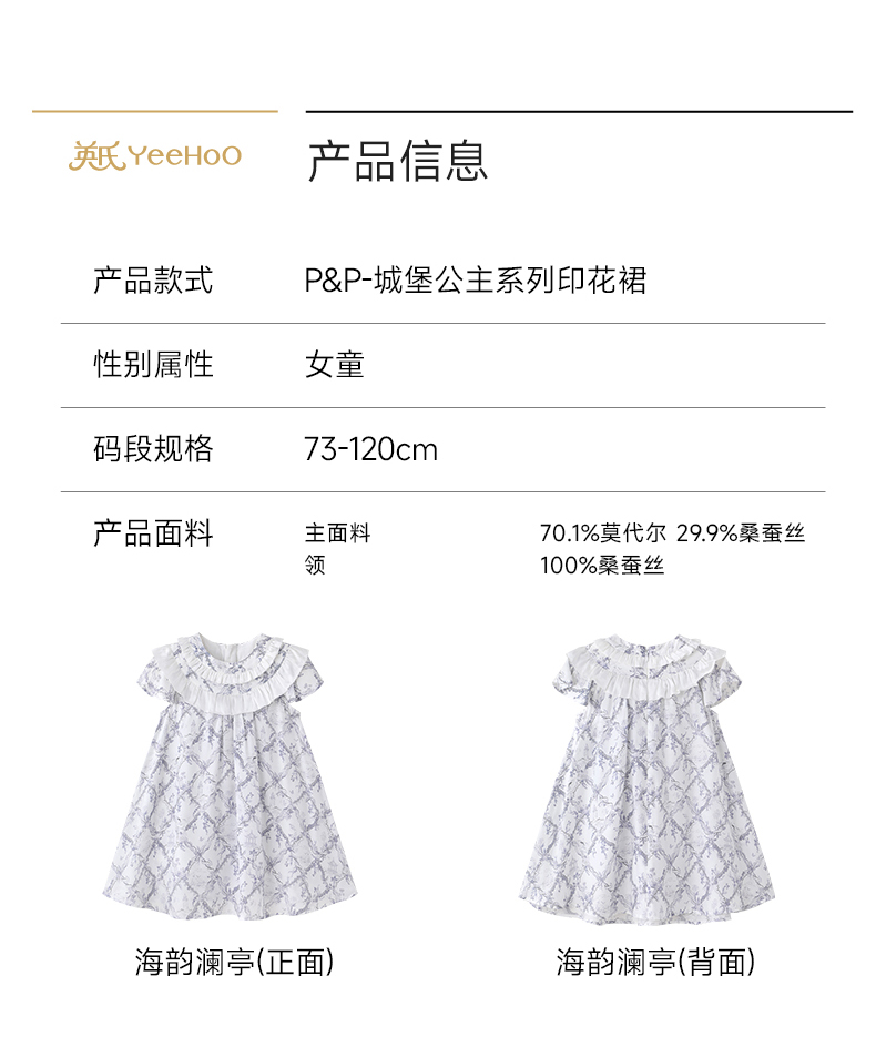 【商场同款】英氏女童连衣裙春夏季新款短袖裙子宝宝公主裙