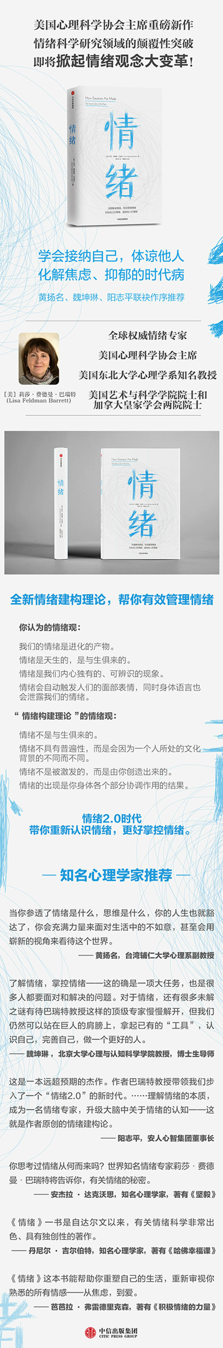 首先,作者莉莎·费德曼·巴瑞特是目前研究情绪领域的专家。她不仅是两院院士——美国艺术与科学学院院士,以及加拿大学会院士,她还做过有关情绪的TED演讲,拥有很高的人气。本书的所有内容都是建立在巴瑞特博士数十载的深入研究之上的。