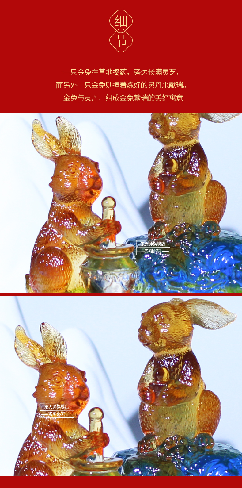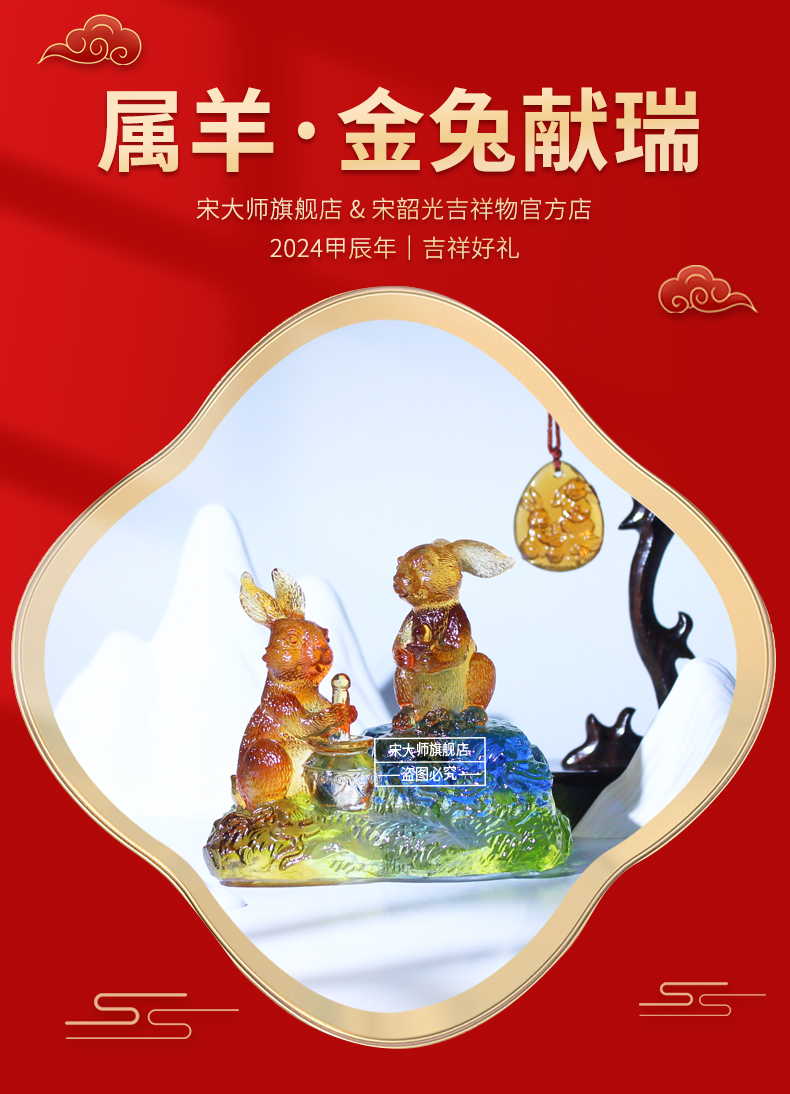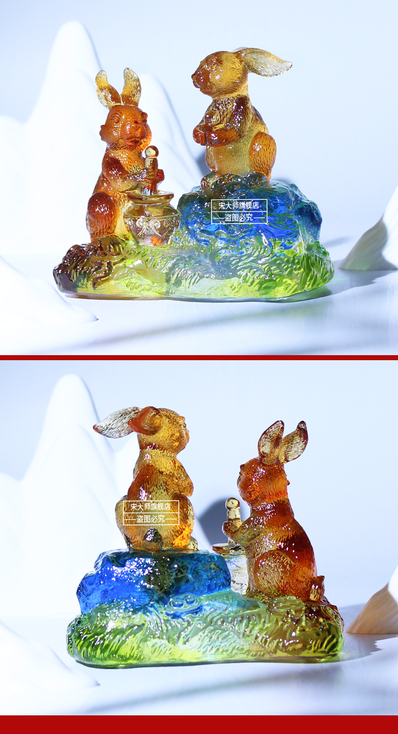 集雅轩宋韶光大师2024龙年吉祥物生肖属羊 金兔献瑞琉璃摆件礼品