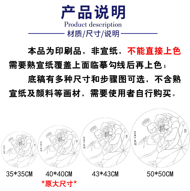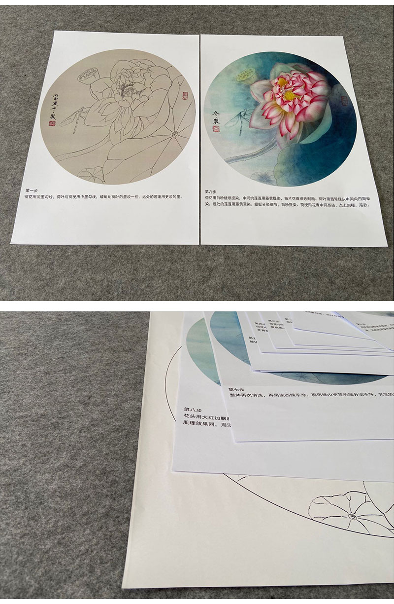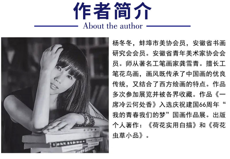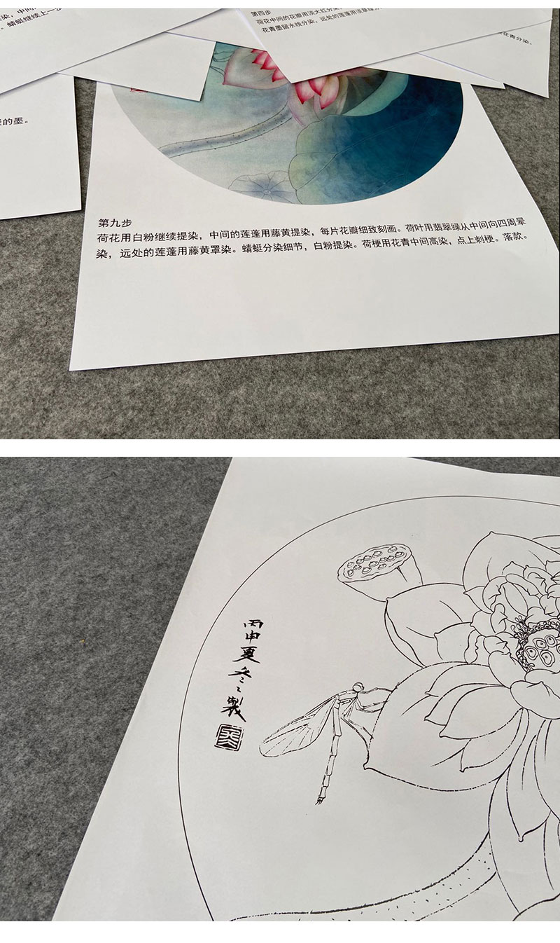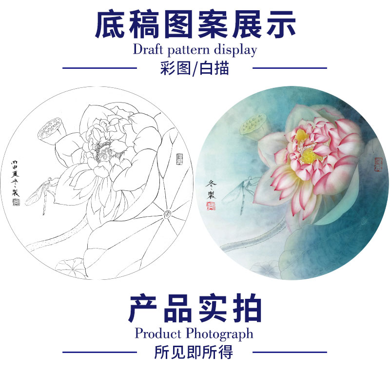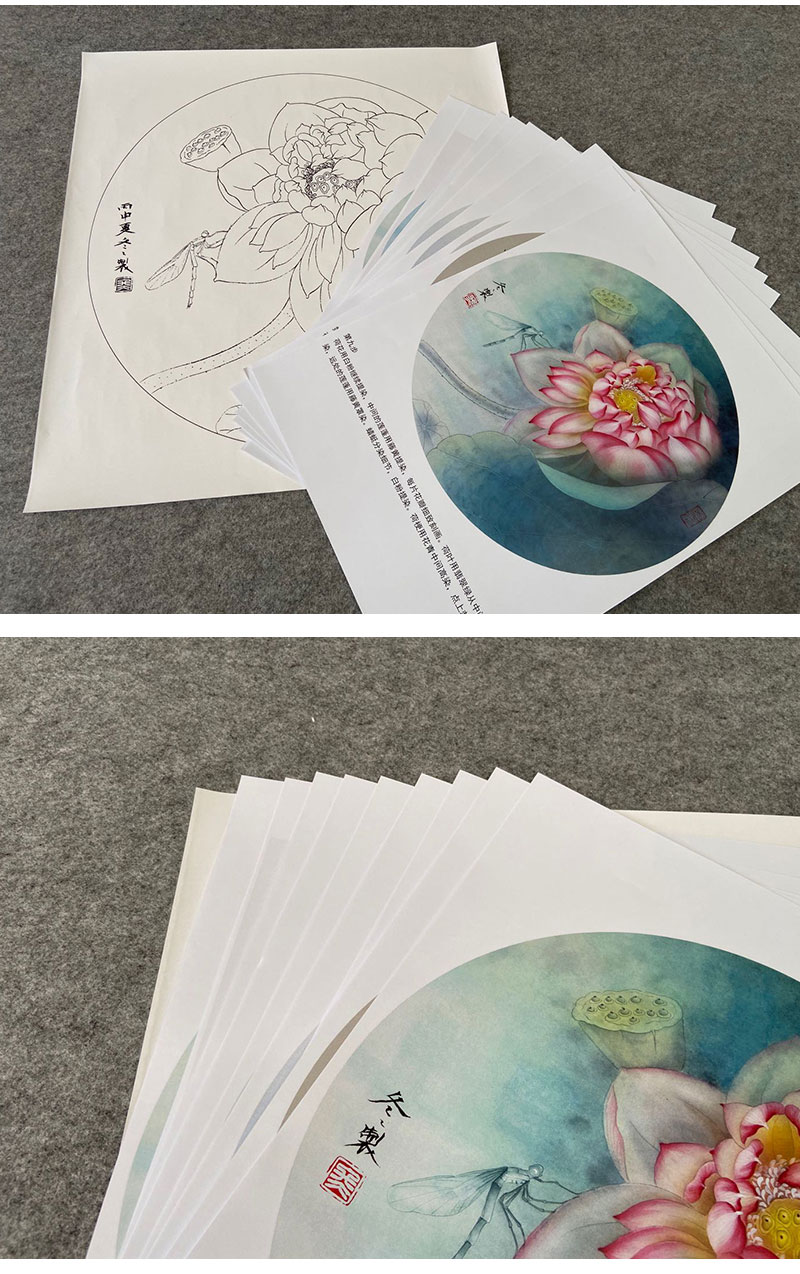 【有步骤、大彩图】杨冬冬工笔画白描底稿圆形小品《娇影》荷花初学者临摹花鸟线稿HD32